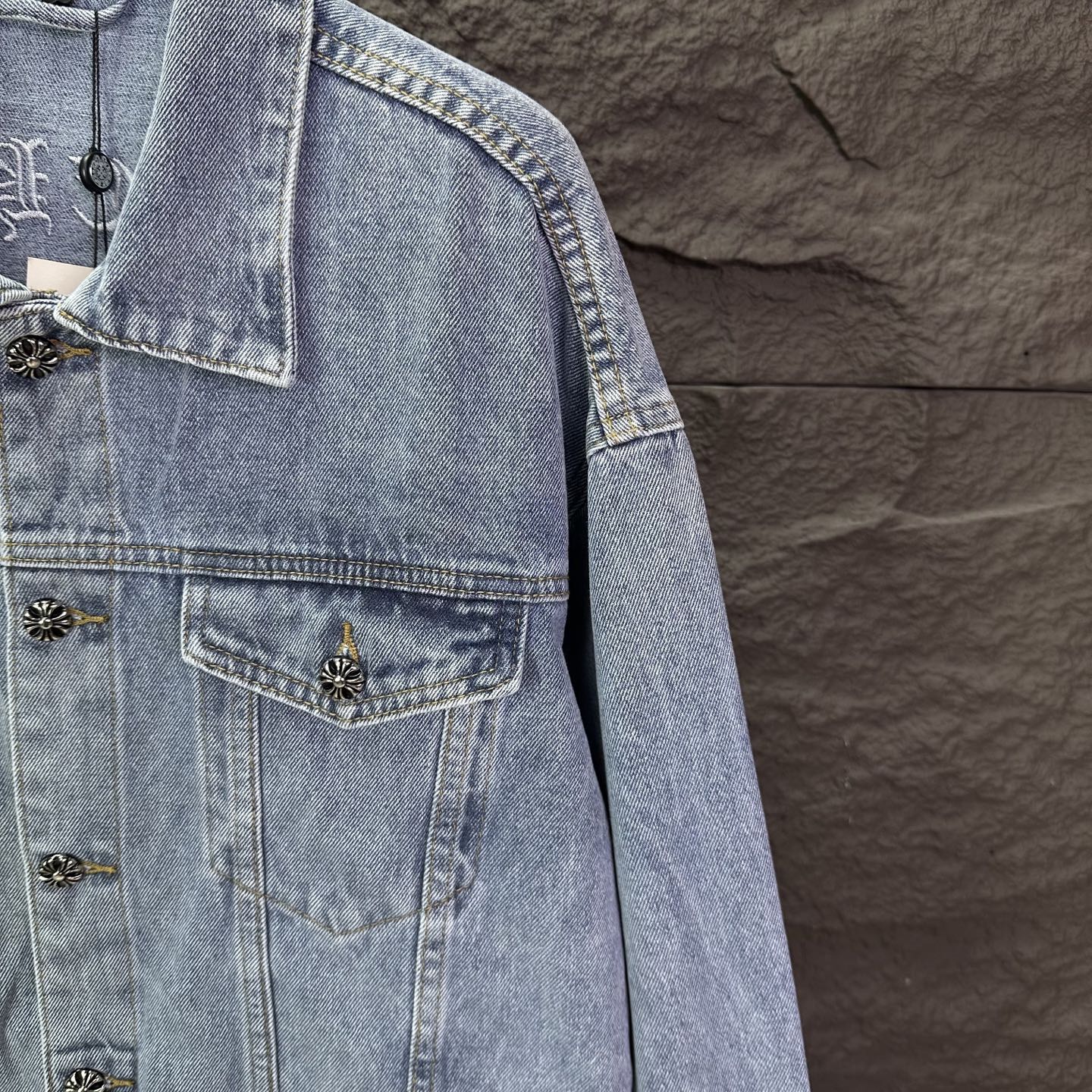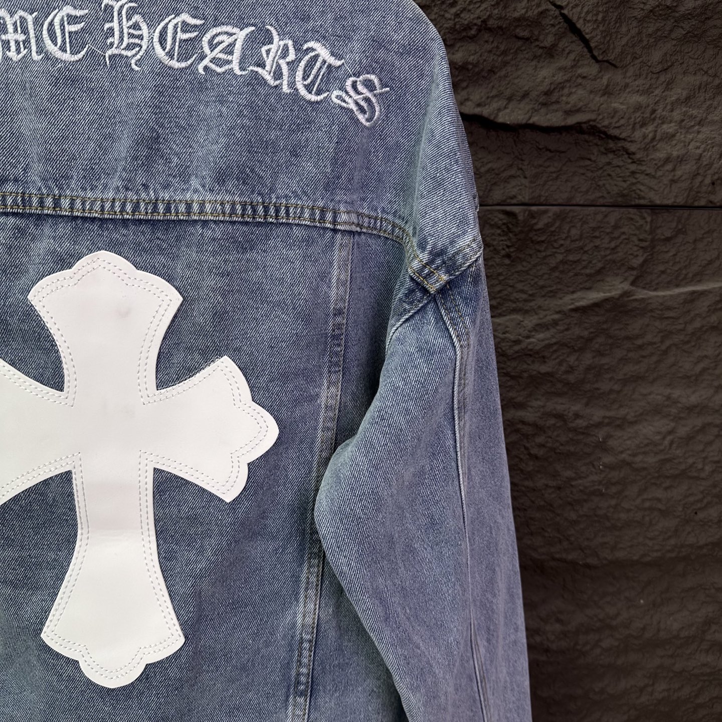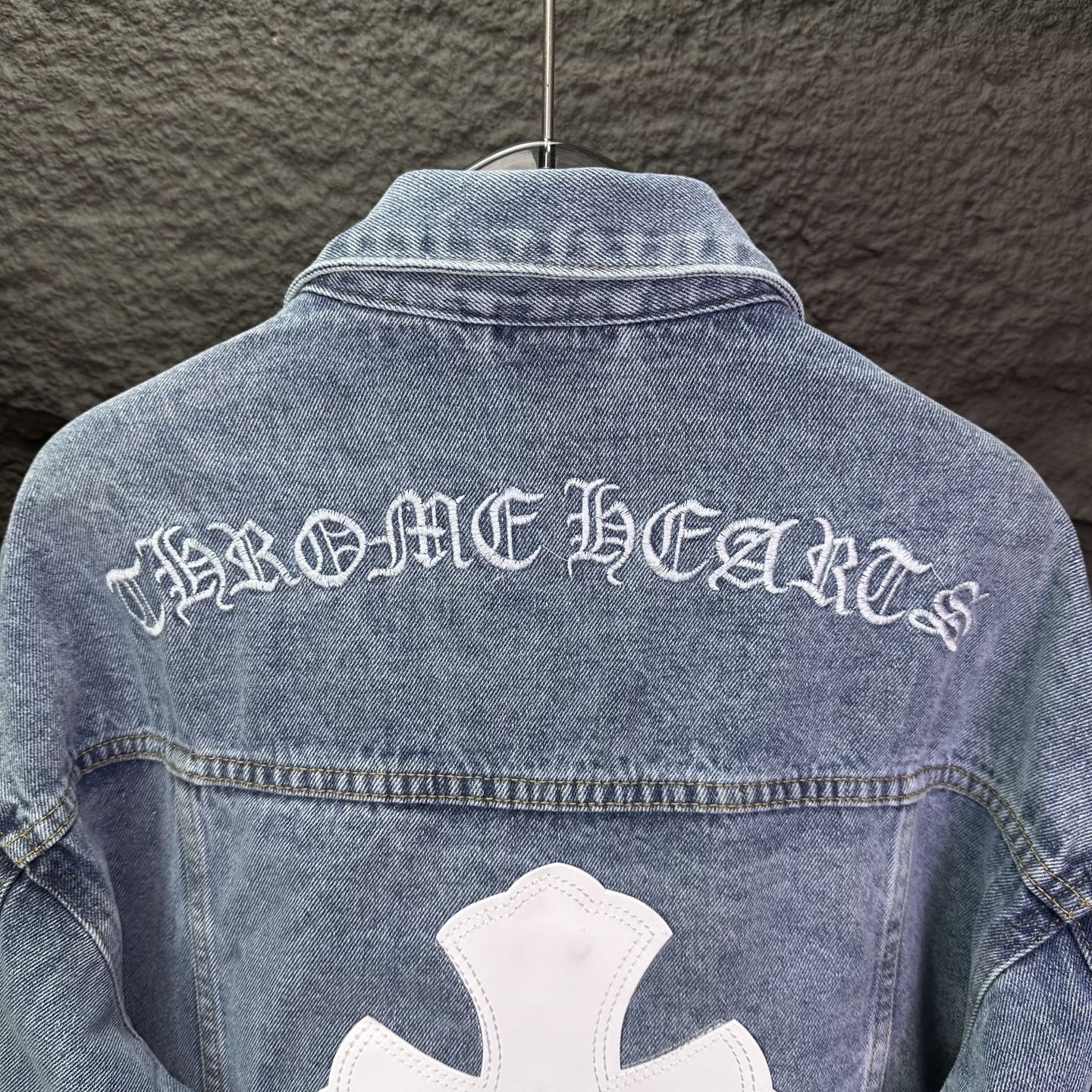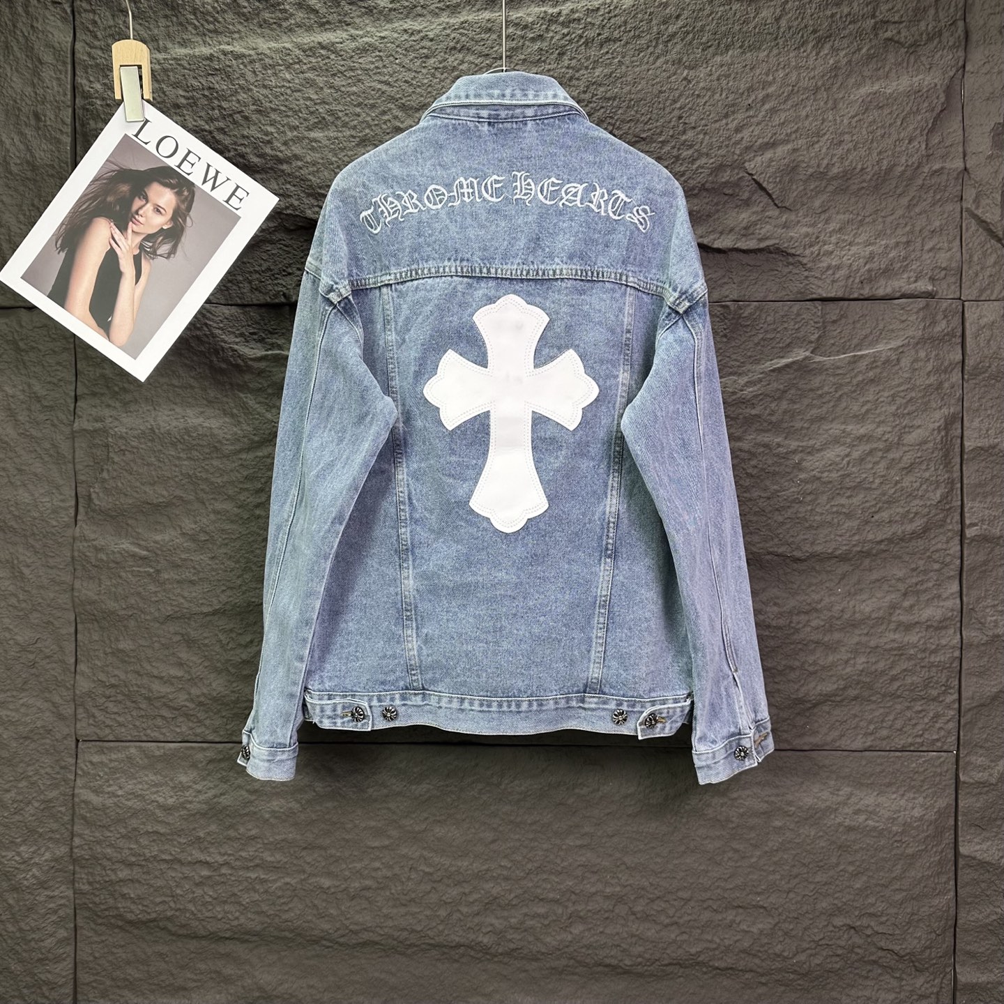 这款衣服是AAAAA 1:1 质量 (非常棒). 使用了和原版一模一样的材料. 商标部分也保持了和克罗心/Chrome Hearts一样. 图片拍摄是实物衣服拍摄, 您所收到的实物保证和我们图片一模一样.