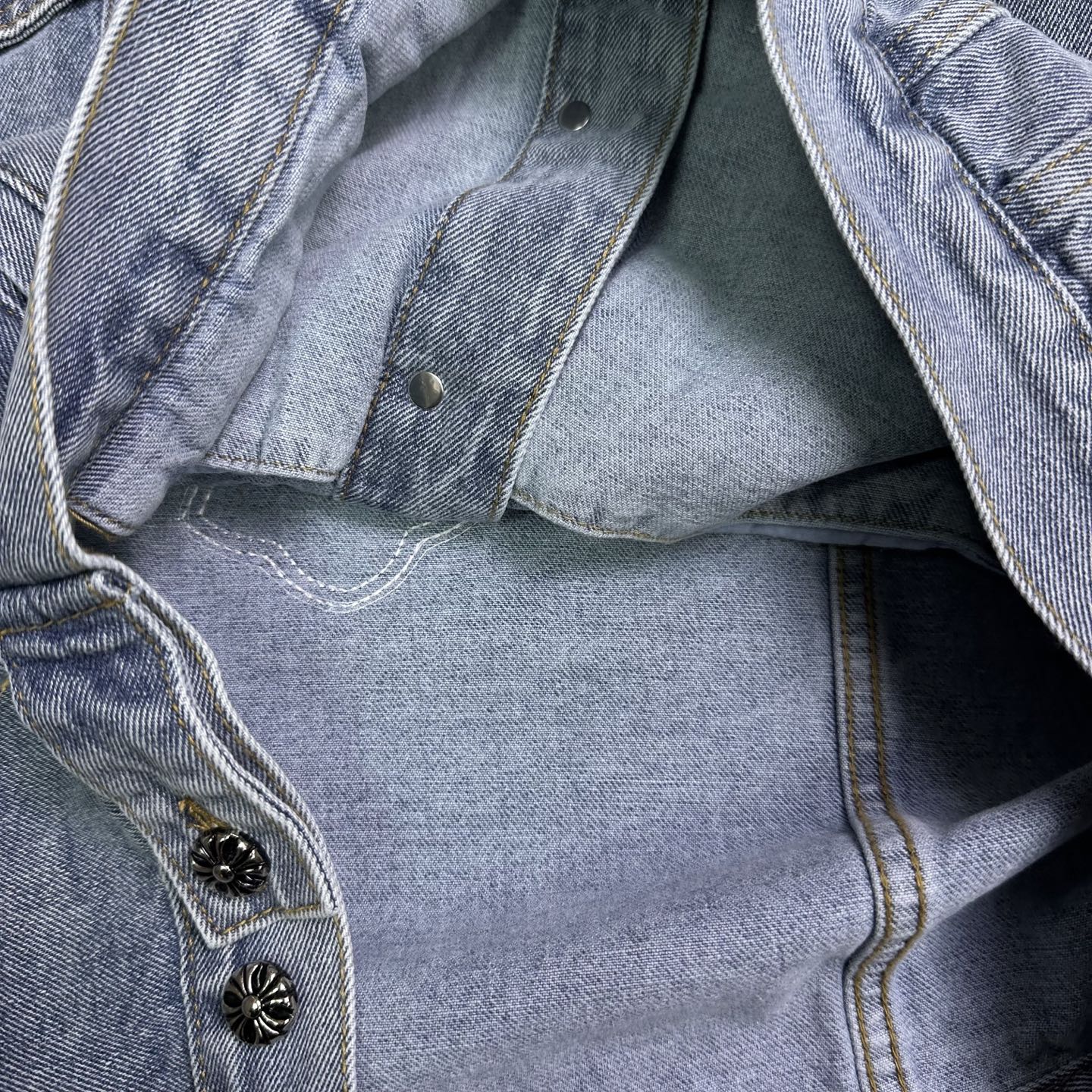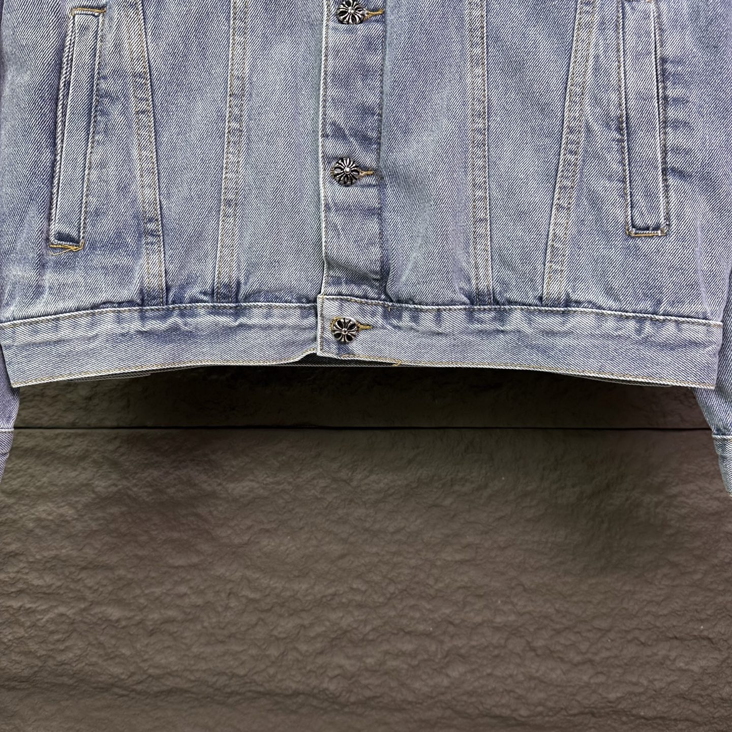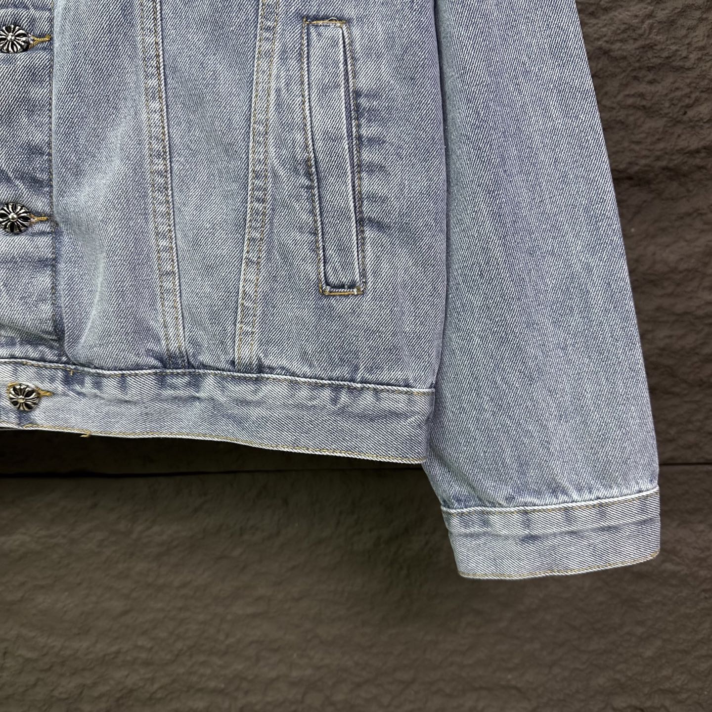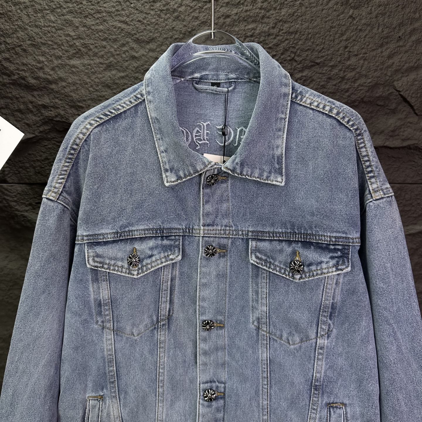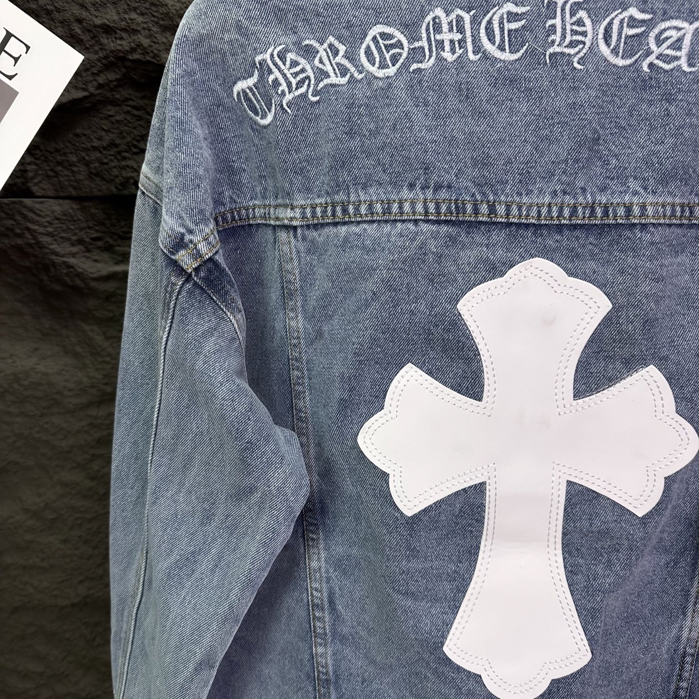 这款衣服是AAAAA 1:1 质量 (非常棒). 使用了和原版一模一样的材料. 商标部分也保持了和克罗心/Chrome Hearts一样. 图片拍摄是实物衣服拍摄, 您所收到的实物保证和我们图片一模一样.