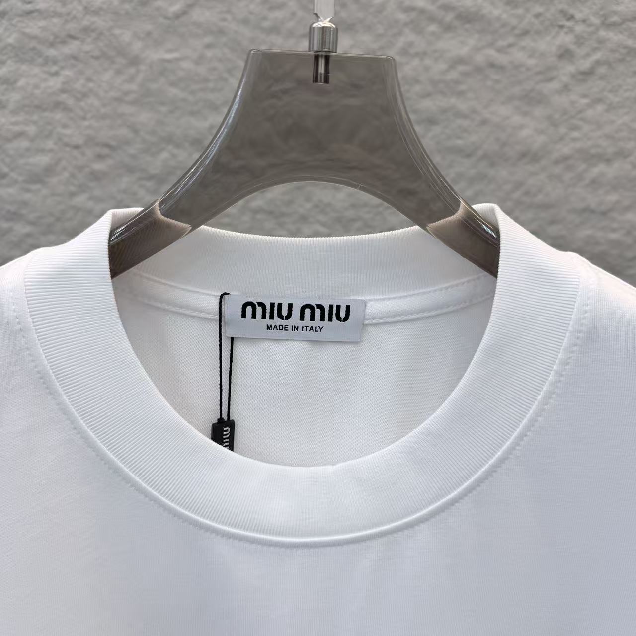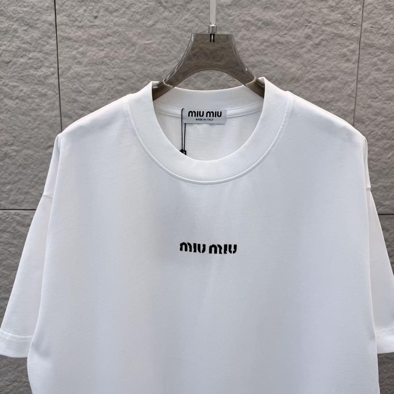 这款衣服是AAAAA 1:1 质量 (非常棒). 使用了和原版一模一样的材料. 商标部分也保持了和缪缪/Miu Miu一样. 图片拍摄是实物衣服拍摄, 您所收到的实物保证和我们图片一模一样.