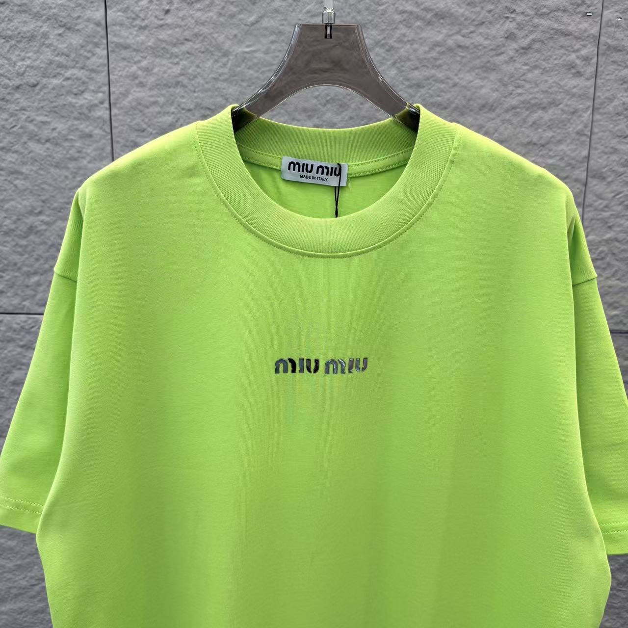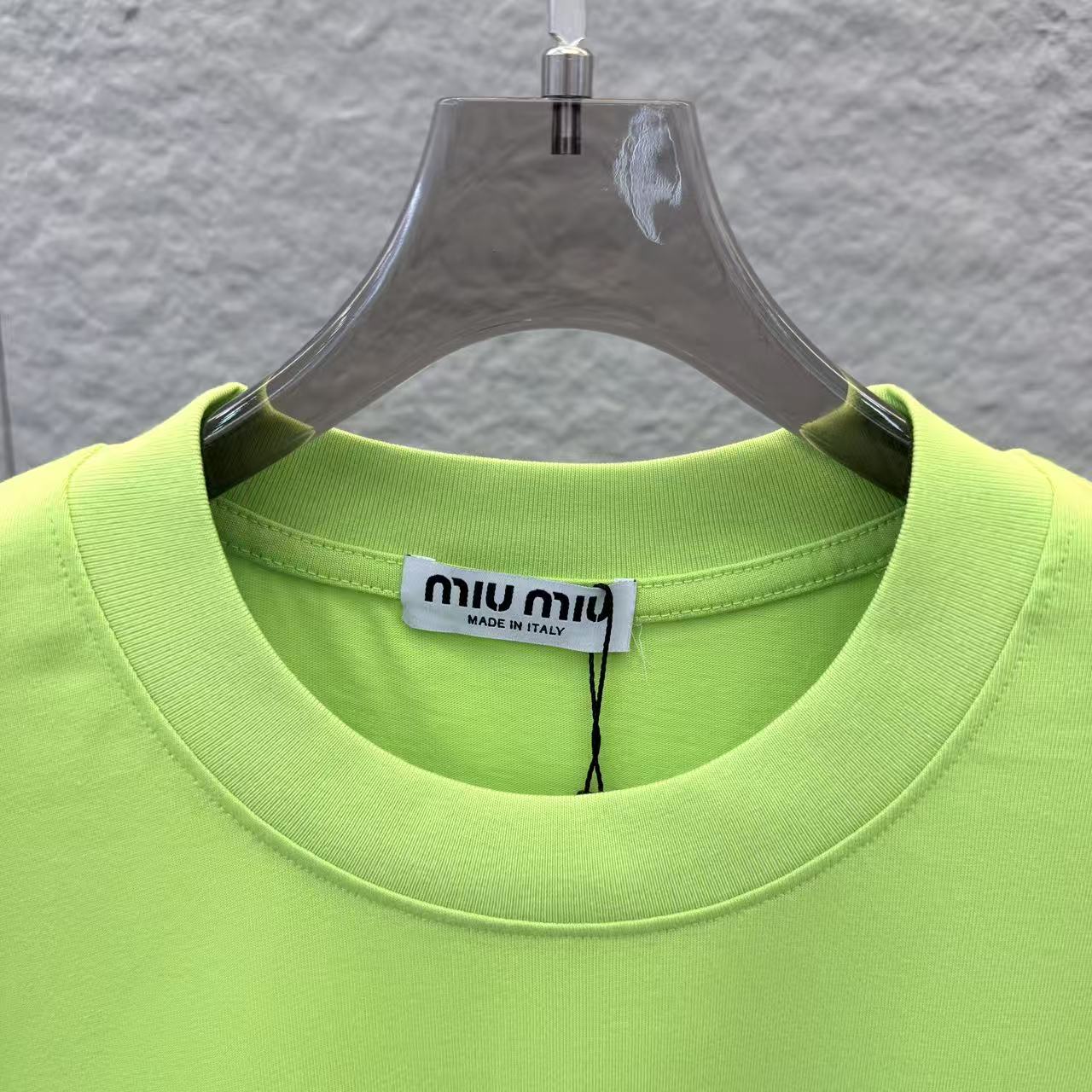 这款衣服是AAAAA 1:1 质量 (非常棒). 使用了和原版一模一样的材料. 商标部分也保持了和缪缪/Miu Miu一样. 图片拍摄是实物衣服拍摄, 您所收到的实物保证和我们图片一模一样.