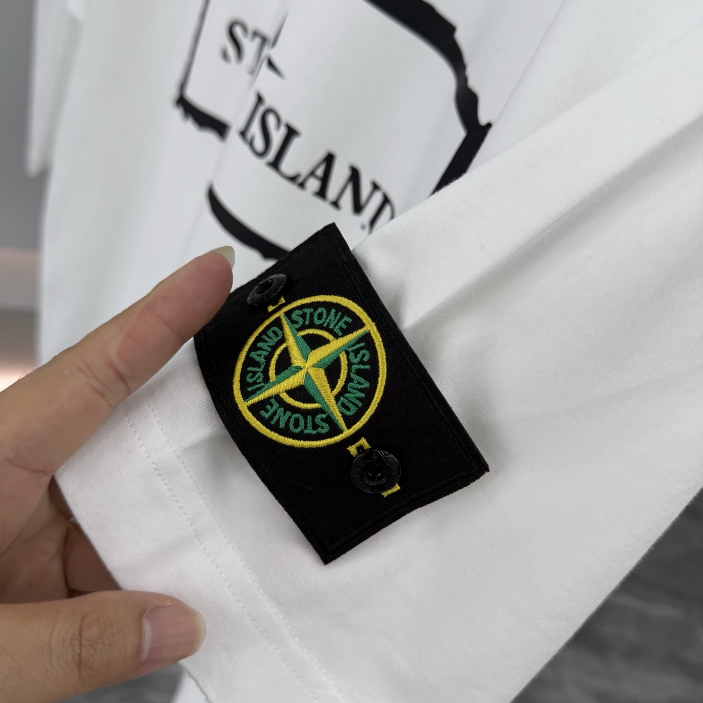 这款衣服是AAAAA 1:1 质量 (非常棒). 使用了和原版一模一样的材料. 商标部分也保持了和Stone Island一样. 图片拍摄是实物衣服拍摄, 您所收到的实物保证和我们图片一模一样.