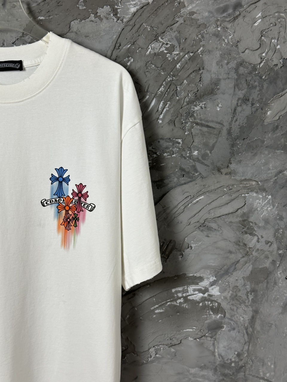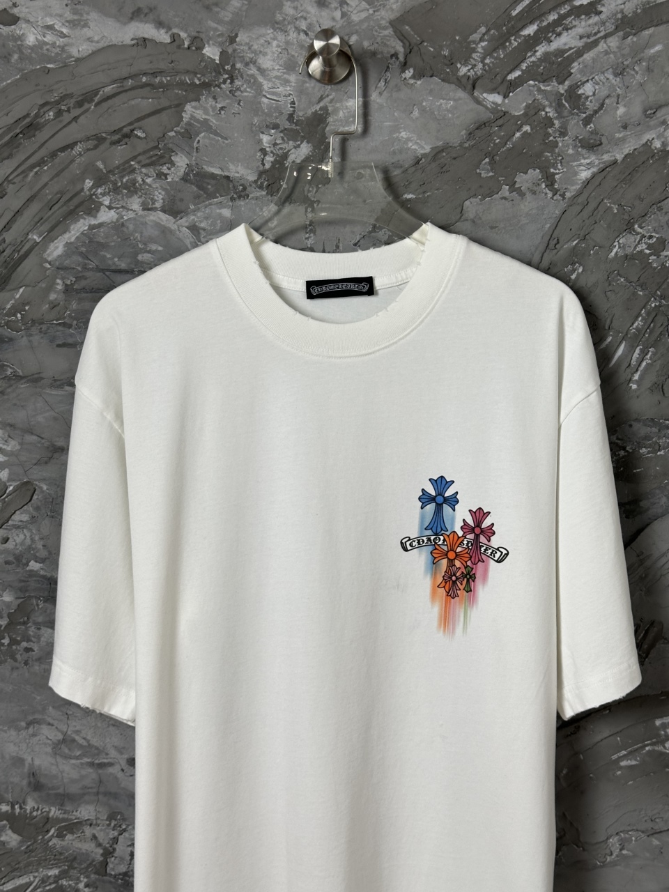 这款衣服是AAAAA 1:1 质量 (非常棒). 使用了和原版一模一样的材料. 商标部分也保持了和克罗心/Chrome Hearts一样. 图片拍摄是实物衣服拍摄, 您所收到的实物保证和我们图片一模一样.