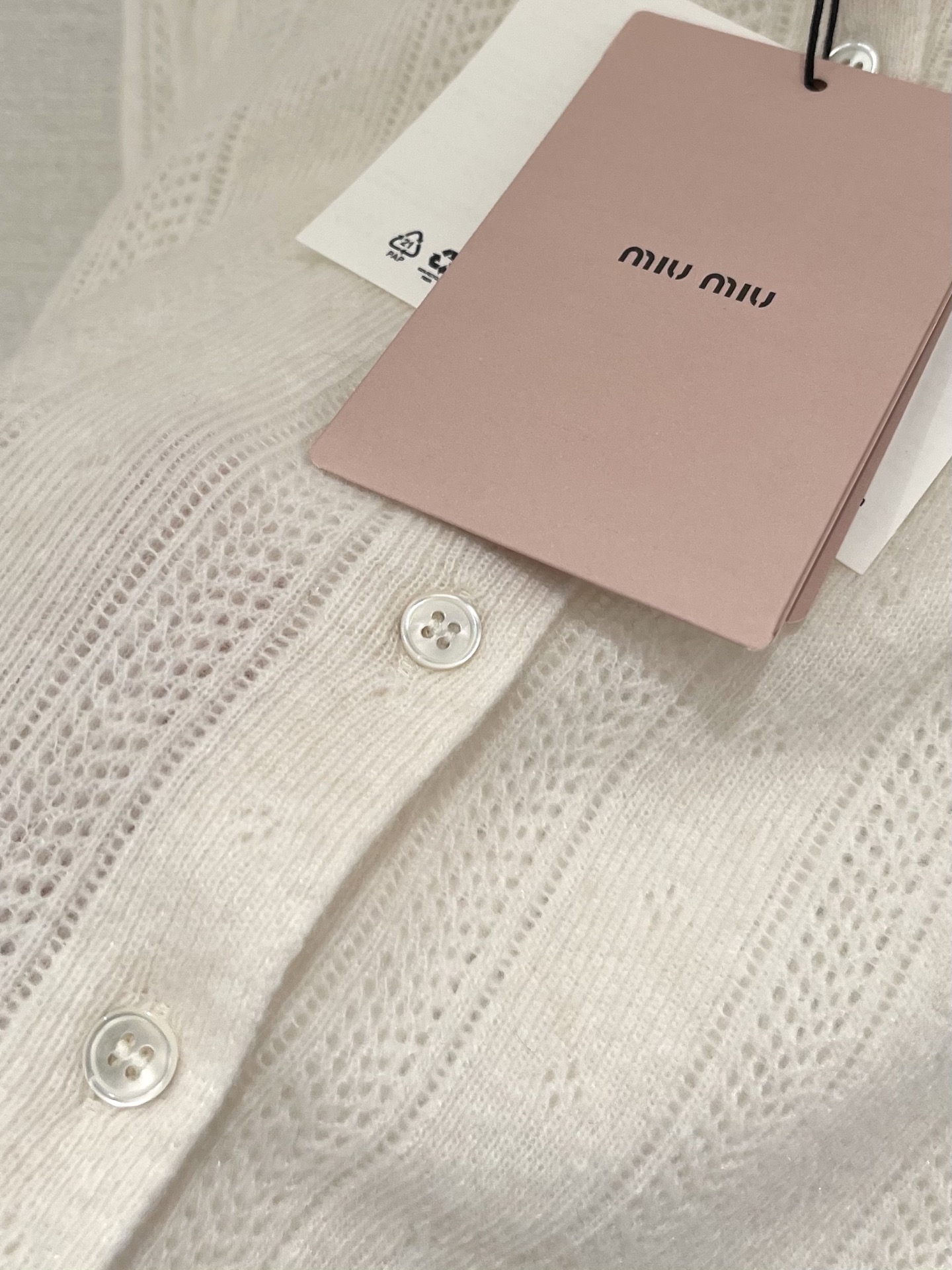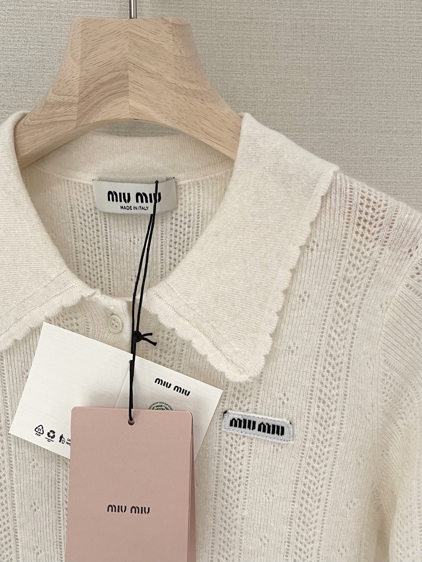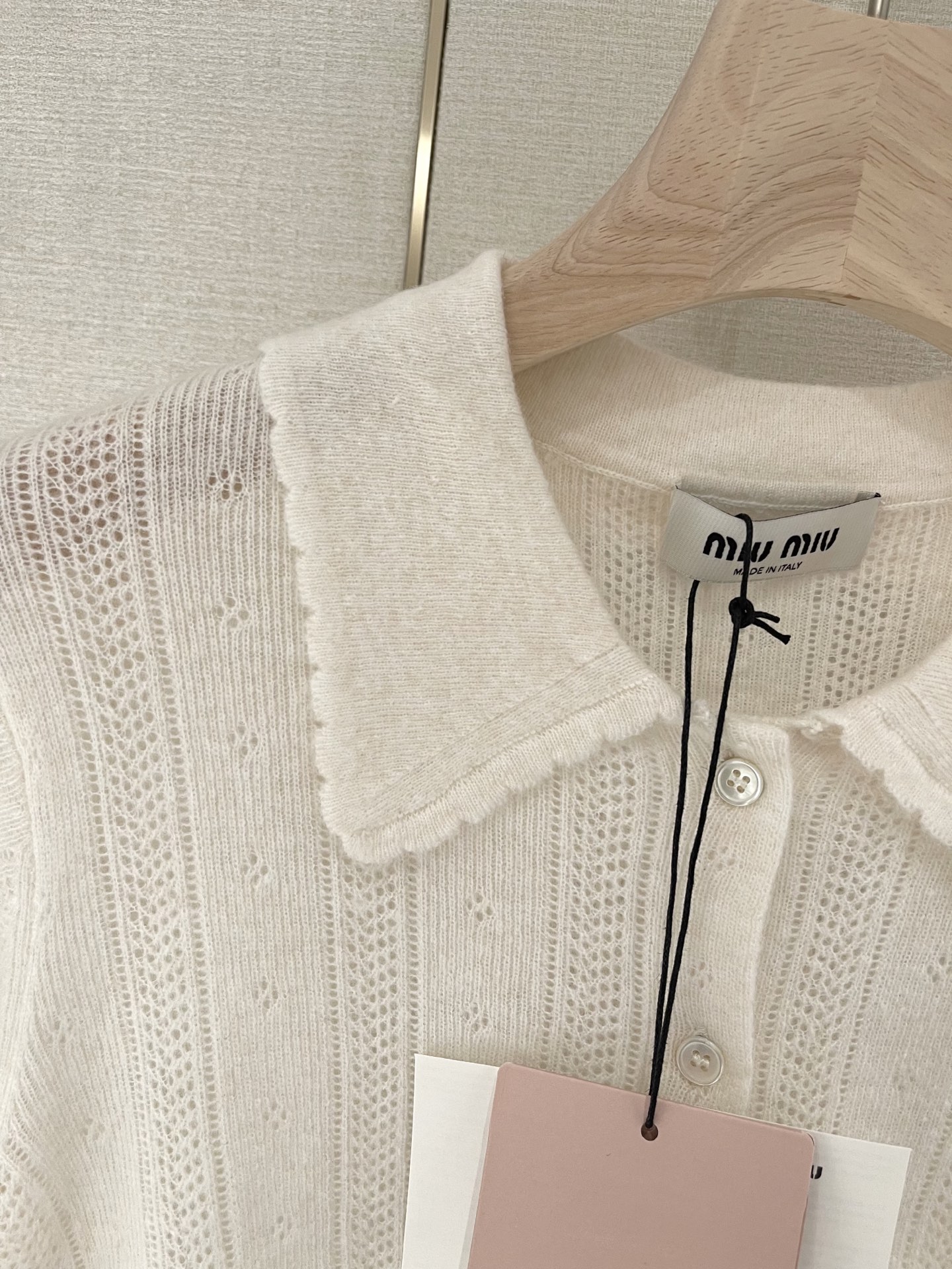 这款衣服是AAAAA 1:1 质量 (非常棒). 使用了和原版一模一样的材料. 商标部分也保持了和缪缪/Miu Miu一样. 图片拍摄是实物衣服拍摄, 您所收到的实物保证和我们图片一模一样.