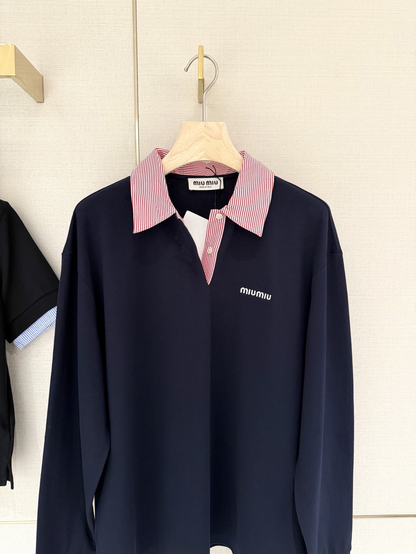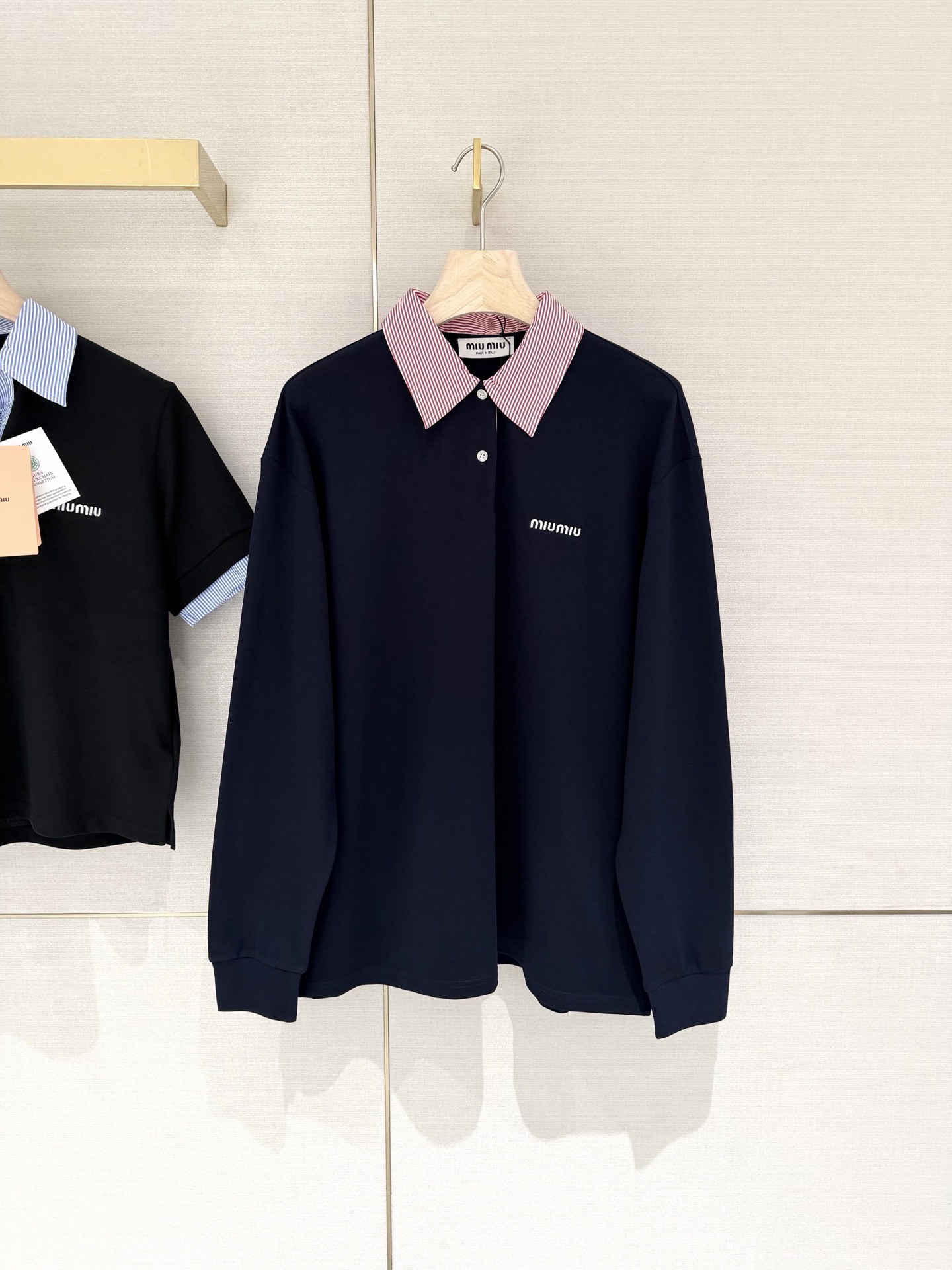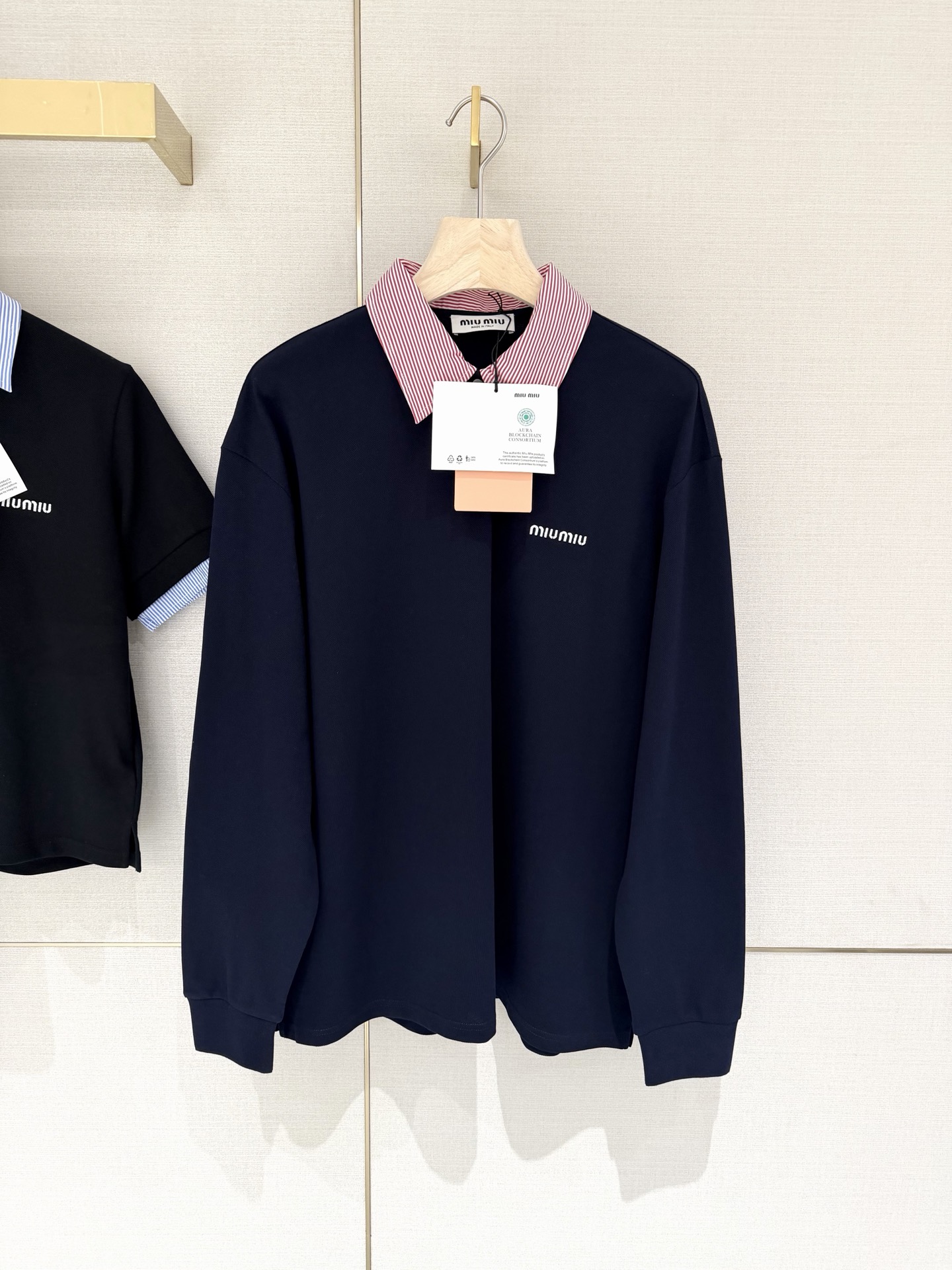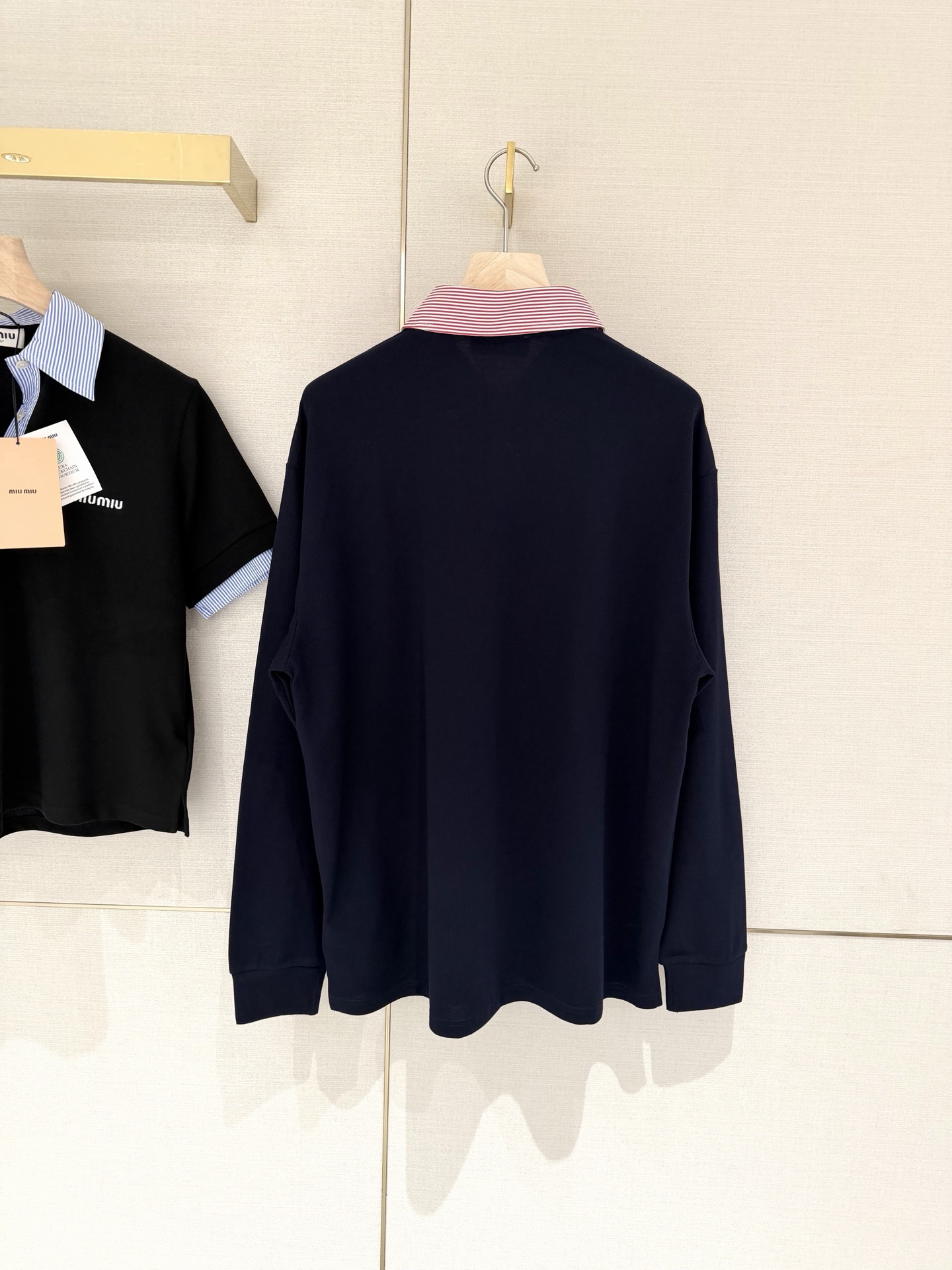 这款衣服是AAAAA 1:1 质量 (非常棒). 使用了和原版一模一样的材料. 商标部分也保持了和缪缪/Miu Miu一样. 图片拍摄是实物衣服拍摄, 您所收到的实物保证和我们图片一模一样.