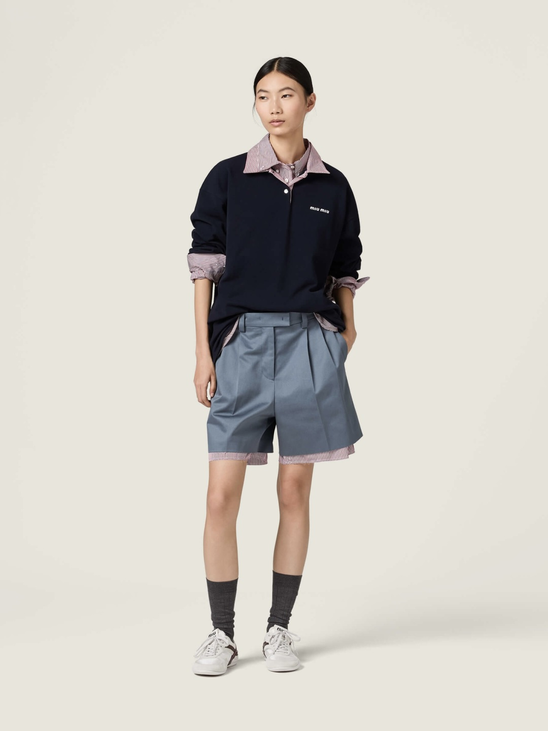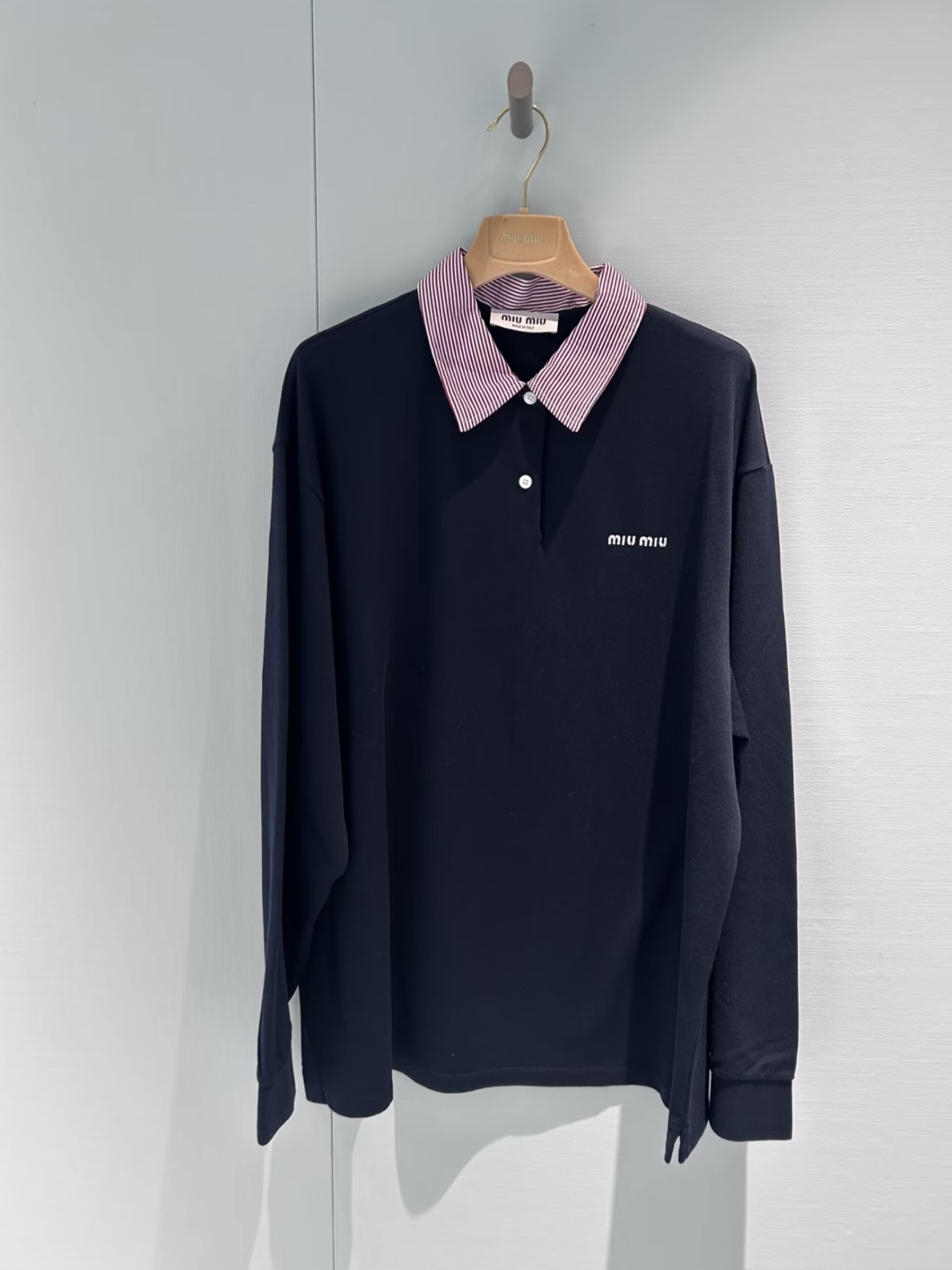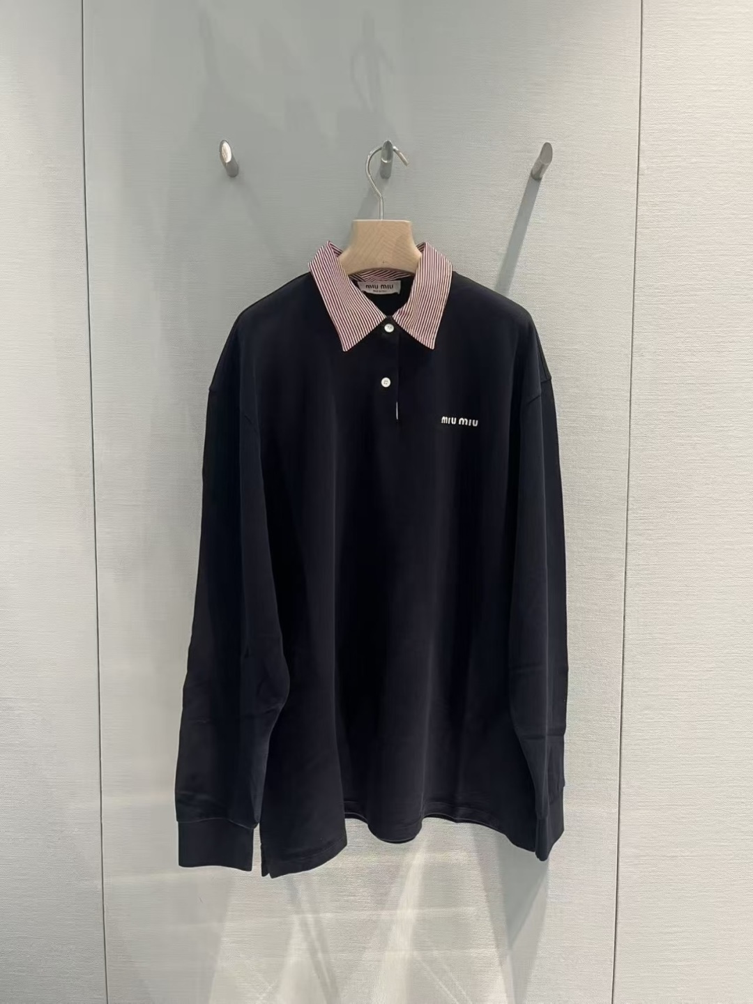 这款衣服是AAAAA 1:1 质量 (非常棒). 使用了和原版一模一样的材料. 商标部分也保持了和缪缪/Miu Miu一样. 图片拍摄是实物衣服拍摄, 您所收到的实物保证和我们图片一模一样.
