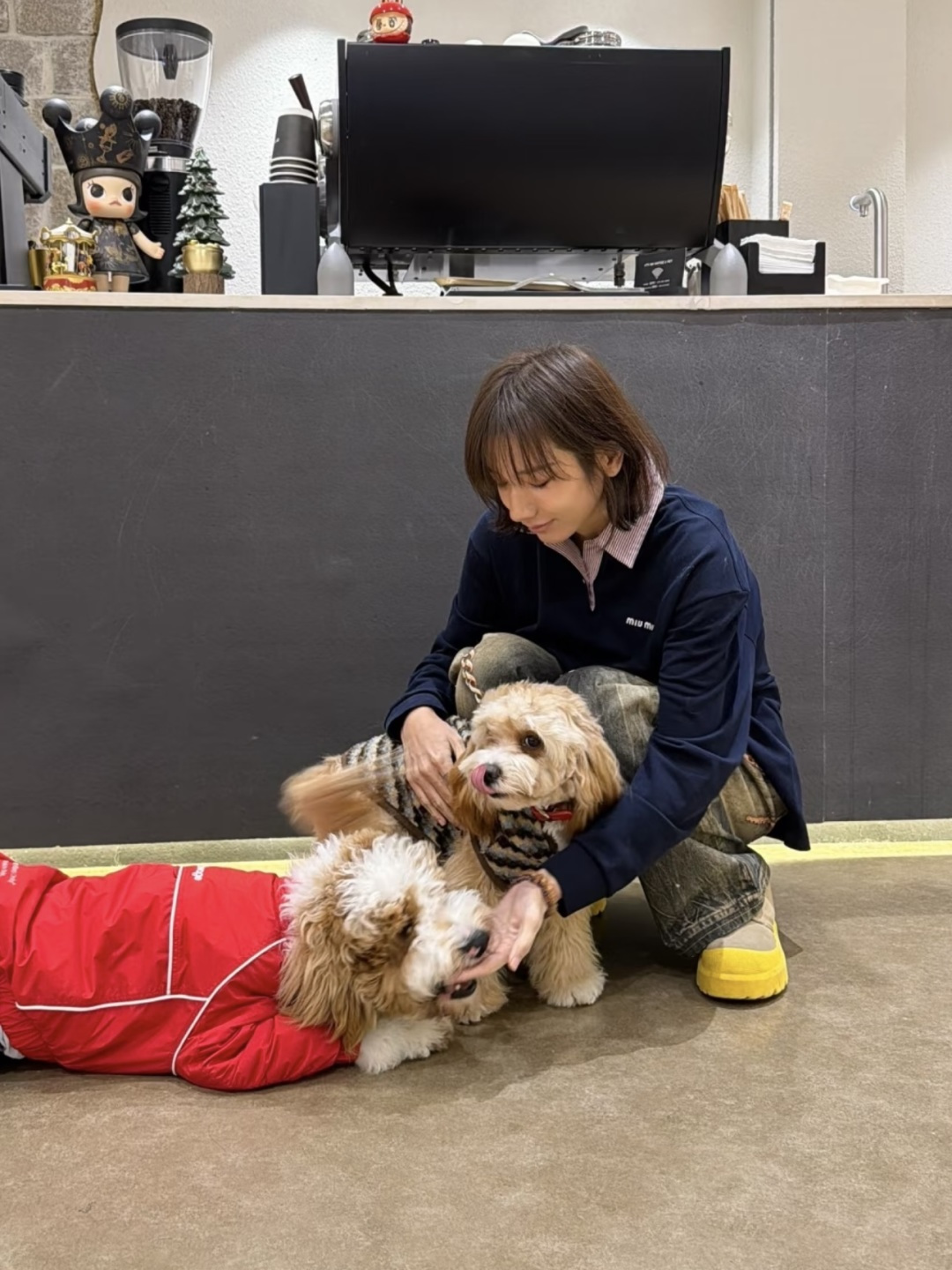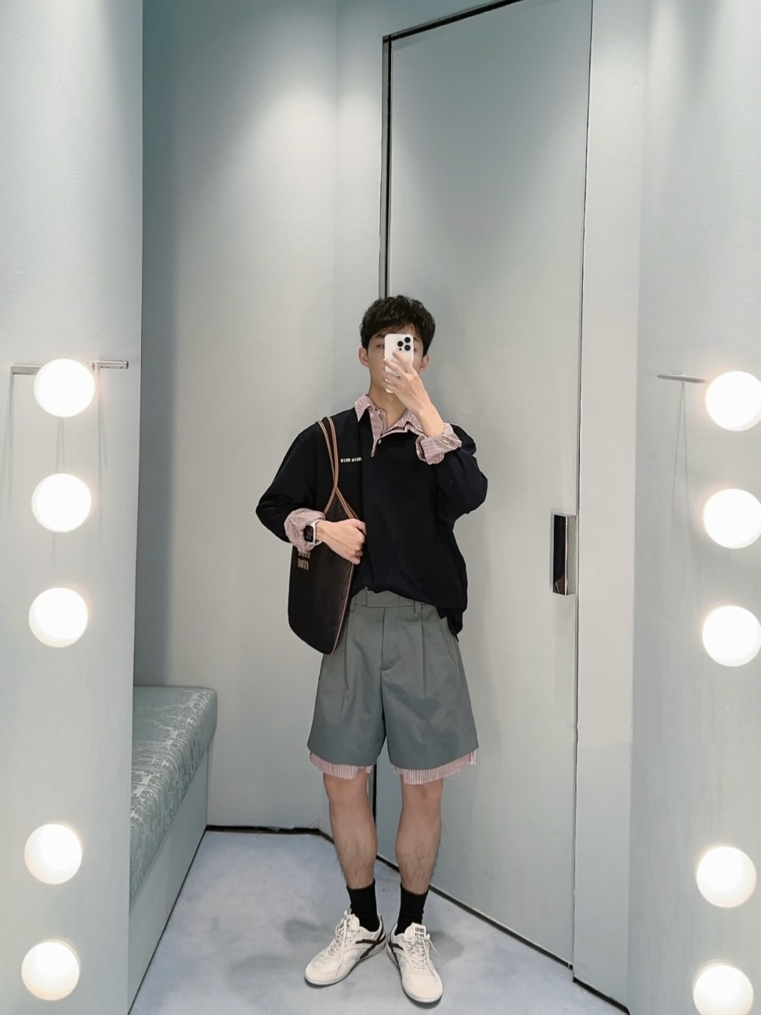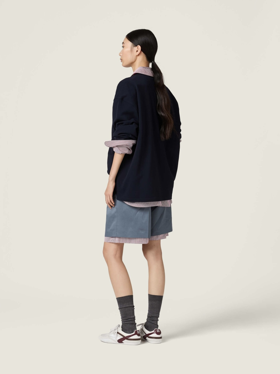这款衣服是AAAAA 1:1 质量 (非常棒). 使用了和原版一模一样的材料. 商标部分也保持了和缪缪/Miu Miu一样. 图片拍摄是实物衣服拍摄, 您所收到的实物保证和我们图片一模一样.