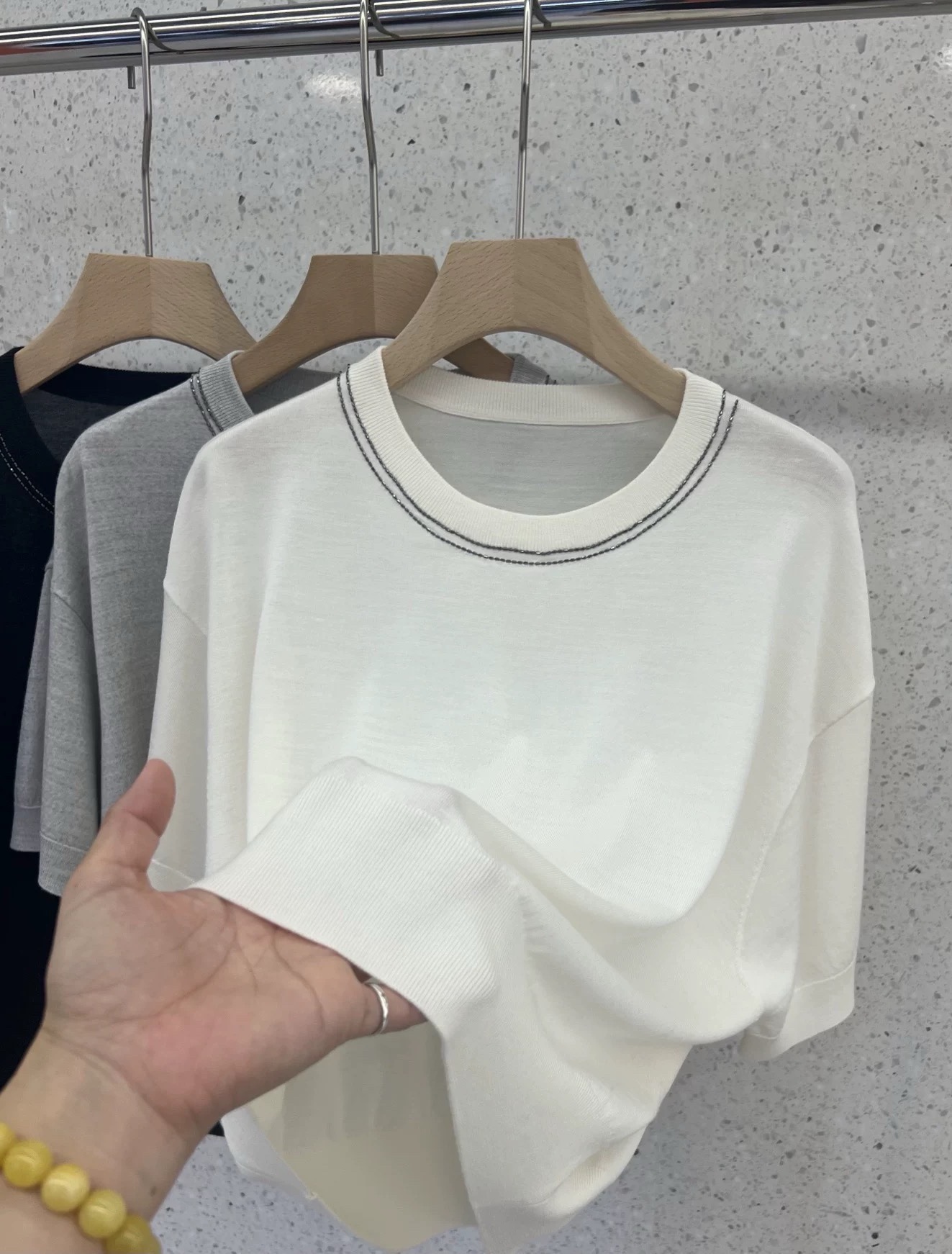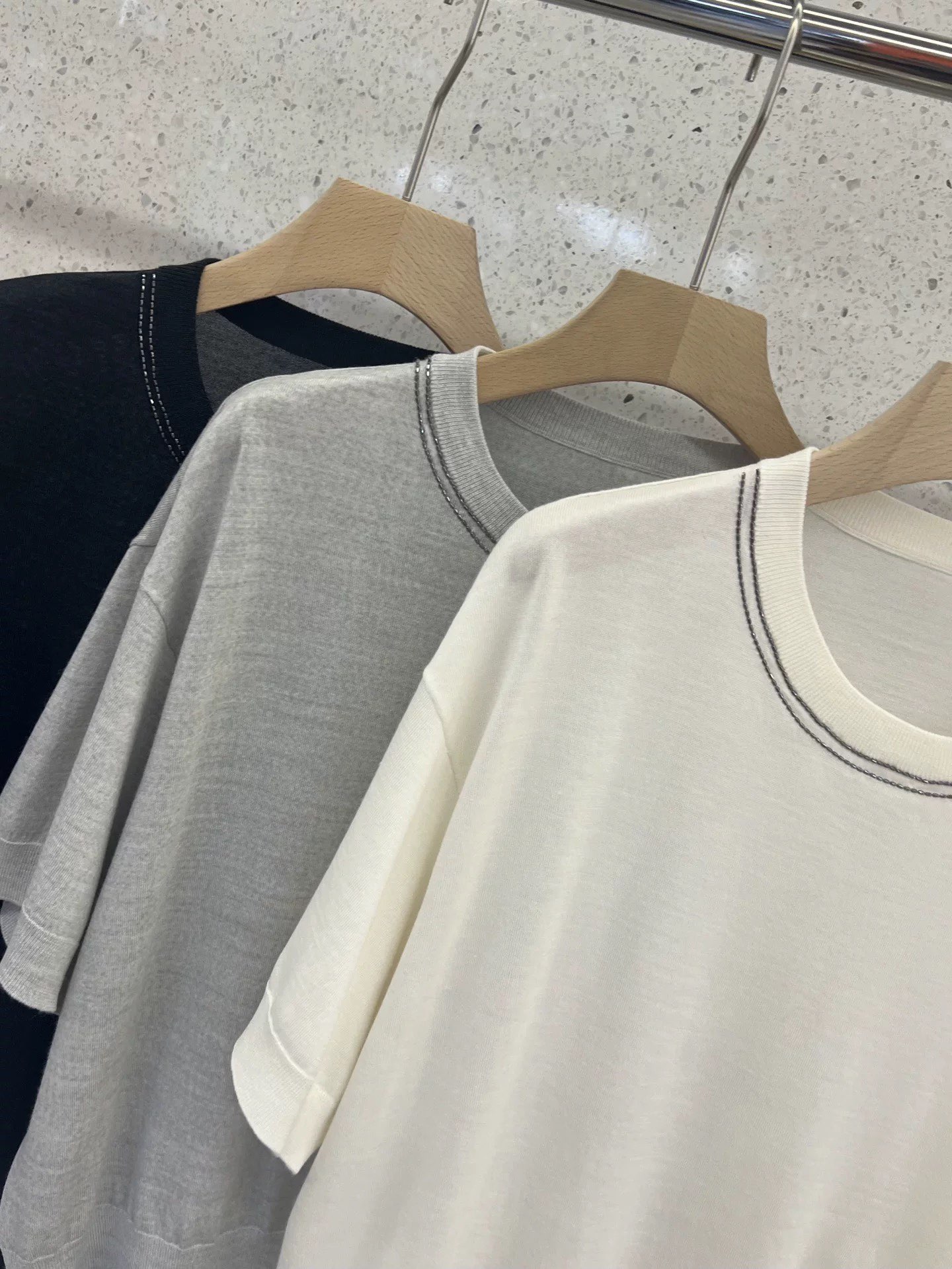这款衣服是AAAAA 1:1 质量 (非常棒). 使用了和原版一模一样的材料. 商标部分也保持了和Brunello Cucinelli一样. 图片拍摄是实物衣服拍摄, 您所收到的实物保证和我们图片一模一样.