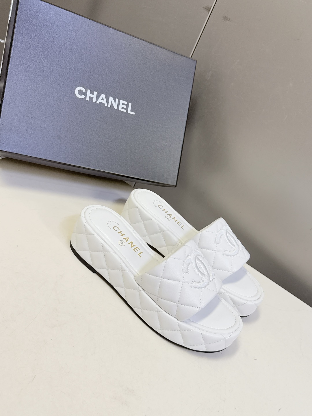 这款鞋子是AAAAA 1:1 质量 (非常棒). 使用了和原版一模一样的材料. 商标部分也保持了和香奈儿/Chanel一样. 图片拍摄是实物鞋子拍摄, 您所收到的实物保证和我们图片一模一样.