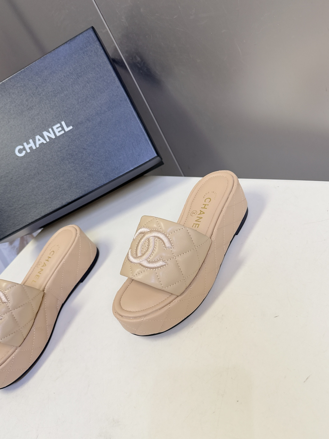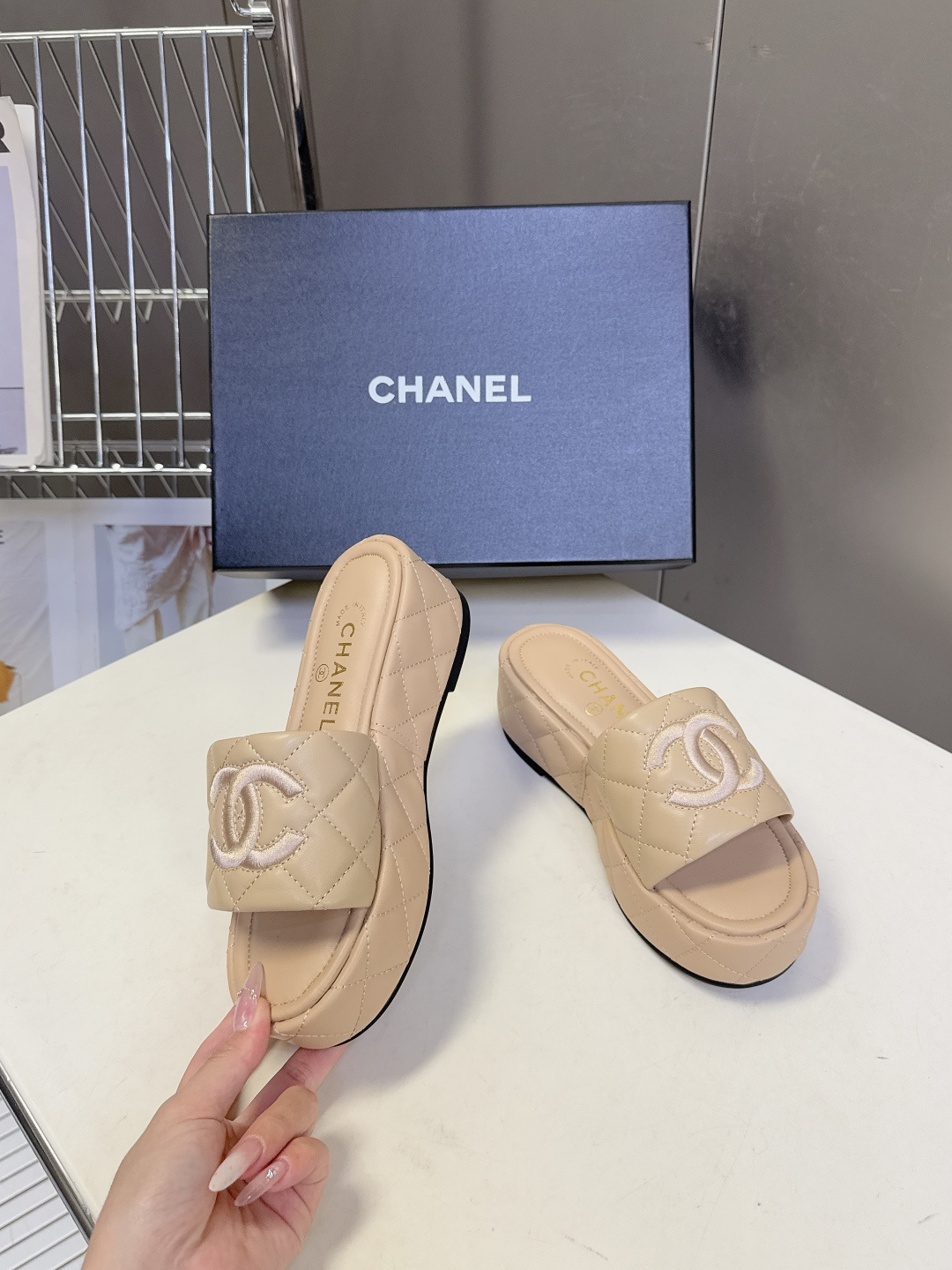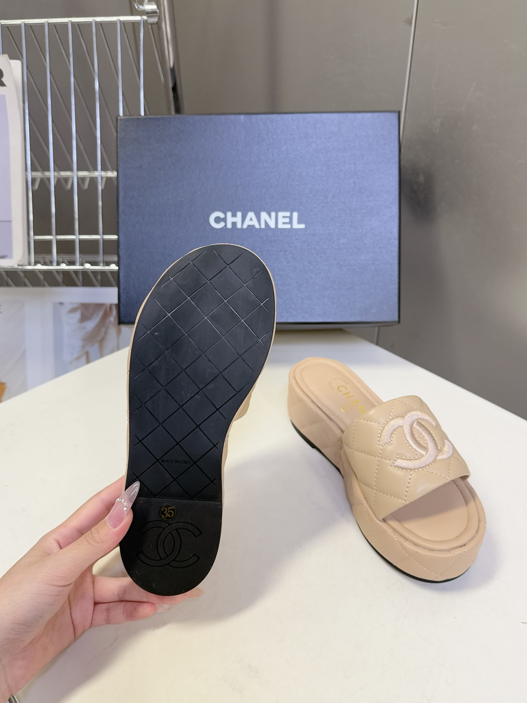 这款鞋子是AAAAA 1:1 质量 (非常棒). 使用了和原版一模一样的材料. 商标部分也保持了和香奈儿/Chanel一样. 图片拍摄是实物鞋子拍摄, 您所收到的实物保证和我们图片一模一样.