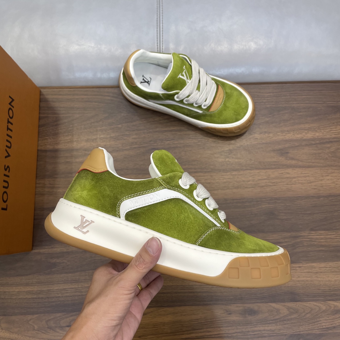 这款鞋子是AAAAA 1:1 质量 (非常棒). 使用了和原版一模一样的材料. 商标部分也保持了和Ami一样. 图片拍摄是实物鞋子拍摄, 您所收到的实物保证和我们图片一模一样.