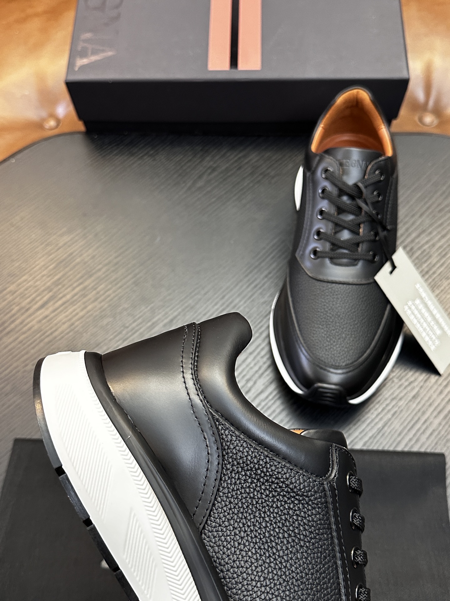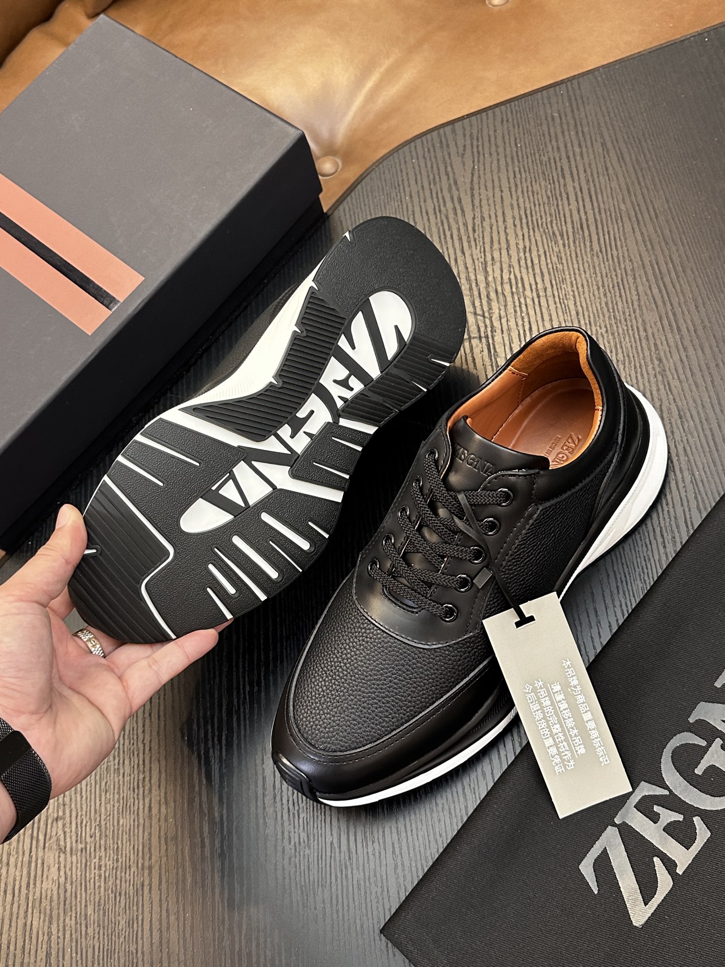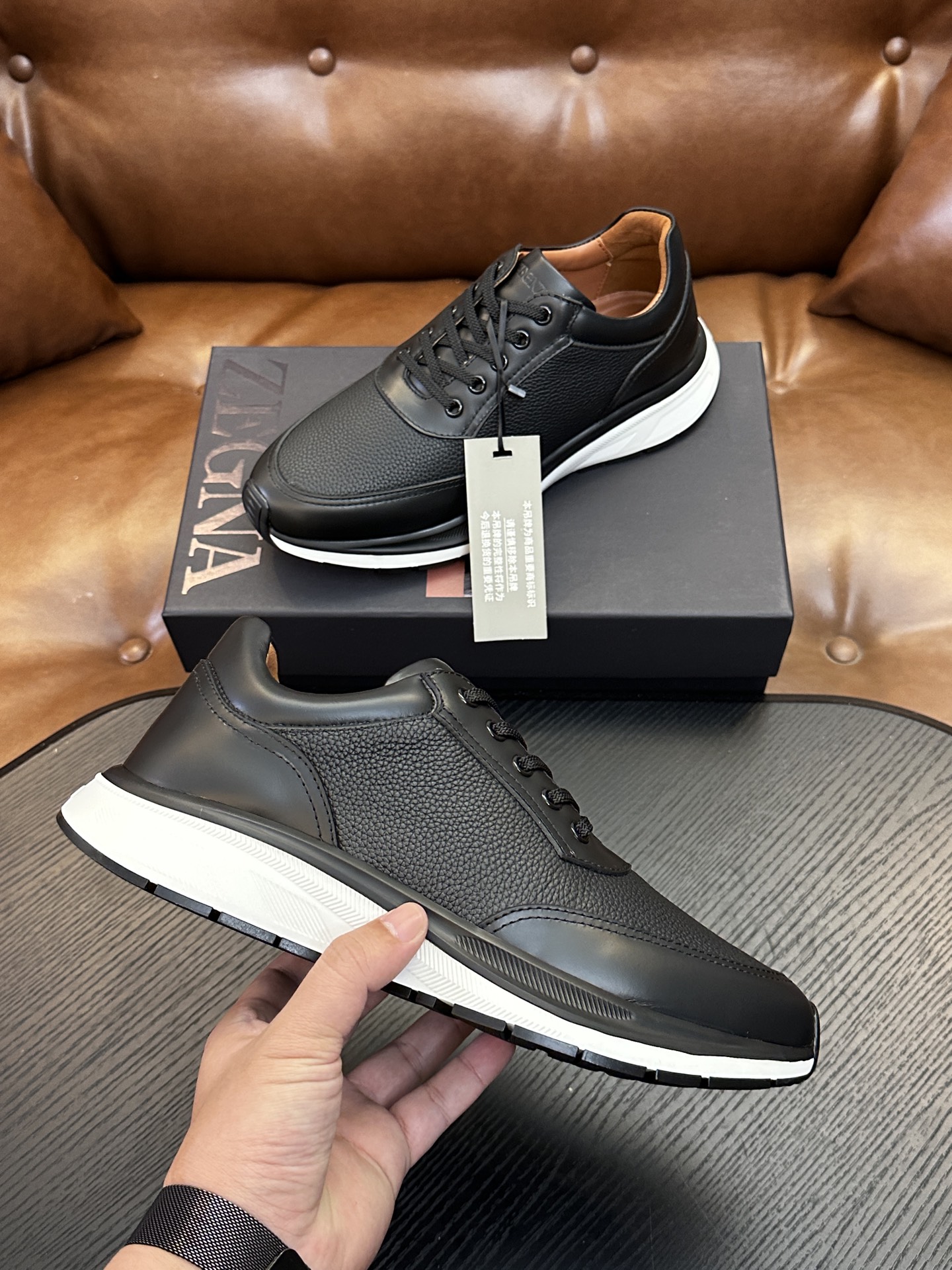 这款鞋子是AAAAA 1:1 质量 (非常棒). 使用了和原版一模一样的材料. 商标部分也保持了和杰尼亚/Zegna一样. 图片拍摄是实物鞋子拍摄, 您所收到的实物保证和我们图片一模一样.