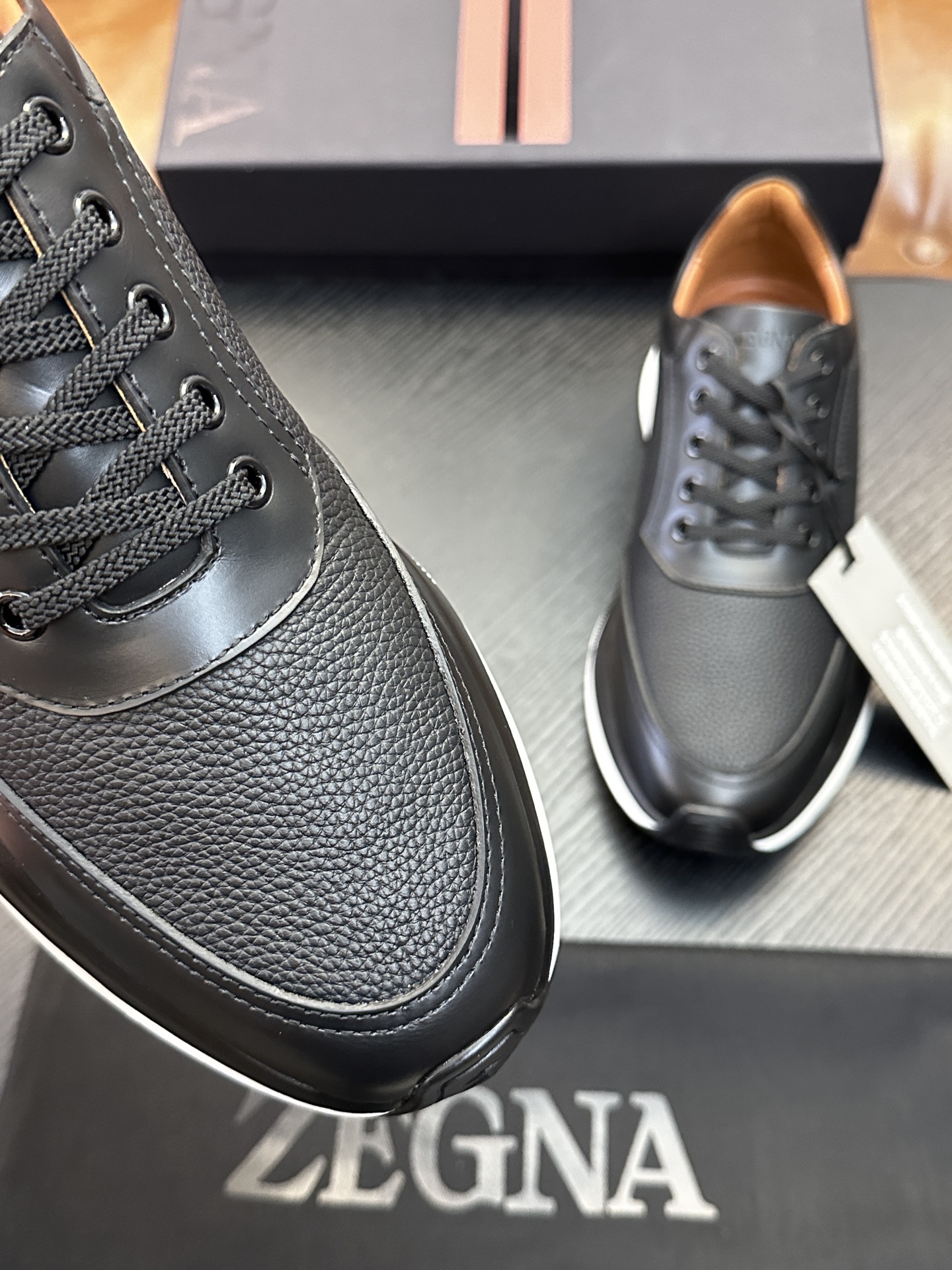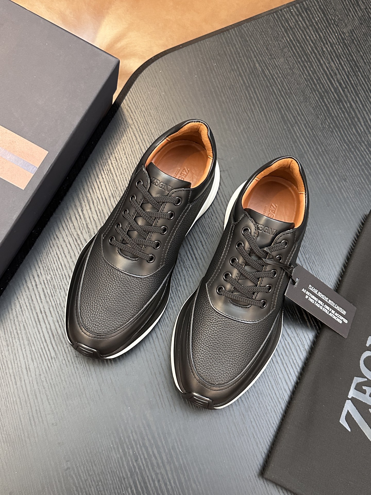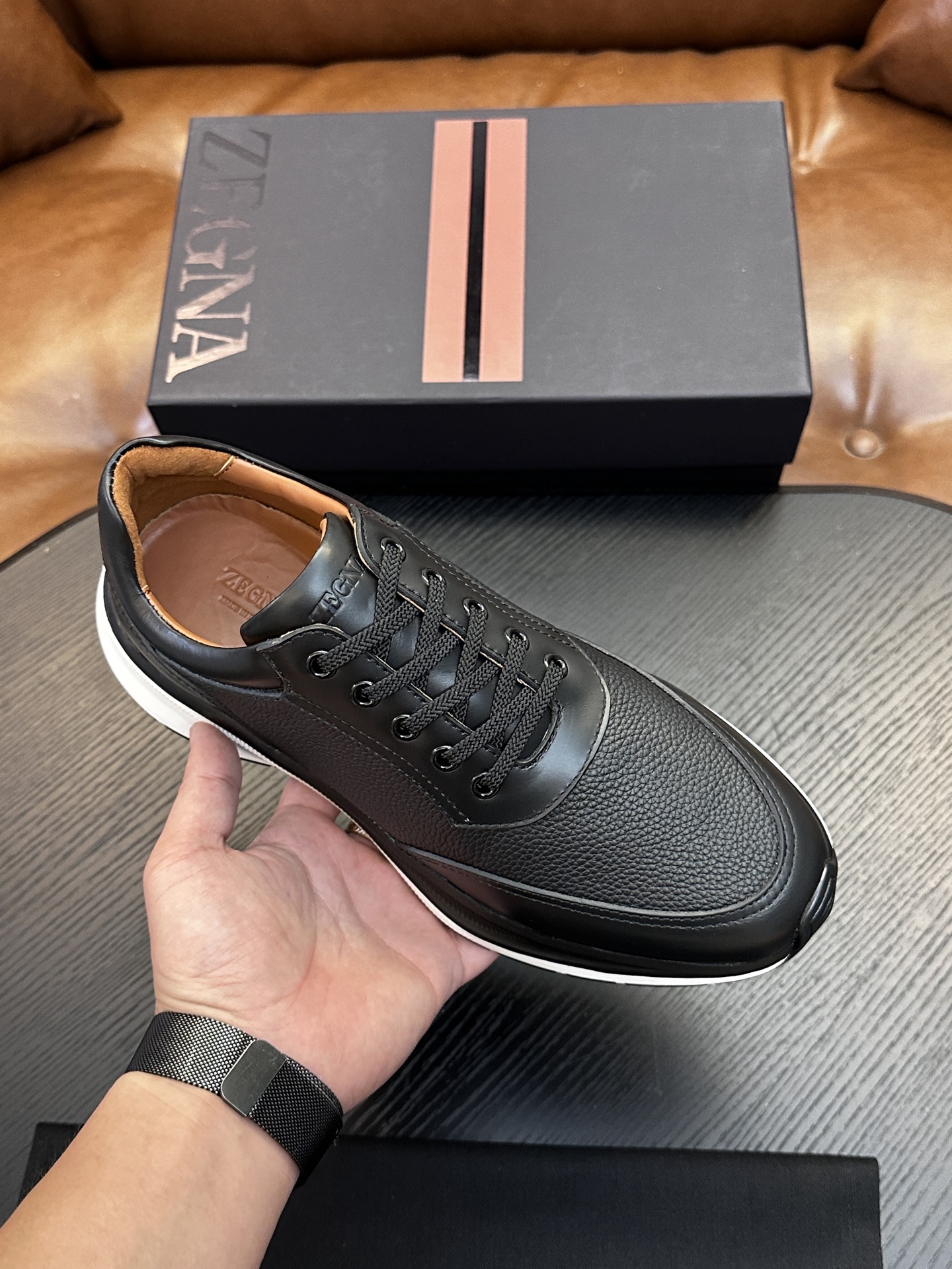 这款鞋子是AAAAA 1:1 质量 (非常棒). 使用了和原版一模一样的材料. 商标部分也保持了和杰尼亚/Zegna一样. 图片拍摄是实物鞋子拍摄, 您所收到的实物保证和我们图片一模一样.