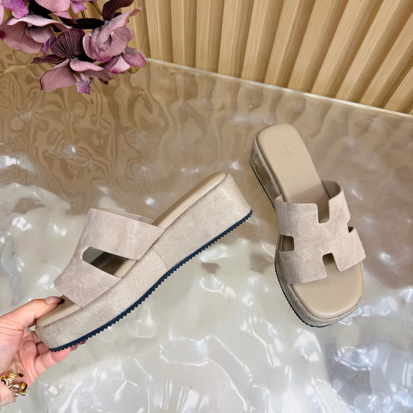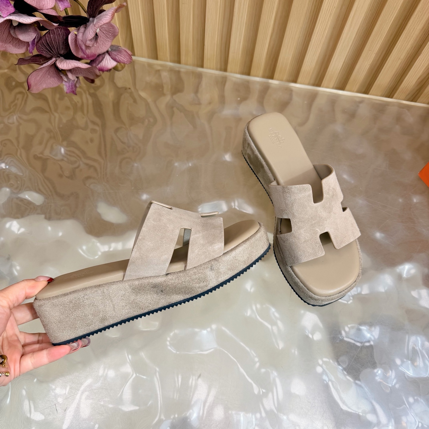 这款鞋子是AAAAA 1:1 质量 (非常棒). 使用了和原版一模一样的材料. 商标部分也保持了和爱马仕/Hermes一样. 图片拍摄是实物鞋子拍摄, 您所收到的实物保证和我们图片一模一样.