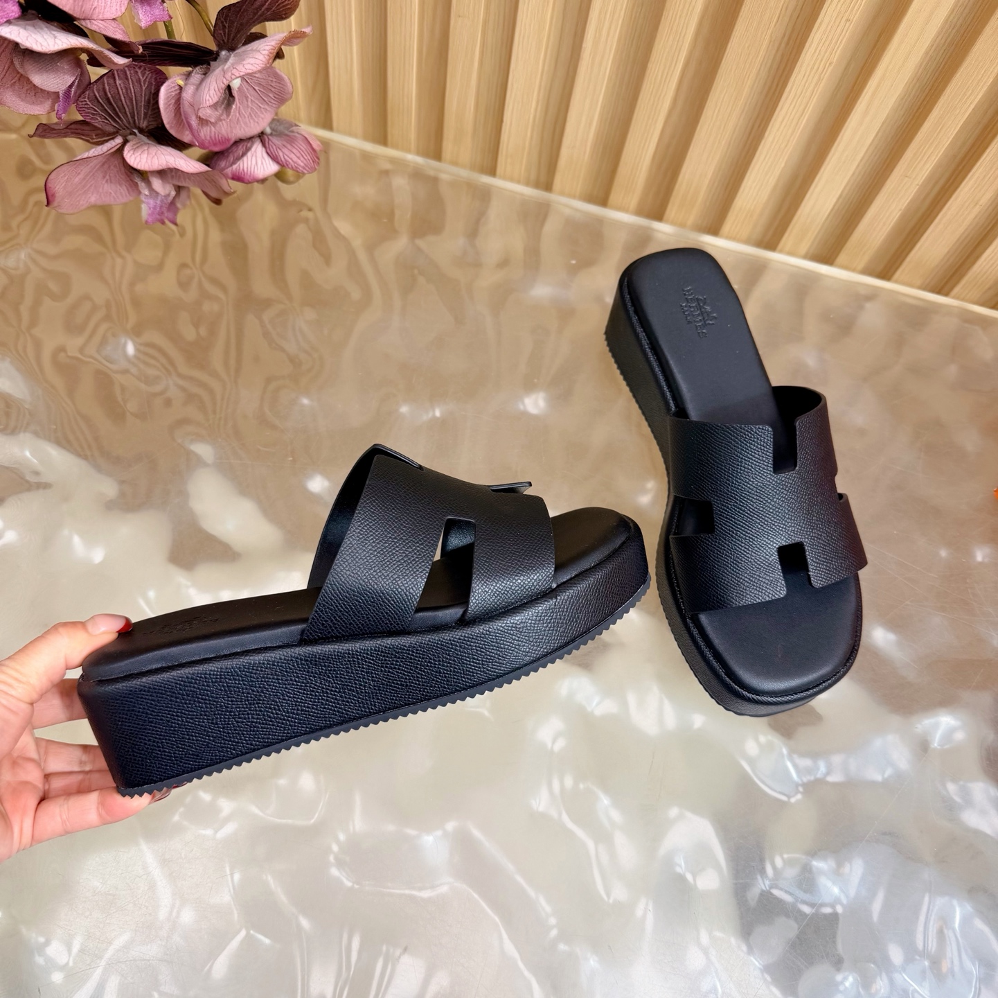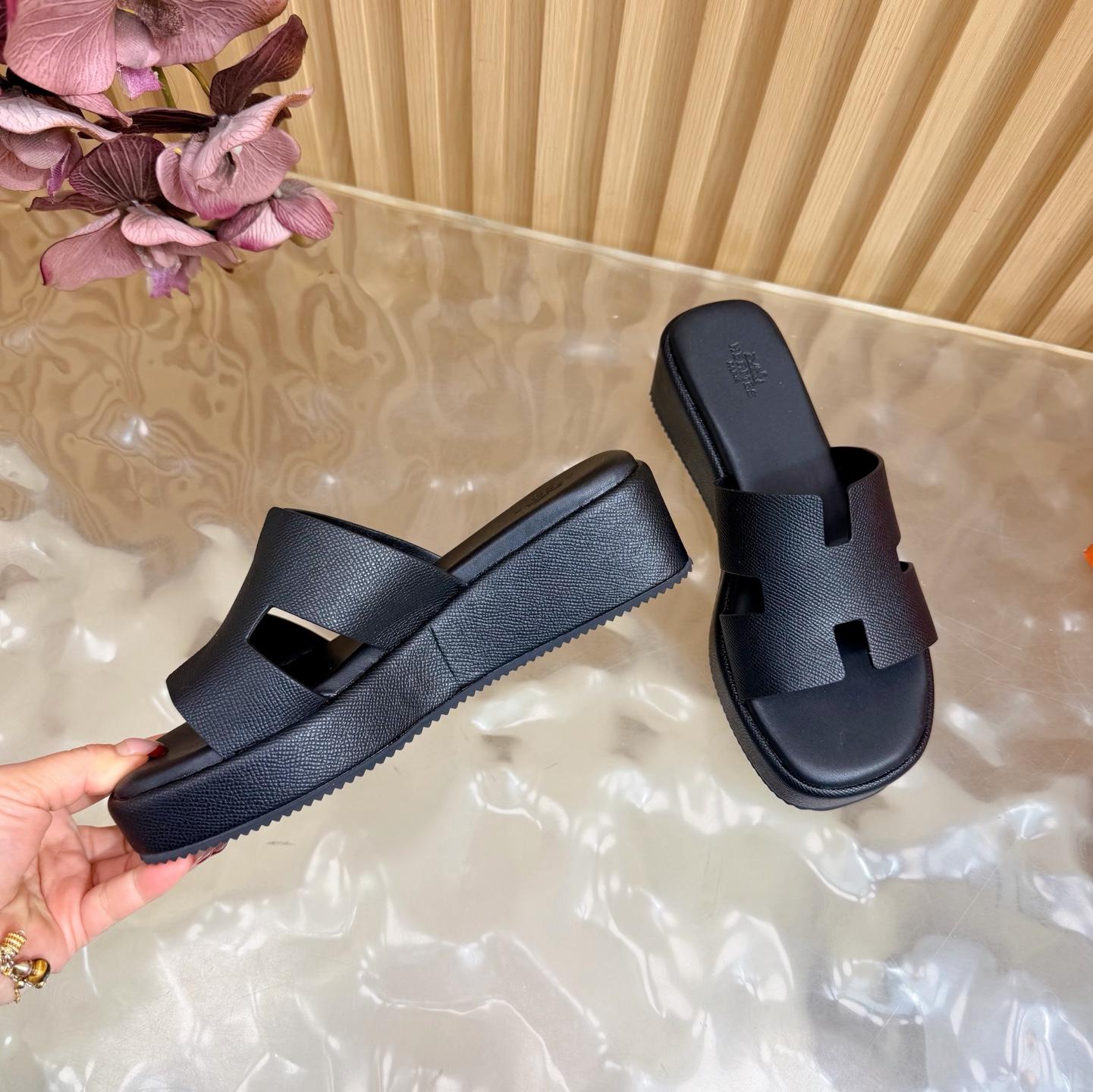 这款鞋子是AAAAA 1:1 质量 (非常棒). 使用了和原版一模一样的材料. 商标部分也保持了和爱马仕/Hermes一样. 图片拍摄是实物鞋子拍摄, 您所收到的实物保证和我们图片一模一样.