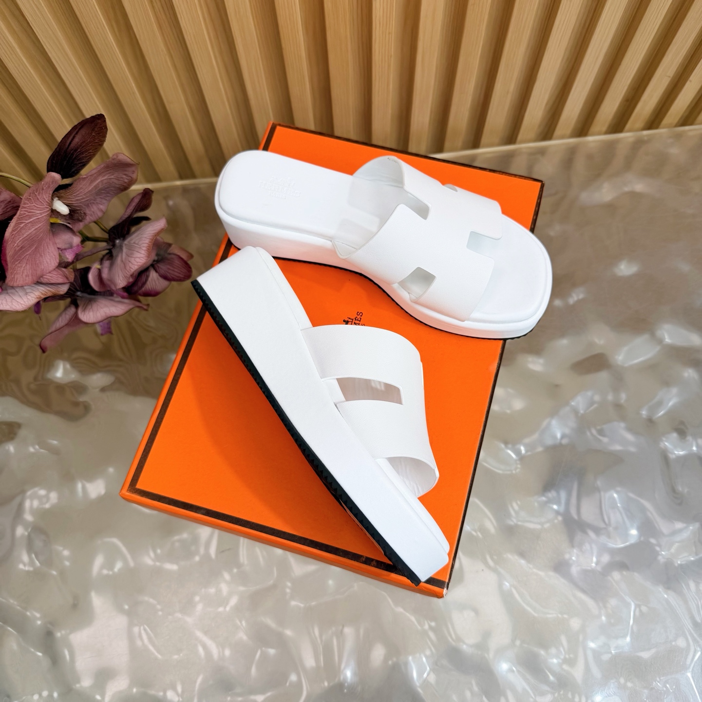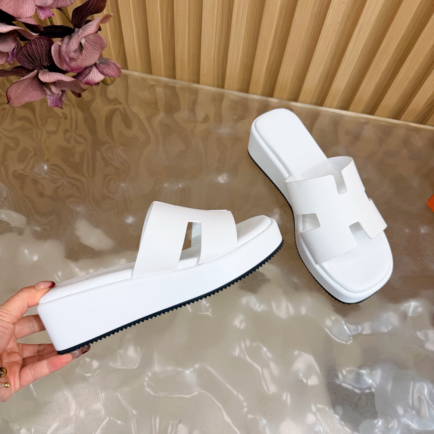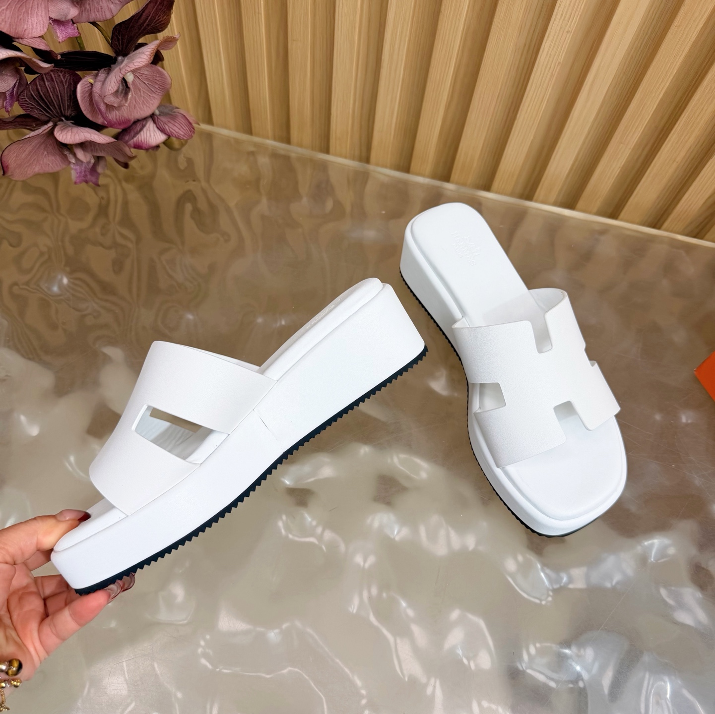 这款鞋子是AAAAA 1:1 质量 (非常棒). 使用了和原版一模一样的材料. 商标部分也保持了和爱马仕/Hermes一样. 图片拍摄是实物鞋子拍摄, 您所收到的实物保证和我们图片一模一样.