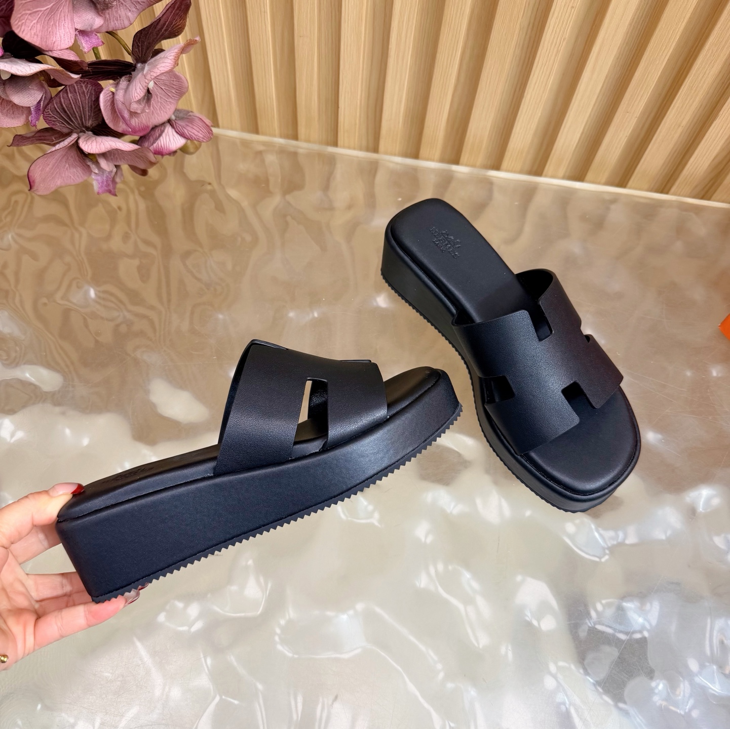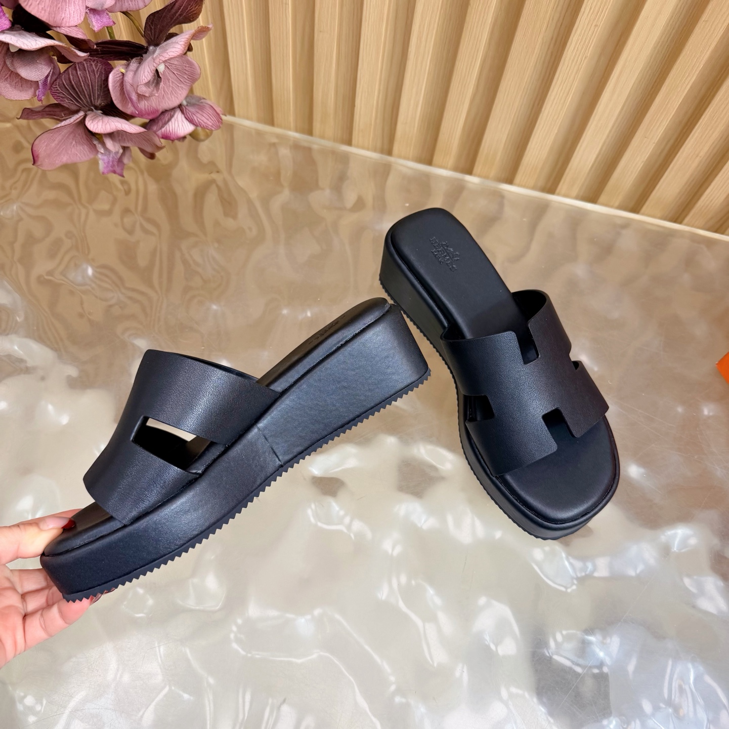 这款鞋子是AAAAA 1:1 质量 (非常棒). 使用了和原版一模一样的材料. 商标部分也保持了和爱马仕/Hermes一样. 图片拍摄是实物鞋子拍摄, 您所收到的实物保证和我们图片一模一样.