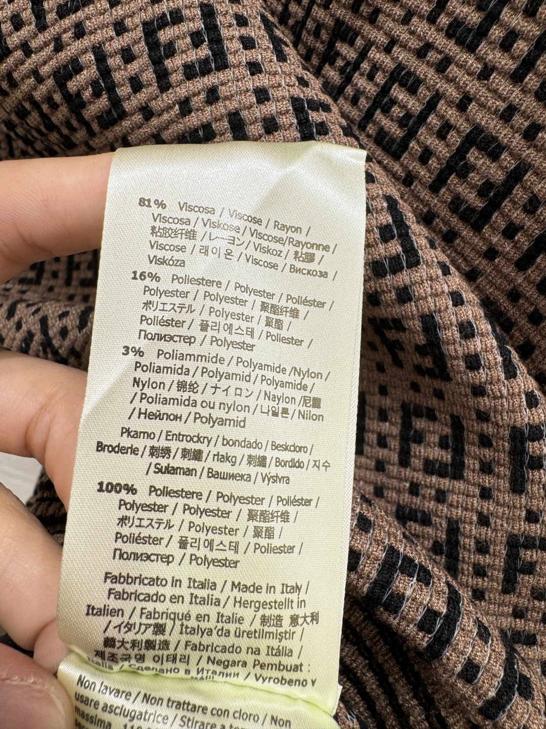 这款衣服是AAAAA 1:1 质量 (非常棒). 使用了和原版一模一样的材料. 商标部分也保持了和芬迪/Fendi一样. 图片拍摄是实物衣服拍摄, 您所收到的实物保证和我们图片一模一样.