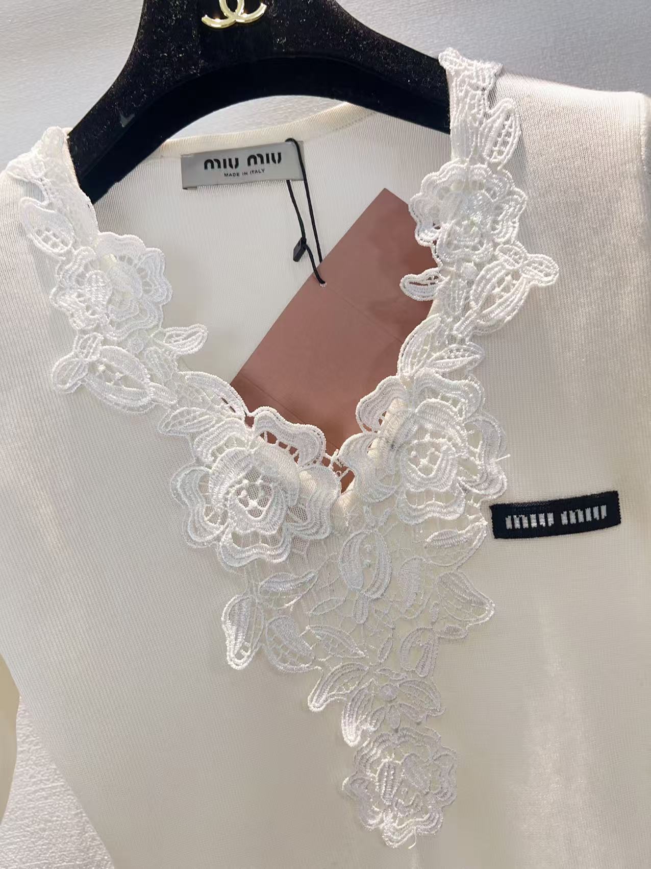 这款衣服是AAAAA 1:1 质量 (非常棒). 使用了和原版一模一样的材料. 商标部分也保持了和缪缪/Miu Miu一样. 图片拍摄是实物衣服拍摄, 您所收到的实物保证和我们图片一模一样.