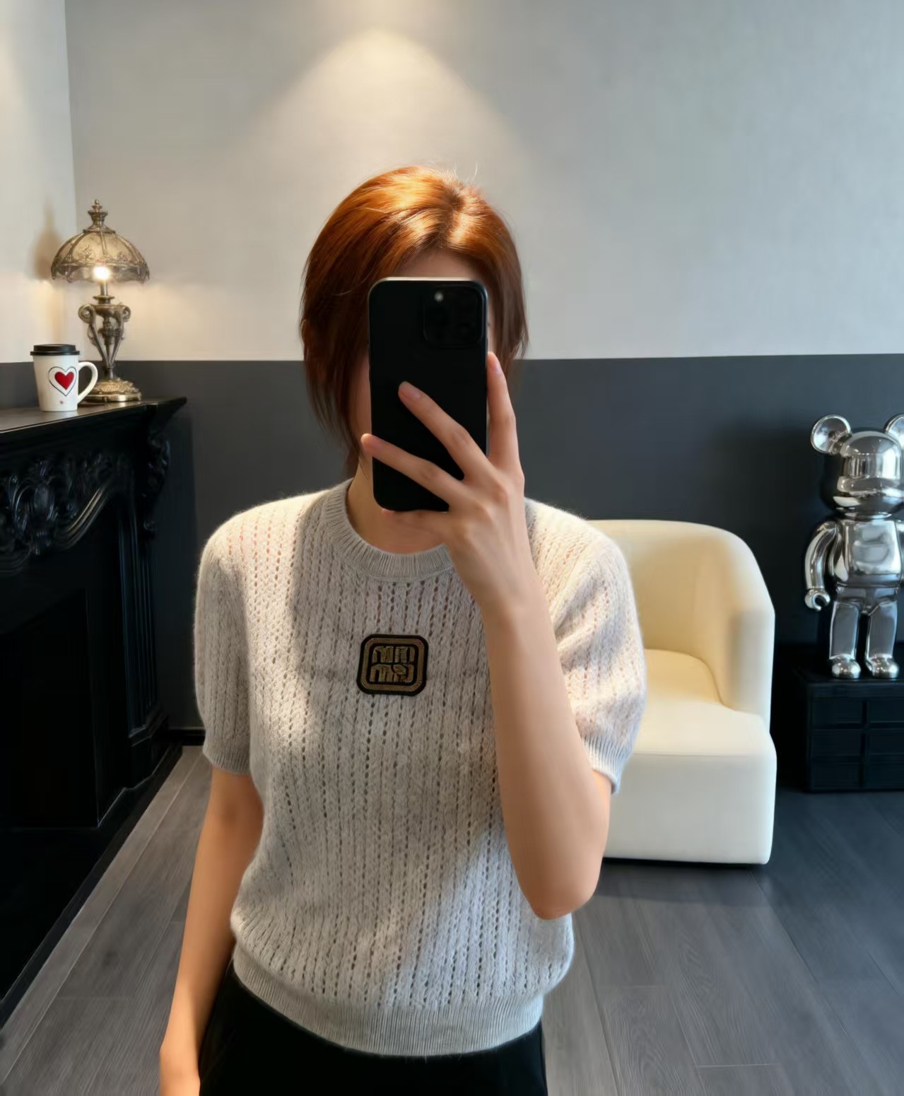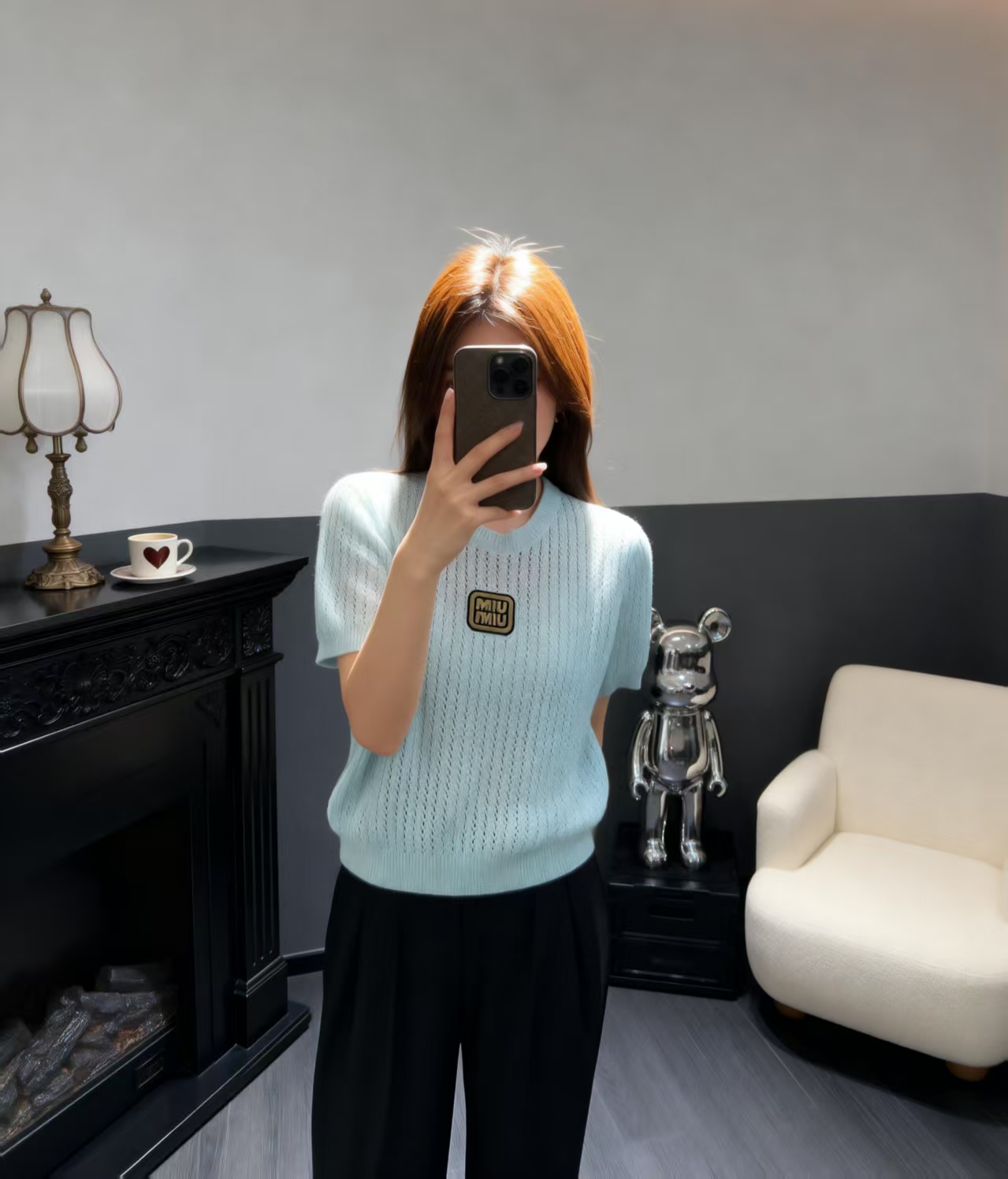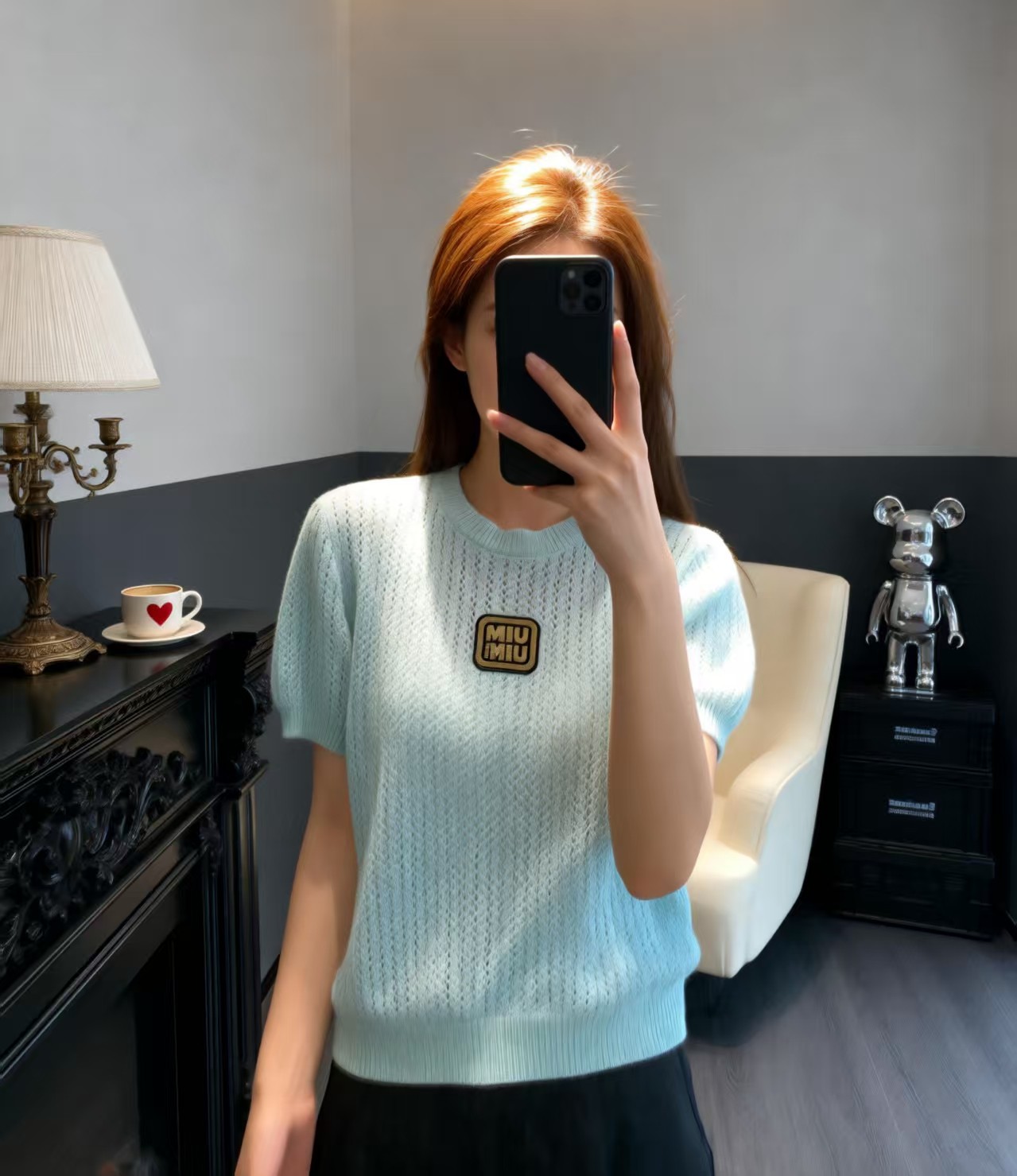 这款衣服是AAAAA 1:1 质量 (非常棒). 使用了和原版一模一样的材料. 商标部分也保持了和缪缪/Miu Miu一样. 图片拍摄是实物衣服拍摄, 您所收到的实物保证和我们图片一模一样.