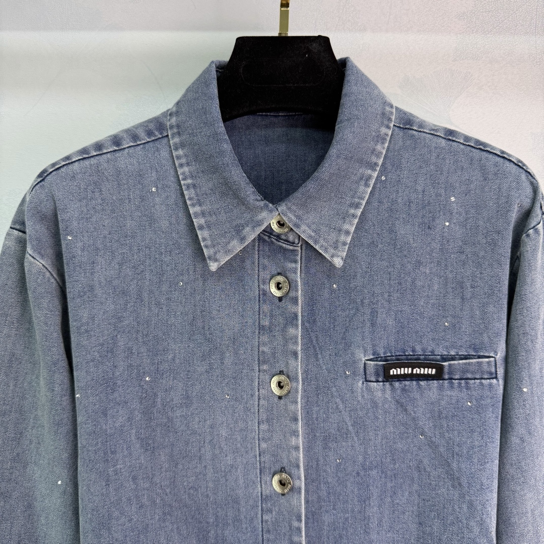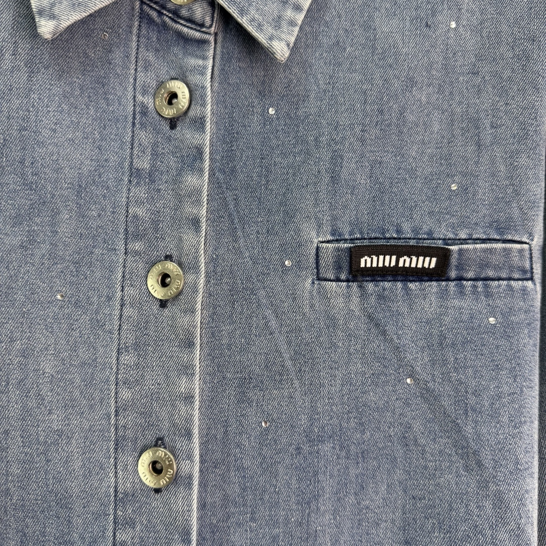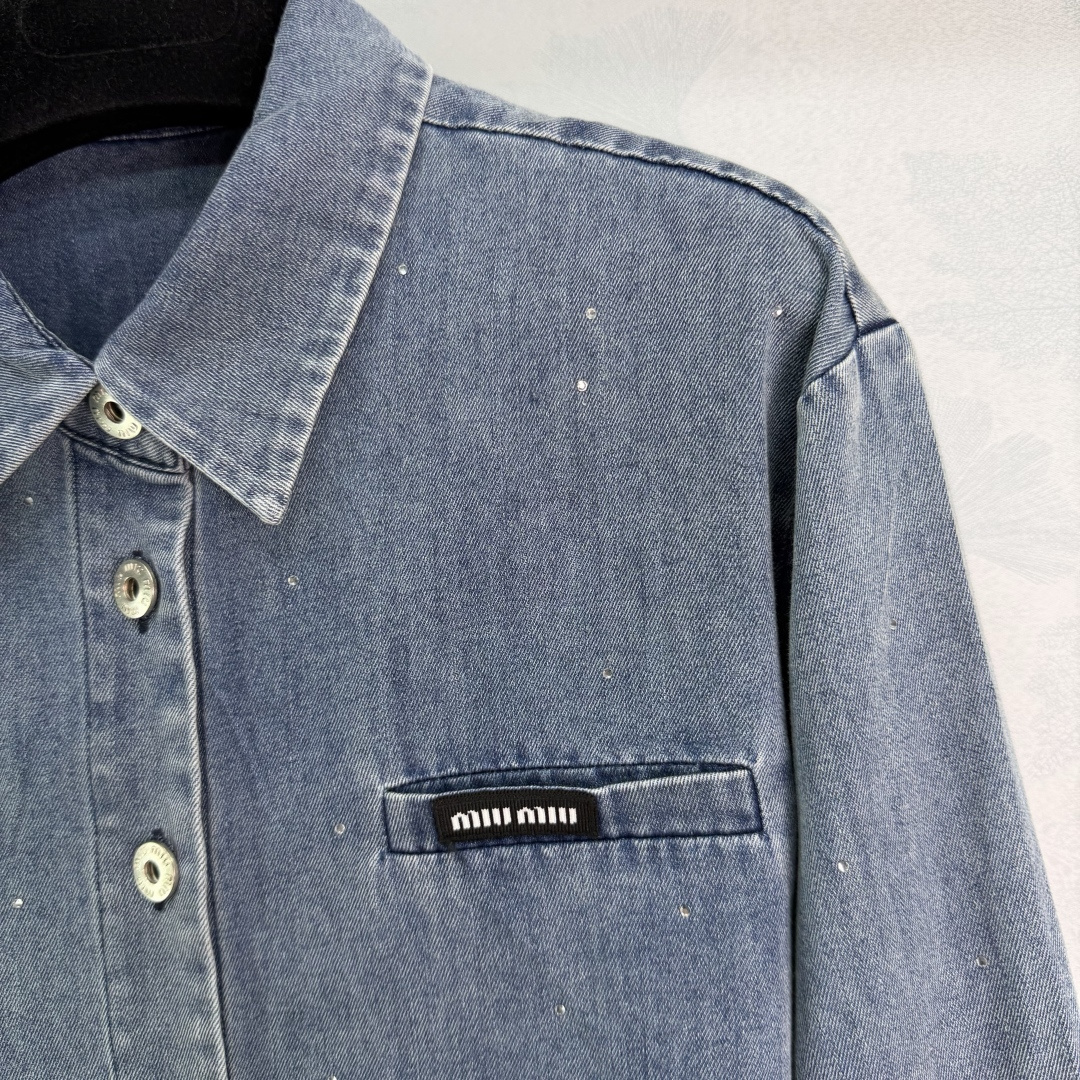 这款衣服是AAAAA 1:1 质量 (非常棒). 使用了和原版一模一样的材料. 商标部分也保持了和缪缪/Miu Miu一样. 图片拍摄是实物衣服拍摄, 您所收到的实物保证和我们图片一模一样.