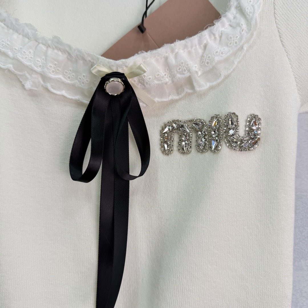 这款衣服是AAAAA 1:1 质量 (非常棒). 使用了和原版一模一样的材料. 商标部分也保持了和缪缪/Miu Miu一样. 图片拍摄是实物衣服拍摄, 您所收到的实物保证和我们图片一模一样.