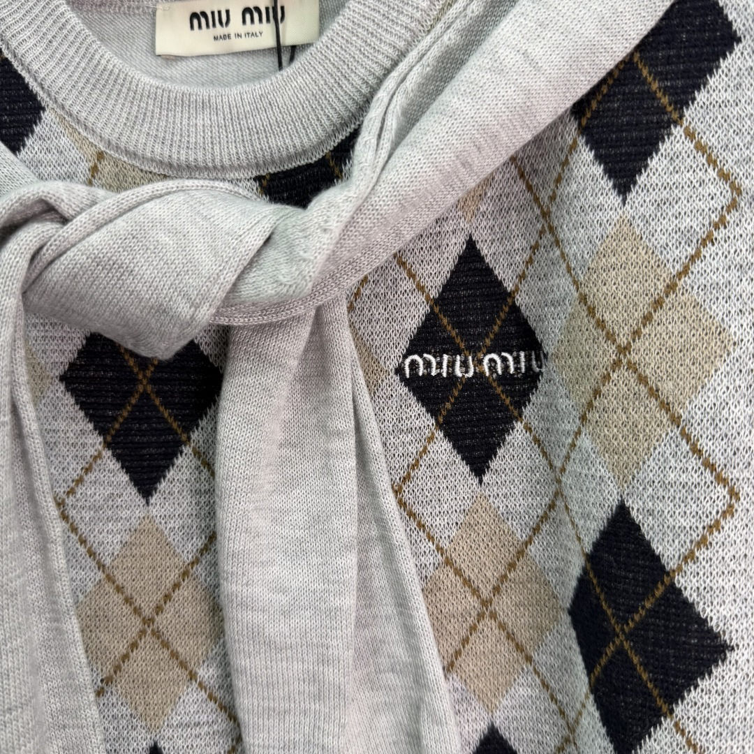 这款衣服是AAAAA 1:1 质量 (非常棒). 使用了和原版一模一样的材料. 商标部分也保持了和缪缪/Miu Miu一样. 图片拍摄是实物衣服拍摄, 您所收到的实物保证和我们图片一模一样.