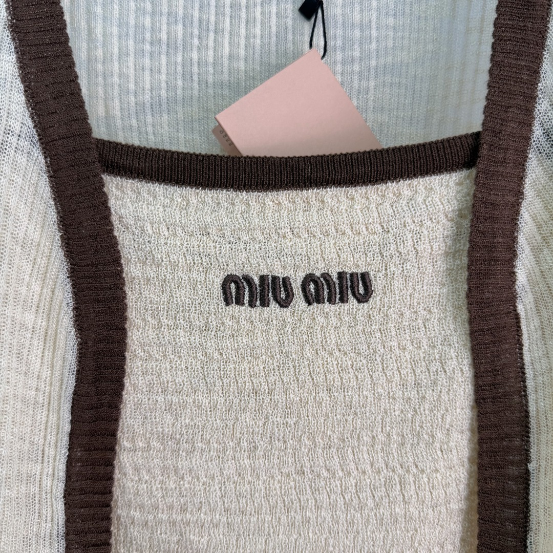 这款衣服是AAAAA 1:1 质量 (非常棒). 使用了和原版一模一样的材料. 商标部分也保持了和缪缪/Miu Miu一样. 图片拍摄是实物衣服拍摄, 您所收到的实物保证和我们图片一模一样.