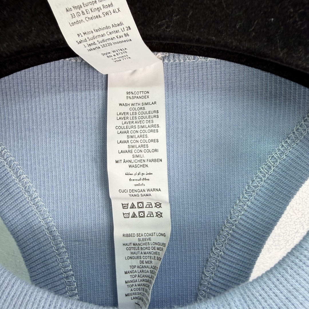 这款衣服是AAAAA 1:1 质量 (非常棒). 使用了和原版一模一样的材料. 商标部分也保持了和Alo Yoga一样. 图片拍摄是实物衣服拍摄, 您所收到的实物保证和我们图片一模一样.