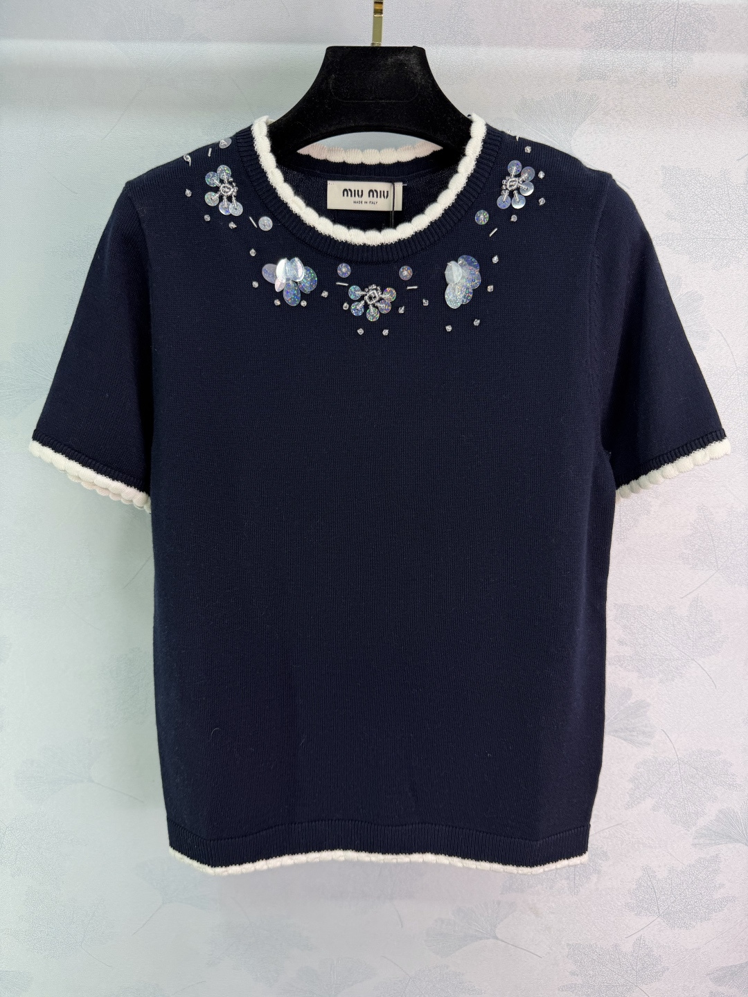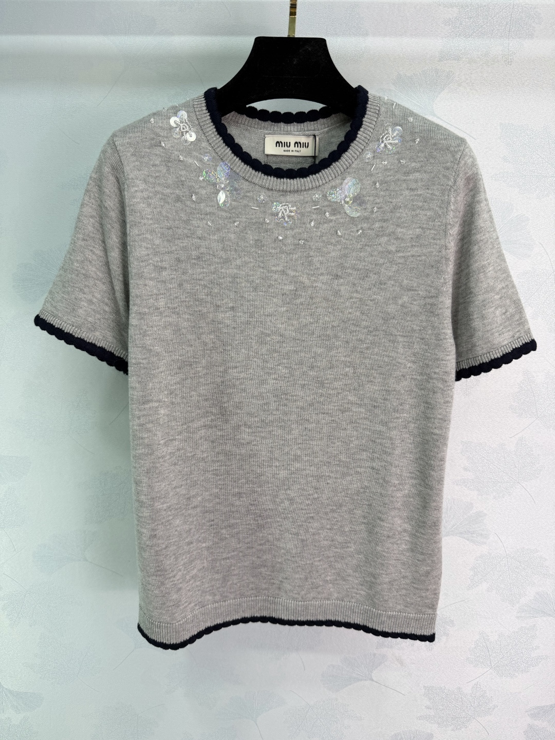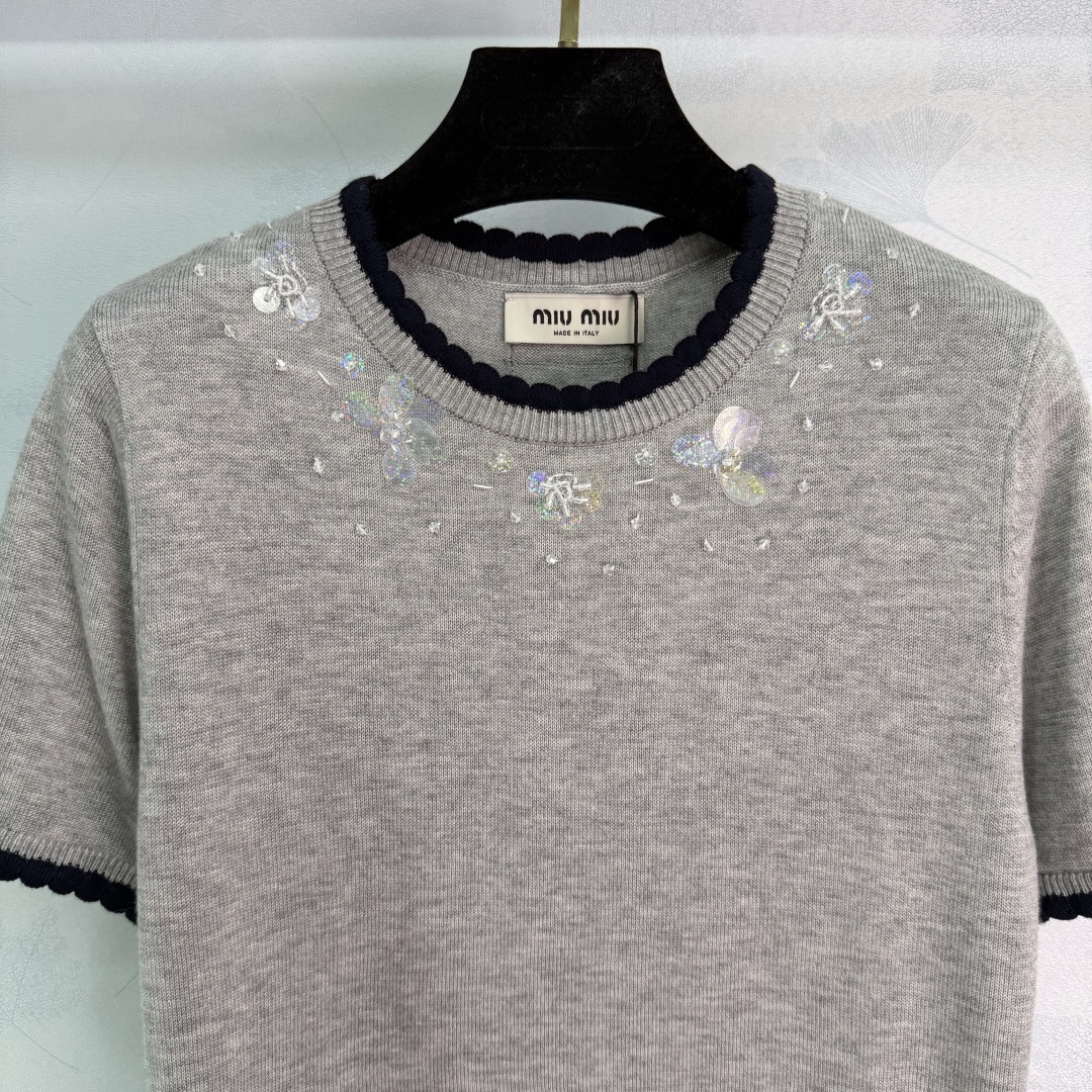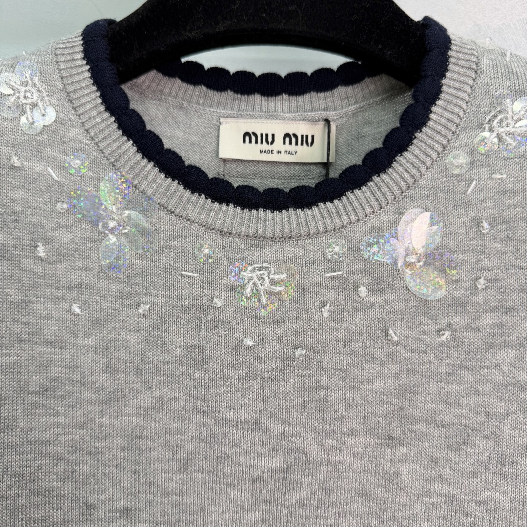 这款衣服是AAAAA 1:1 质量 (非常棒). 使用了和原版一模一样的材料. 商标部分也保持了和缪缪/Miu Miu一样. 图片拍摄是实物衣服拍摄, 您所收到的实物保证和我们图片一模一样.