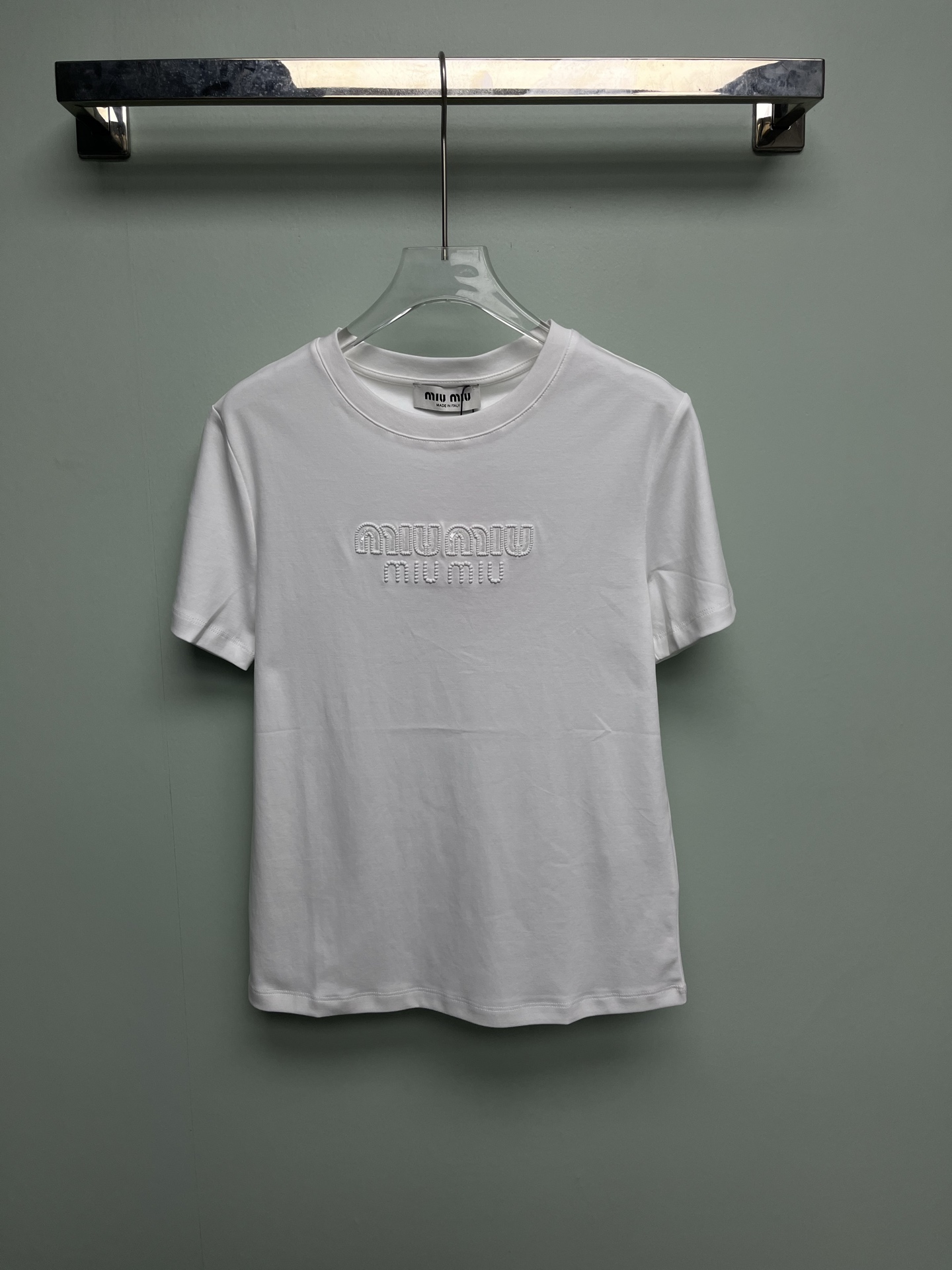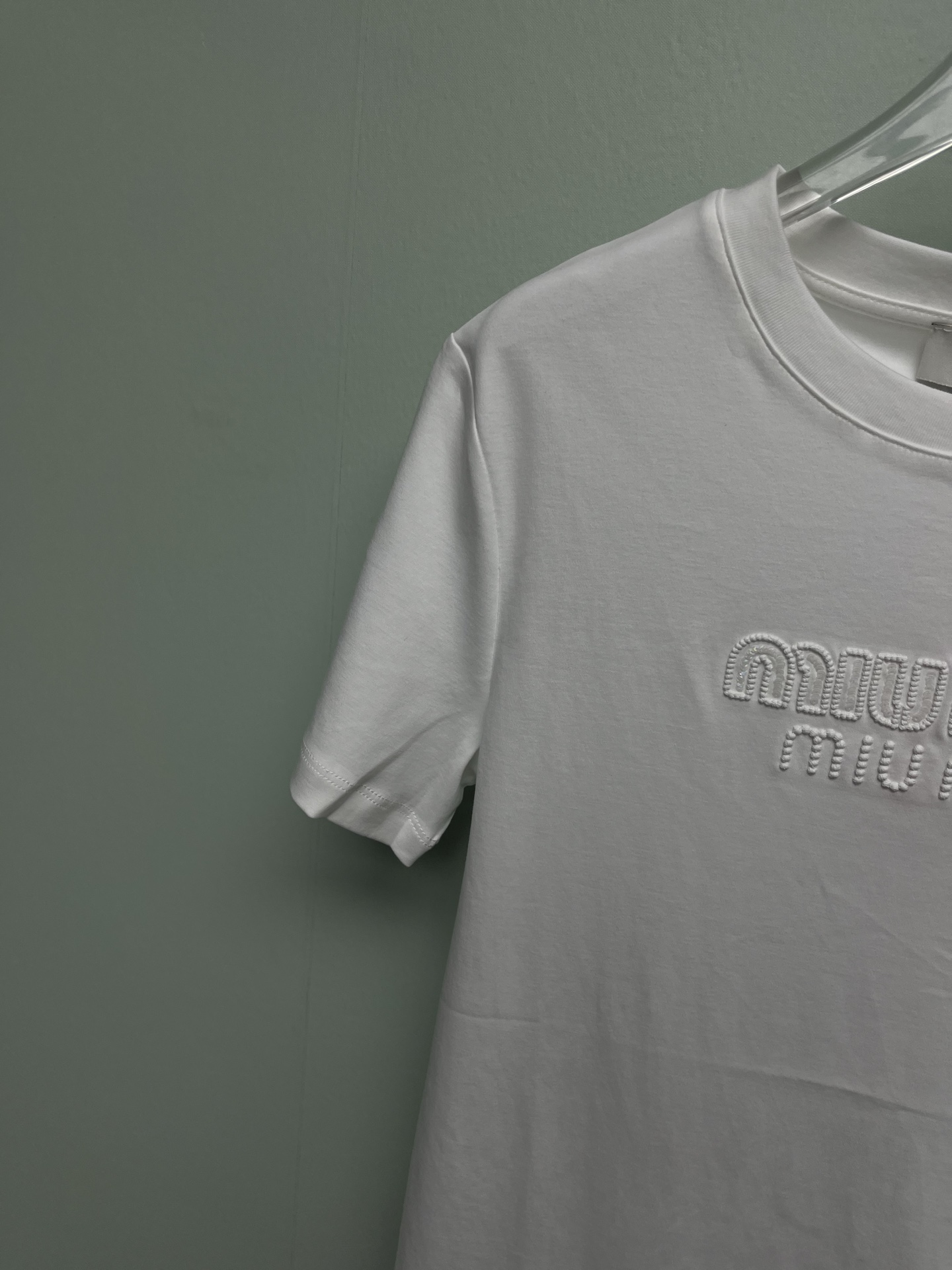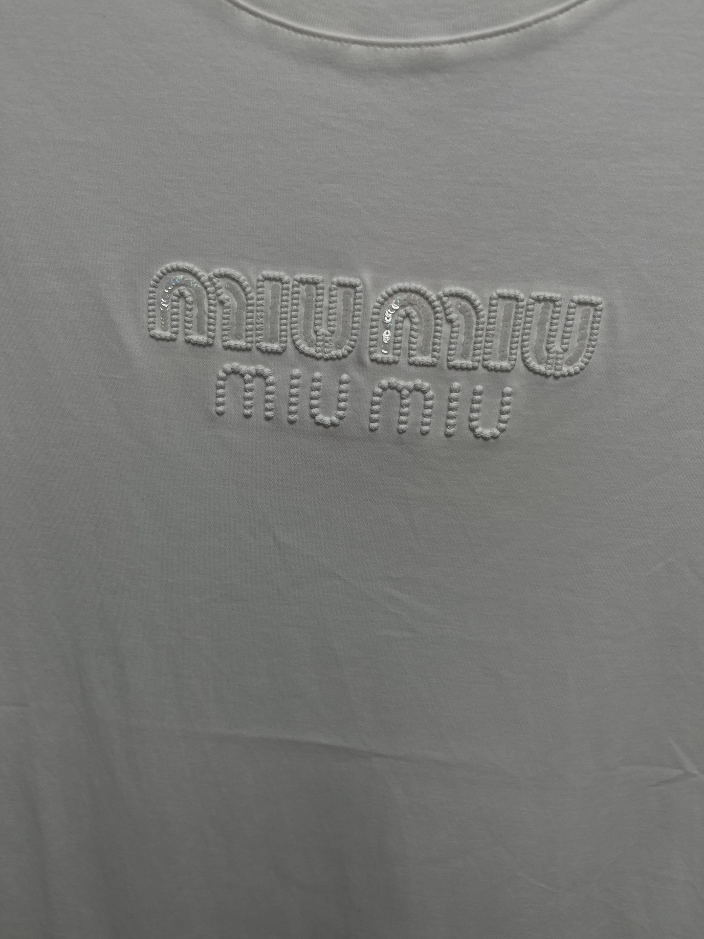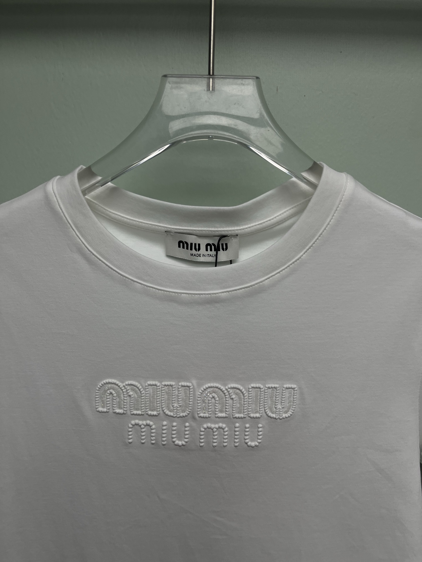 这款衣服是AAAAA 1:1 质量 (非常棒). 使用了和原版一模一样的材料. 商标部分也保持了和缪缪/Miu Miu一样. 图片拍摄是实物衣服拍摄, 您所收到的实物保证和我们图片一模一样.