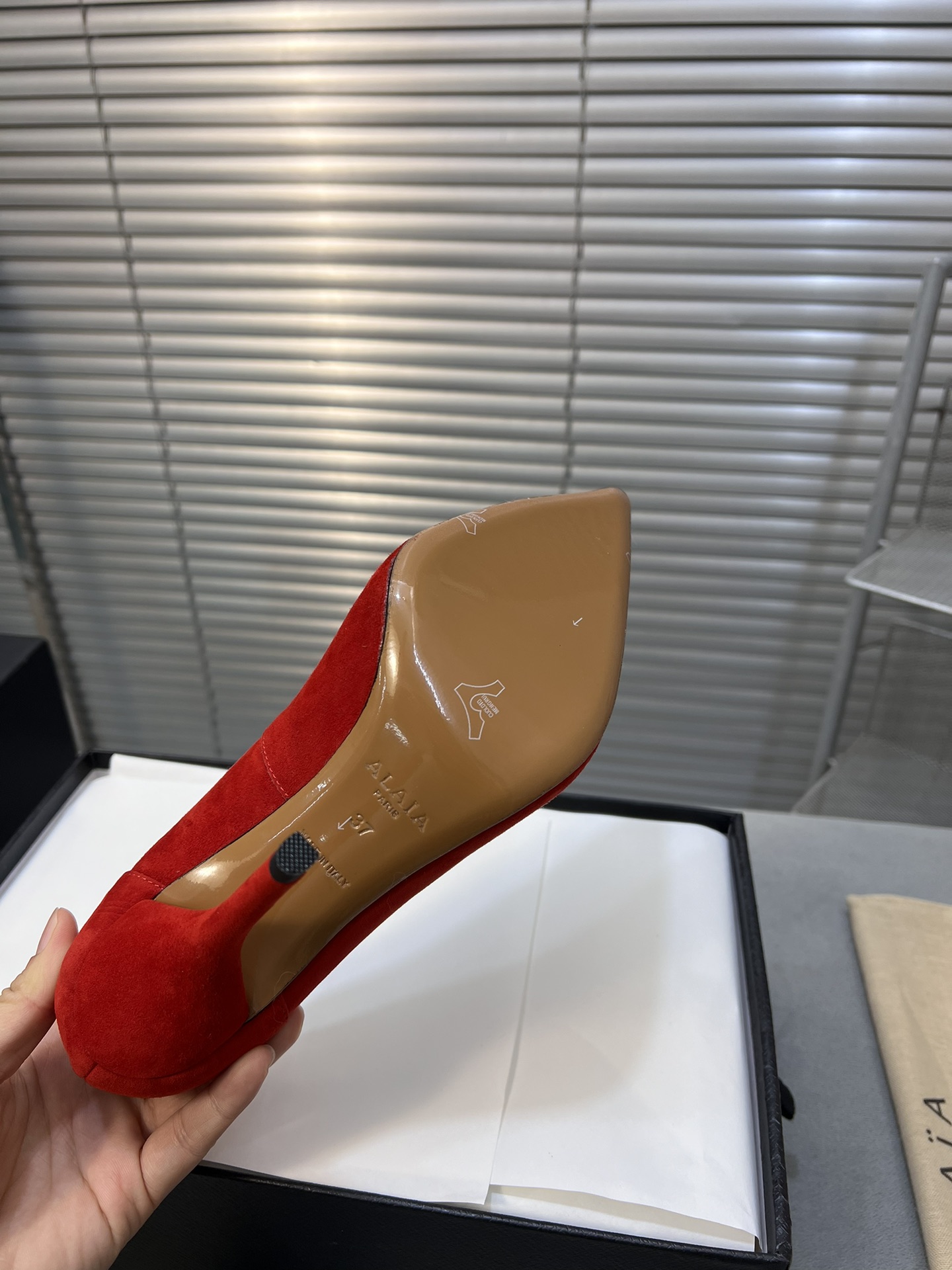 这款鞋子是AAAAA 1:1 质量 (非常棒). 使用了和原版一模一样的材料. 商标部分也保持了和Alaia一样. 图片拍摄是实物鞋子拍摄, 您所收到的实物保证和我们图片一模一样.