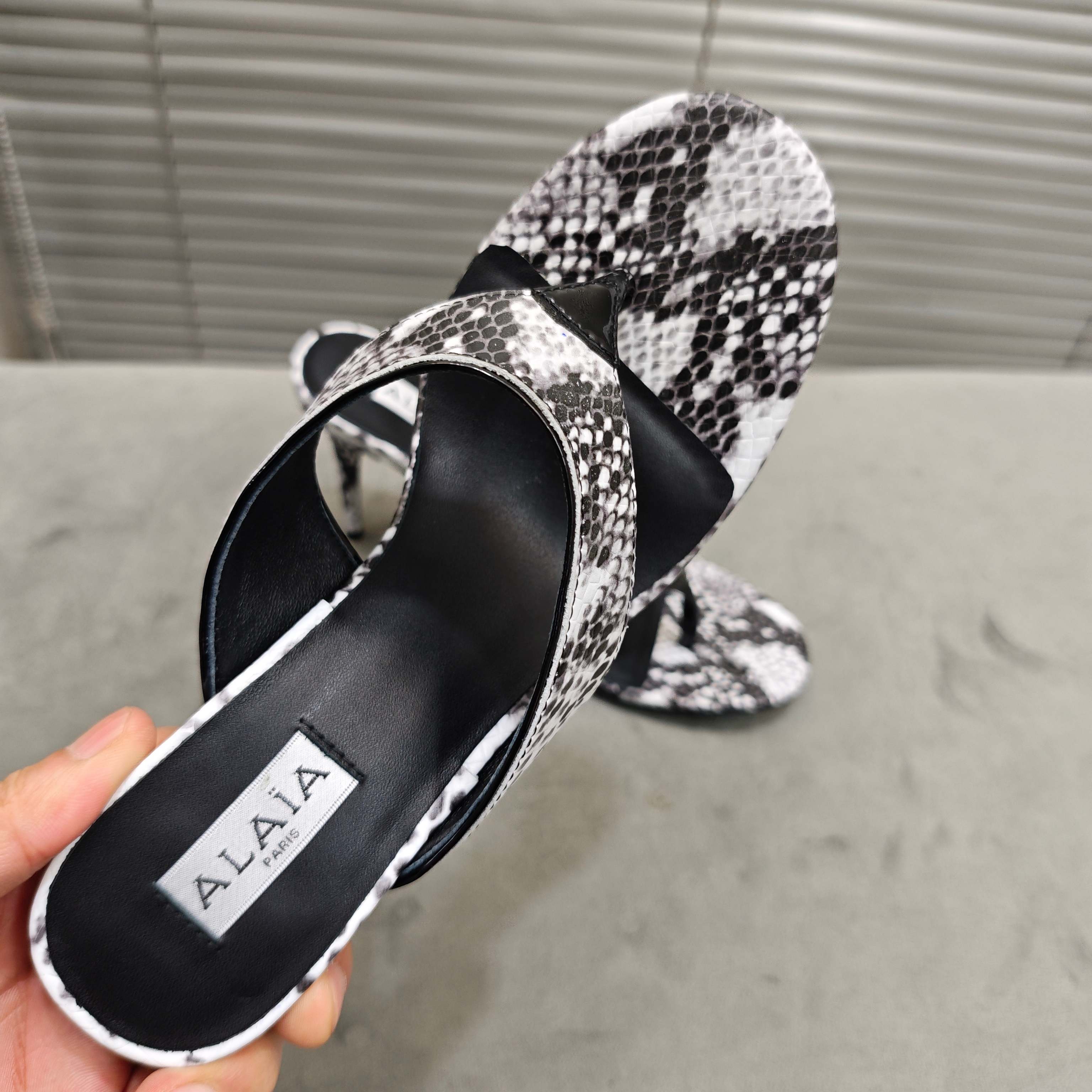 这款鞋子是AAAAA 1:1 质量 (非常棒). 使用了和原版一模一样的材料. 商标部分也保持了和Alaia一样. 图片拍摄是实物鞋子拍摄, 您所收到的实物保证和我们图片一模一样.