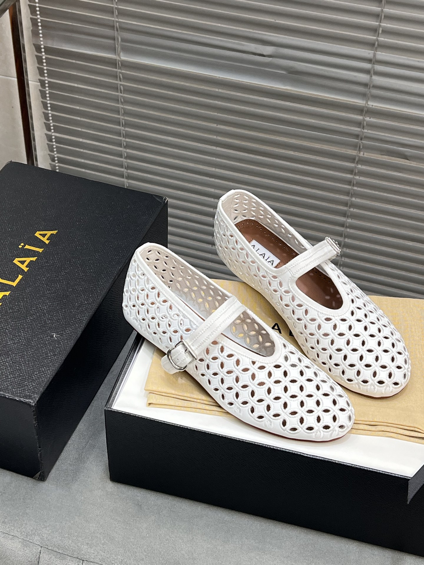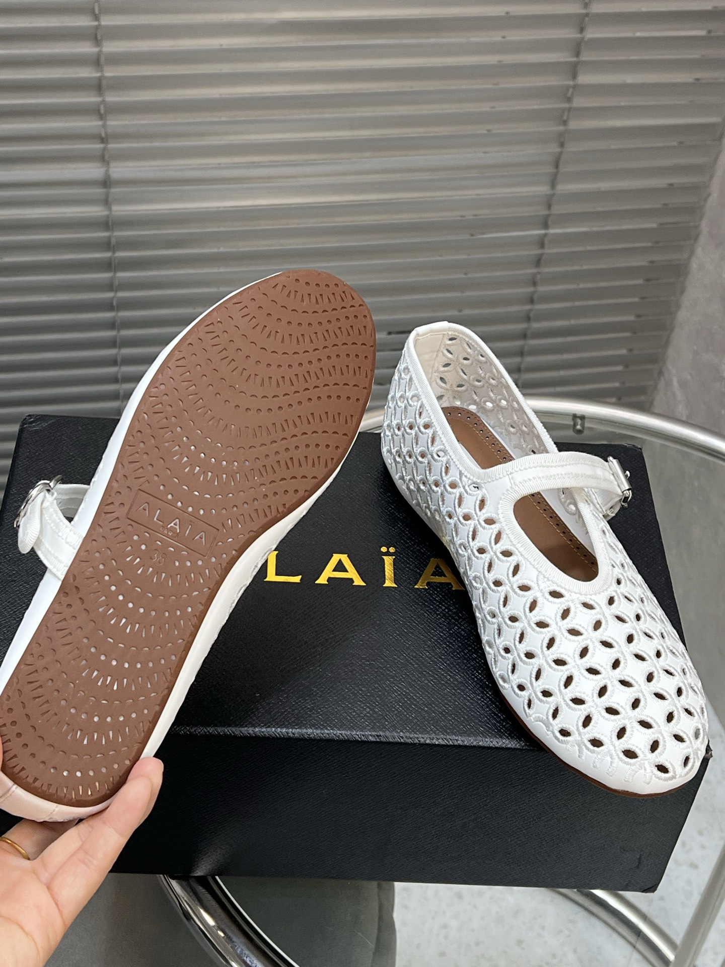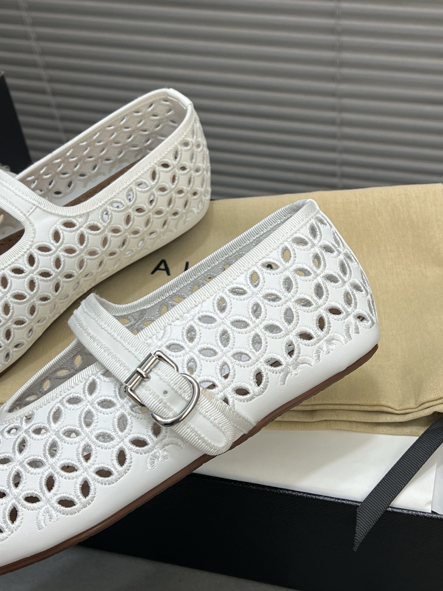 这款鞋子是AAAAA 1:1 质量 (非常棒). 使用了和原版一模一样的材料. 商标部分也保持了和Alaia一样. 图片拍摄是实物鞋子拍摄, 您所收到的实物保证和我们图片一模一样.