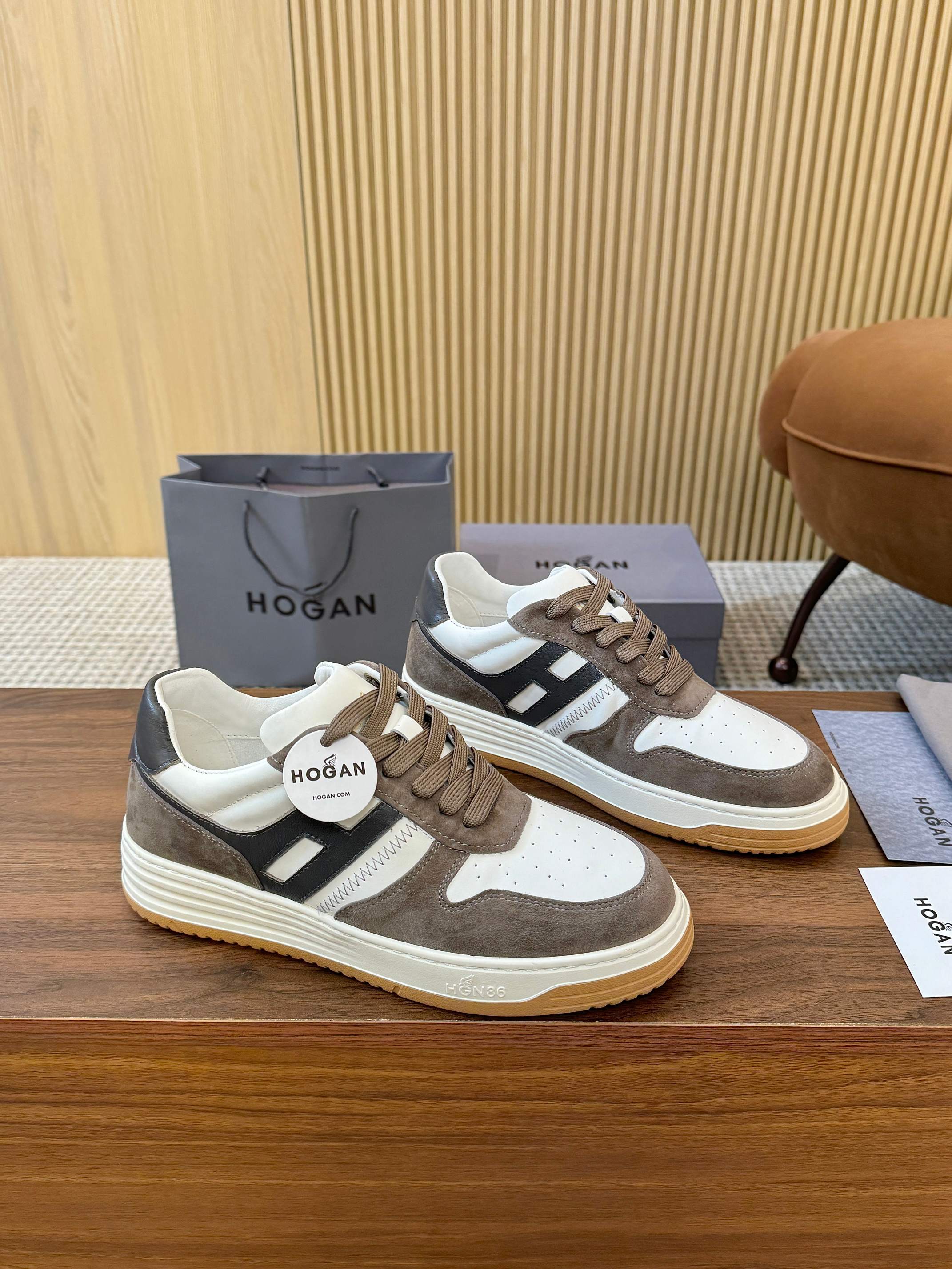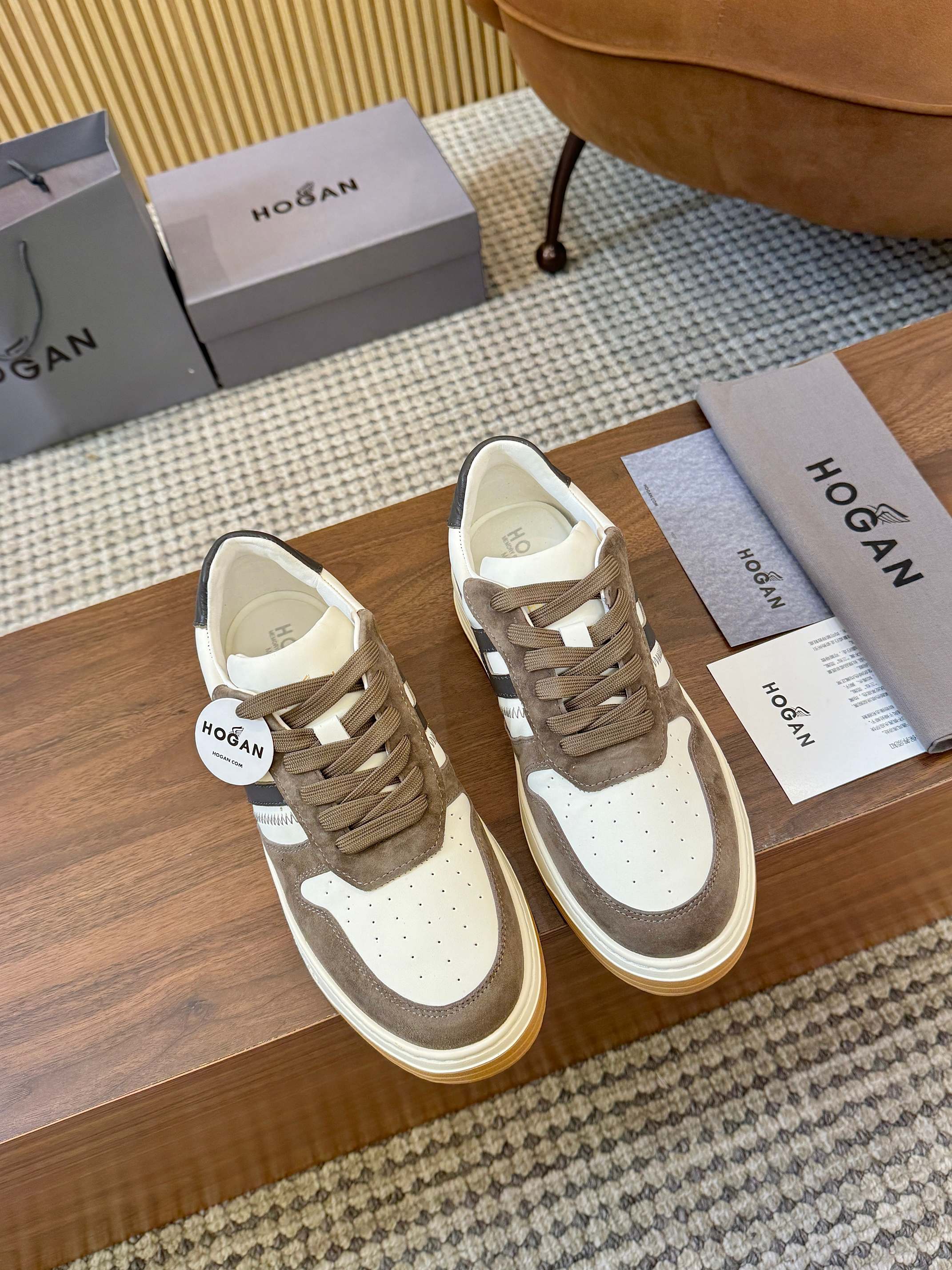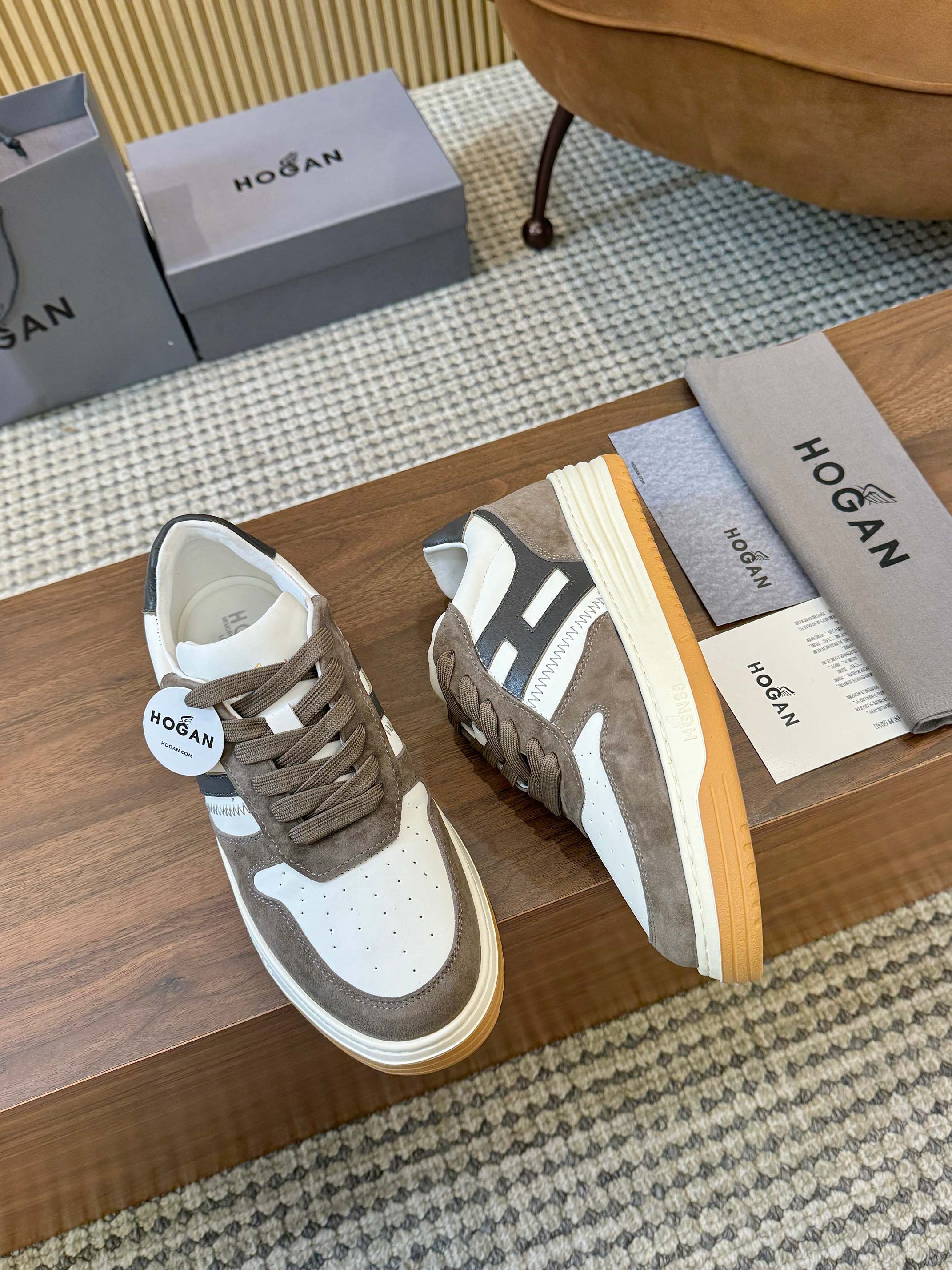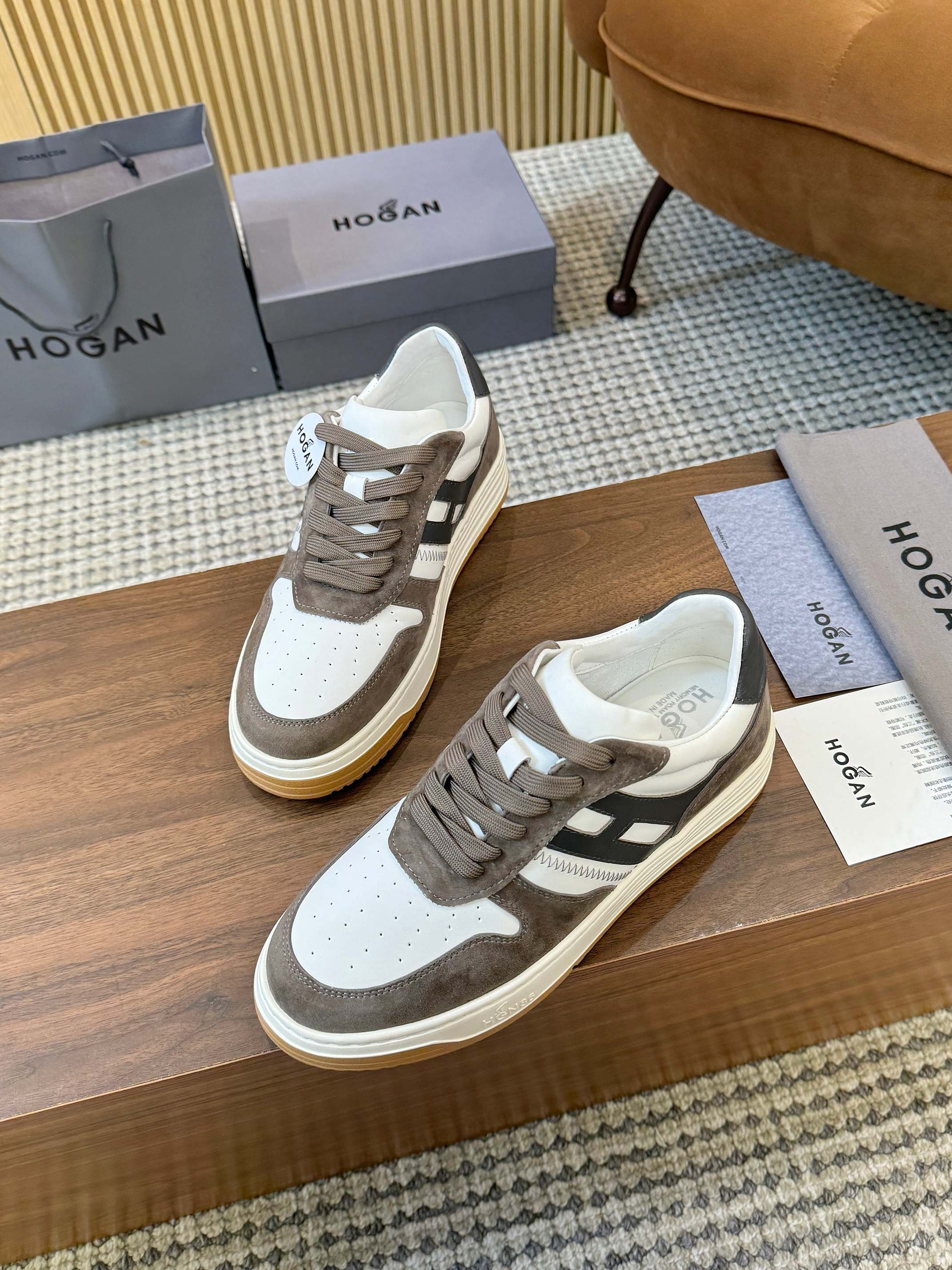 这款鞋子是AAAAA 1:1 质量 (非常棒). 使用了和原版一模一样的材料. 商标部分也保持了和Hogan一样. 图片拍摄是实物鞋子拍摄, 您所收到的实物保证和我们图片一模一样.