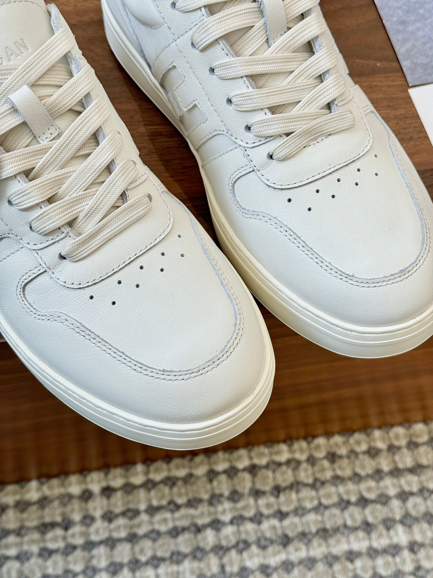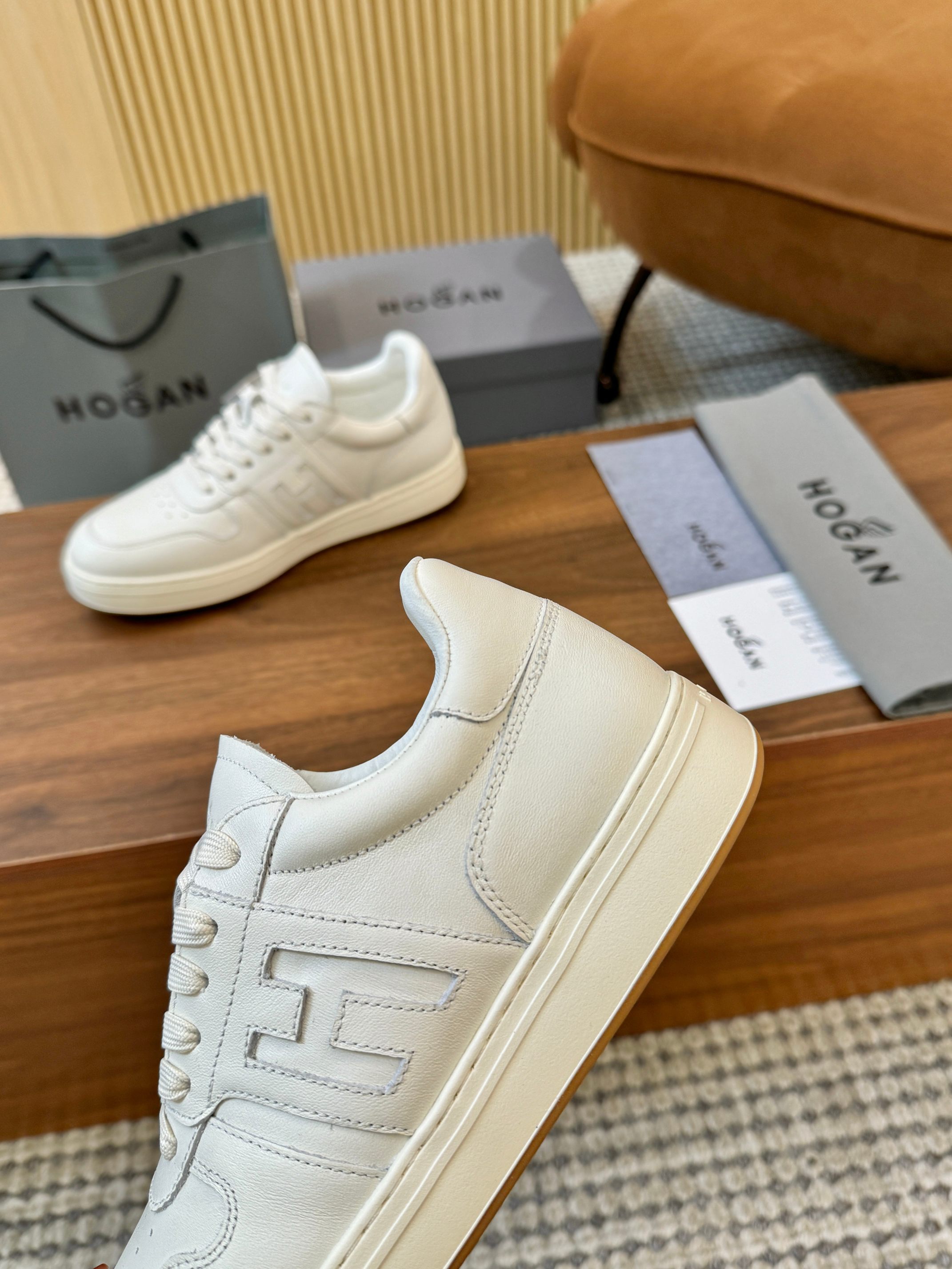 这款鞋子是AAAAA 1:1 质量 (非常棒). 使用了和原版一模一样的材料. 商标部分也保持了和Hogan一样. 图片拍摄是实物鞋子拍摄, 您所收到的实物保证和我们图片一模一样.