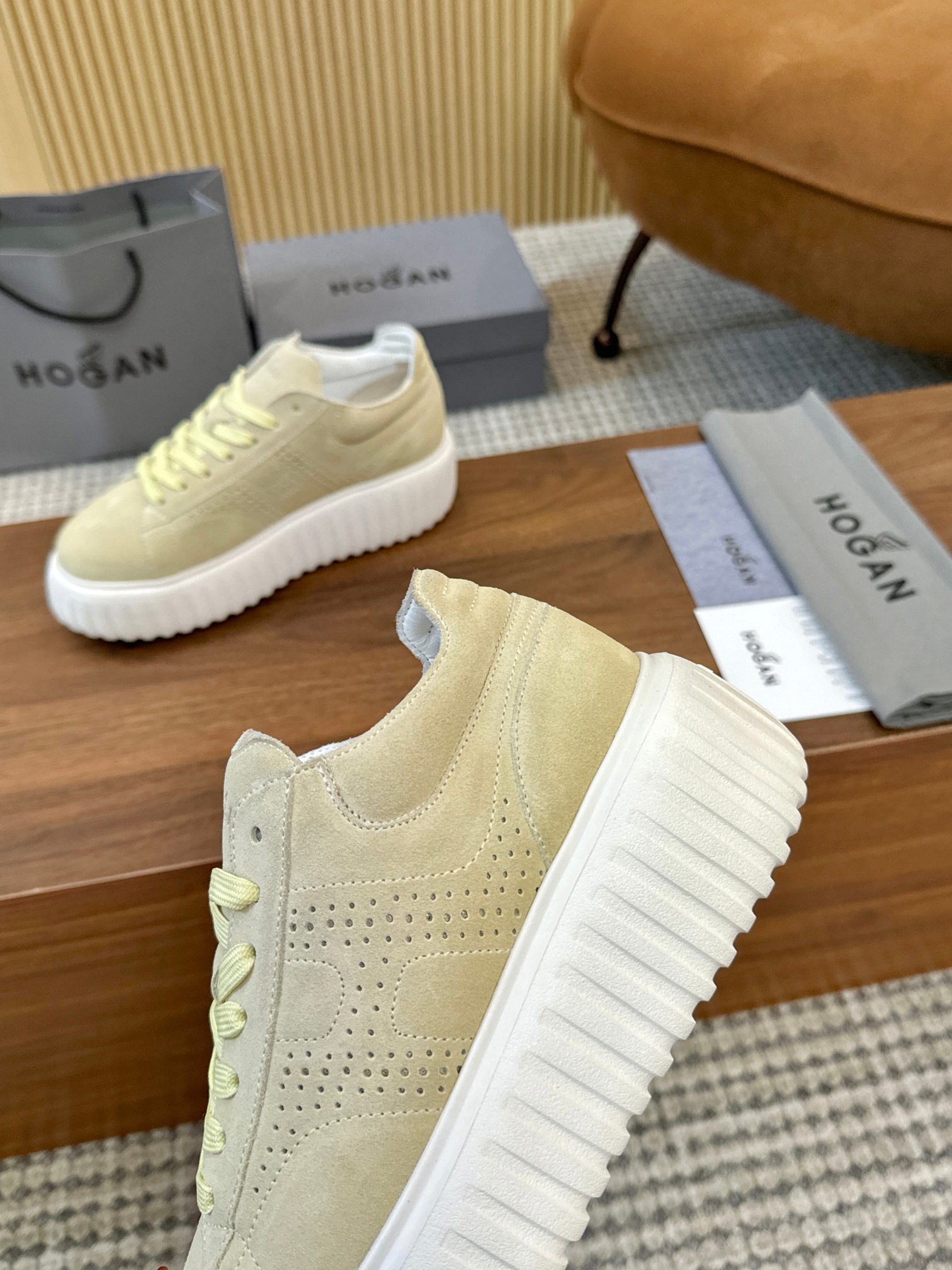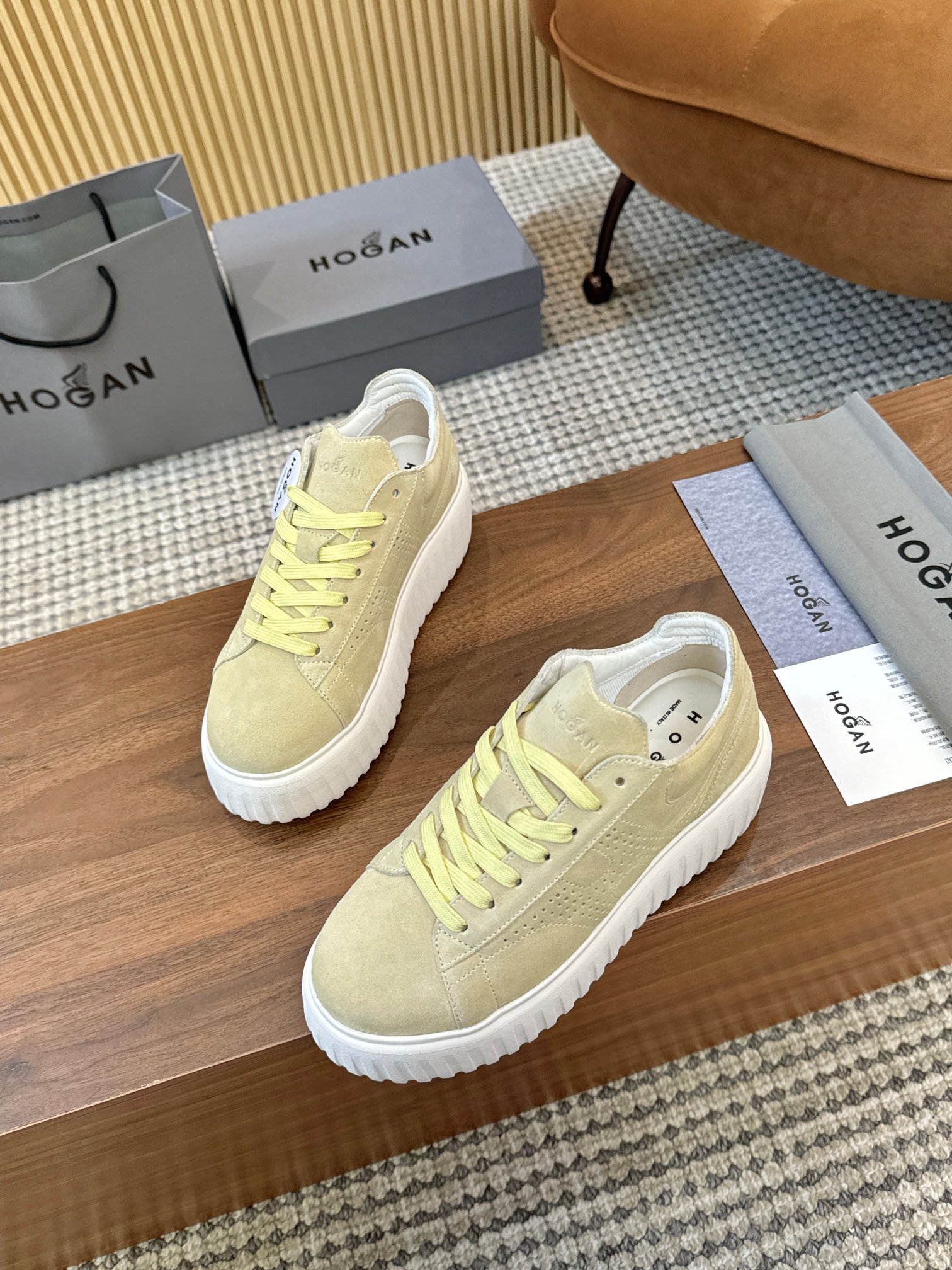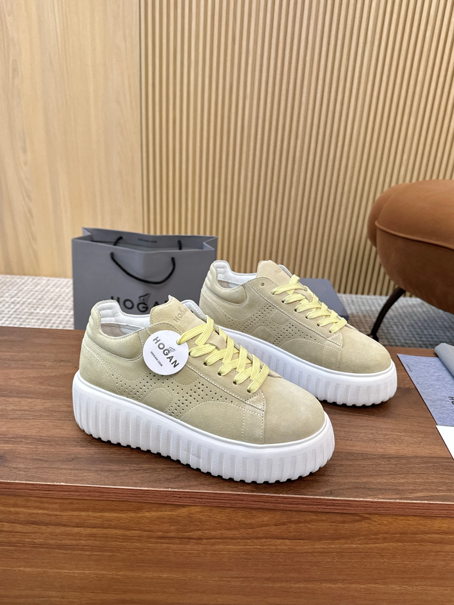 这款鞋子是AAAAA 1:1 质量 (非常棒). 使用了和原版一模一样的材料. 商标部分也保持了和Hogan一样. 图片拍摄是实物鞋子拍摄, 您所收到的实物保证和我们图片一模一样.