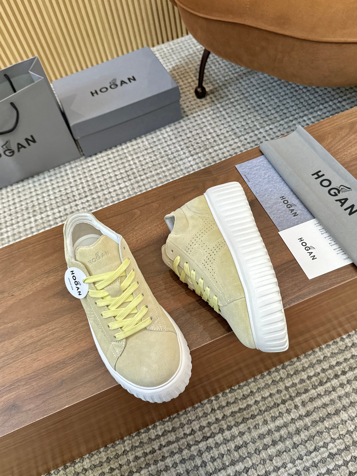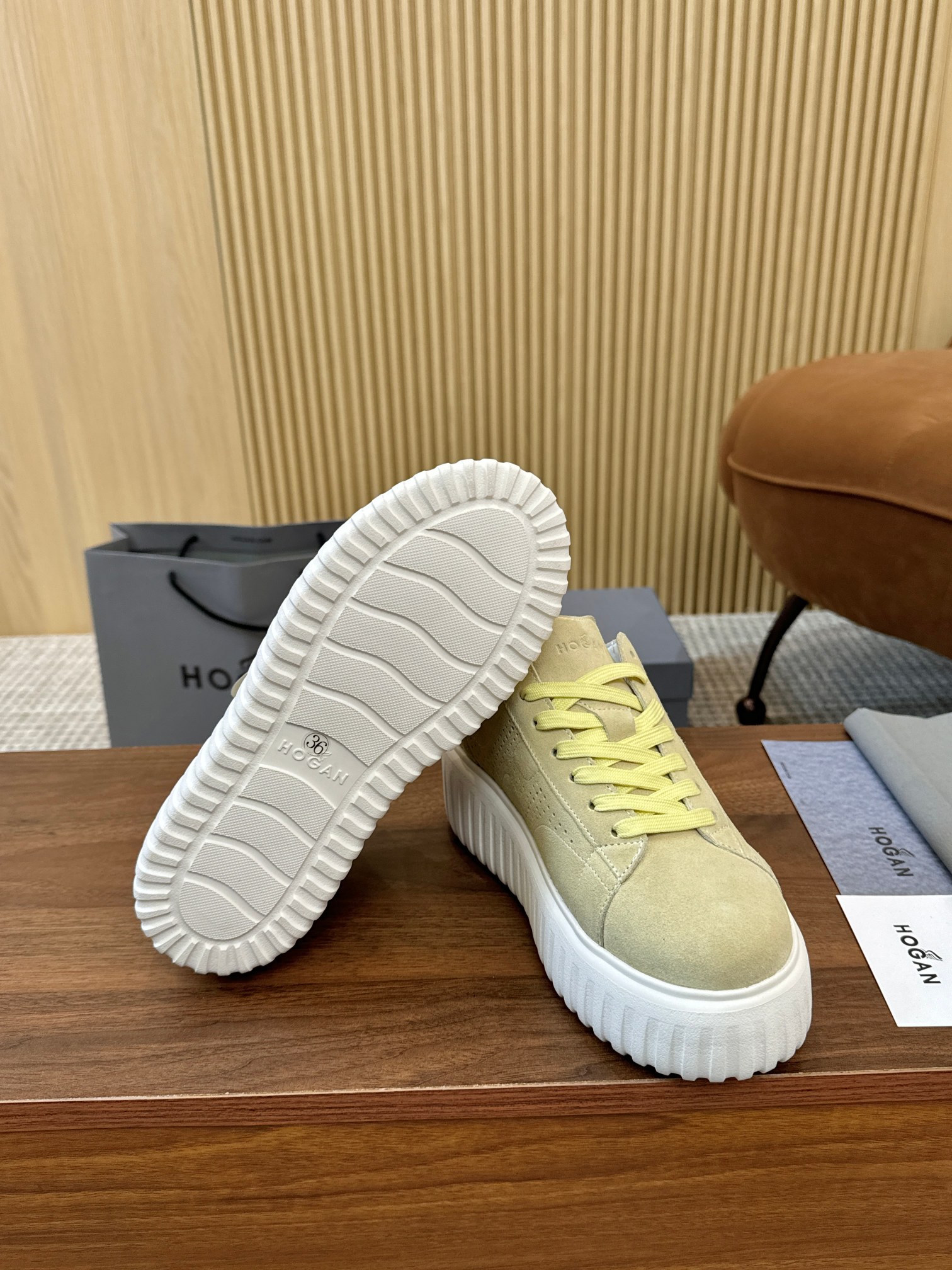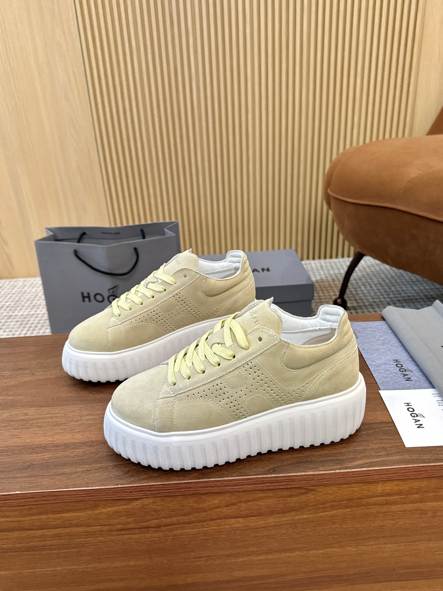 这款鞋子是AAAAA 1:1 质量 (非常棒). 使用了和原版一模一样的材料. 商标部分也保持了和Hogan一样. 图片拍摄是实物鞋子拍摄, 您所收到的实物保证和我们图片一模一样.