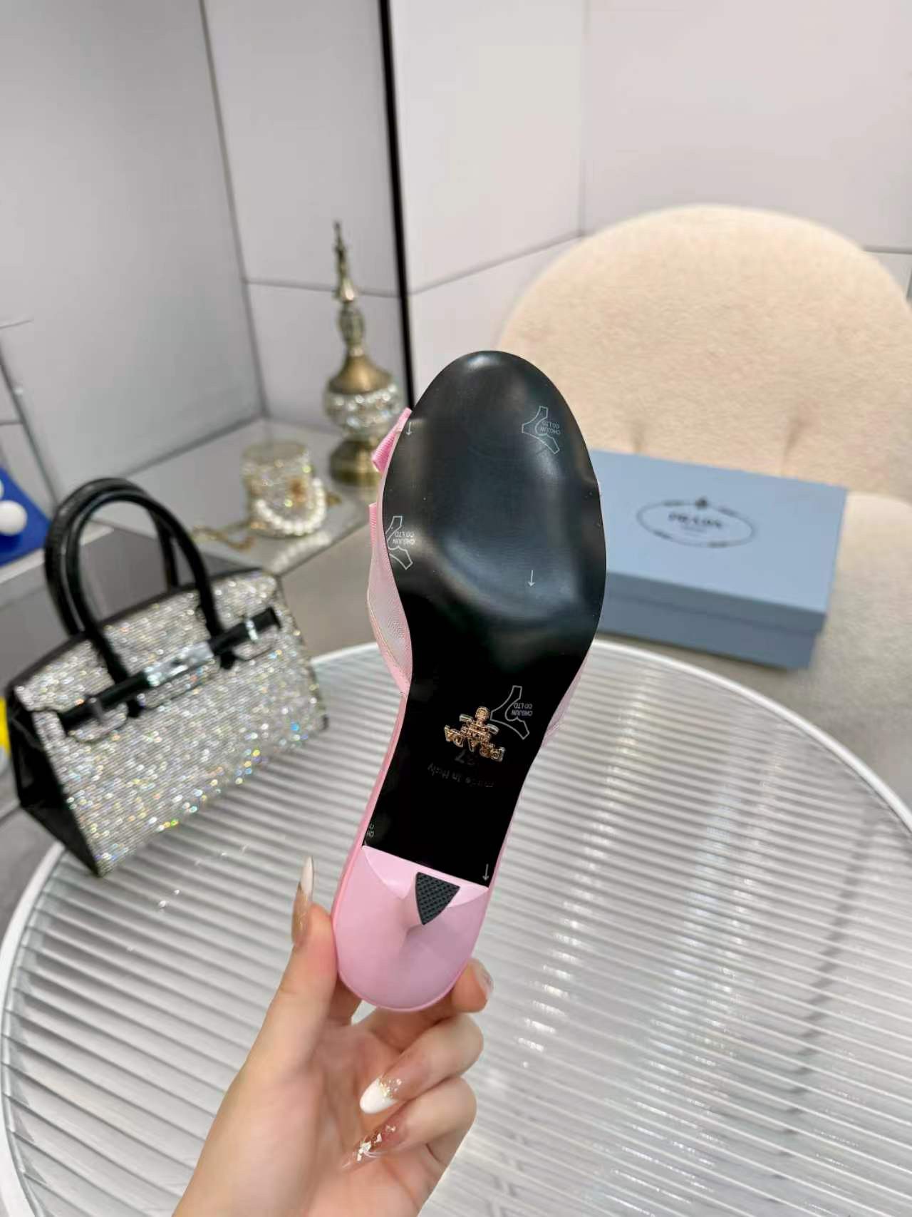 这款鞋子是AAAAA 1:1 质量 (非常棒). 使用了和原版一模一样的材料. 商标部分也保持了和普拉达/Prada一样. 图片拍摄是实物鞋子拍摄, 您所收到的实物保证和我们图片一模一样.