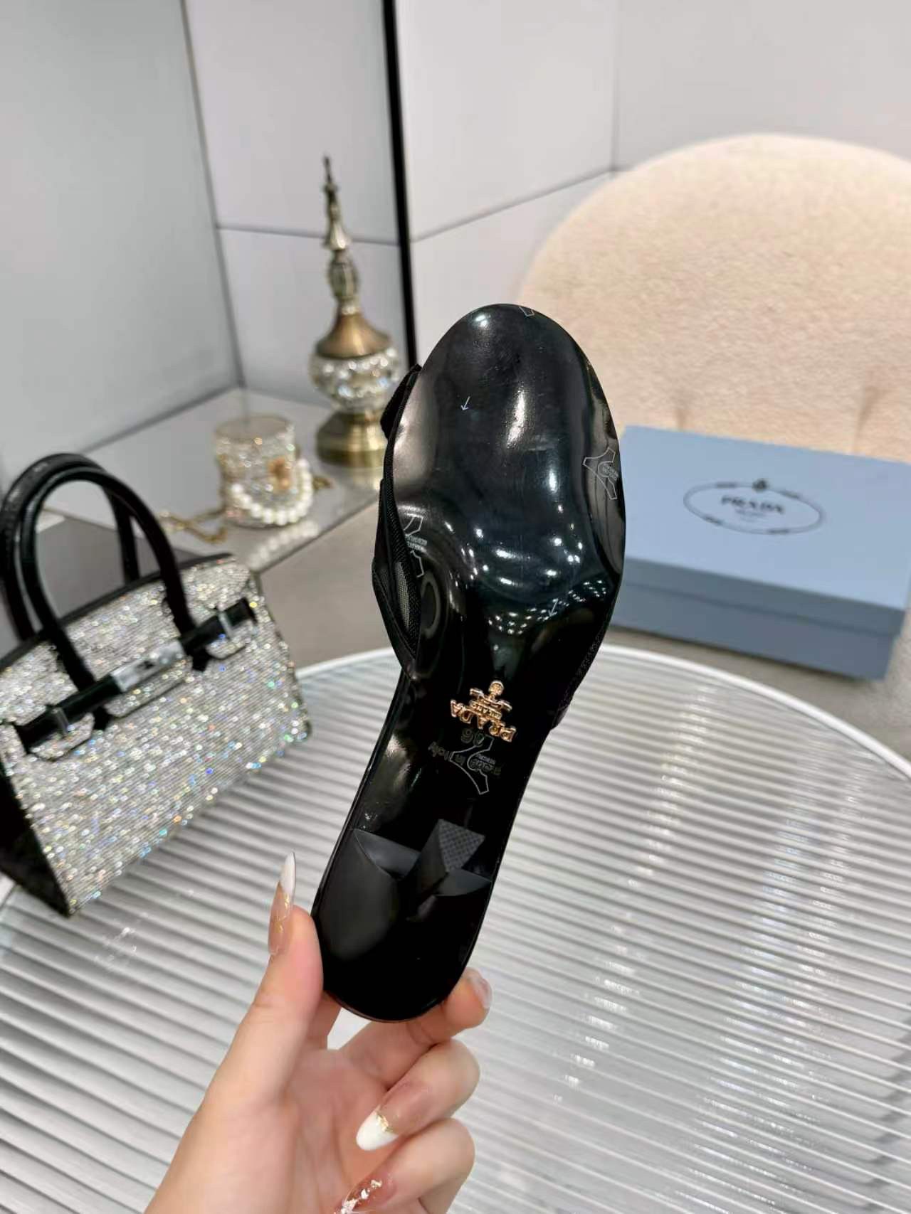 这款鞋子是AAAAA 1:1 质量 (非常棒). 使用了和原版一模一样的材料. 商标部分也保持了和普拉达/Prada一样. 图片拍摄是实物鞋子拍摄, 您所收到的实物保证和我们图片一模一样.