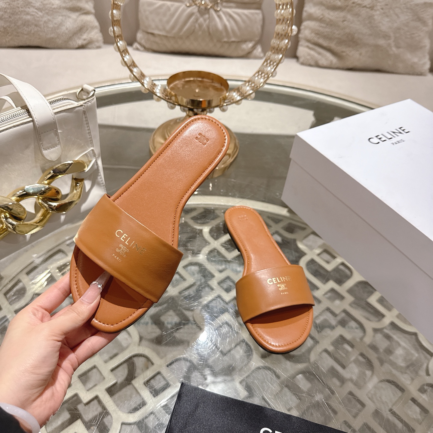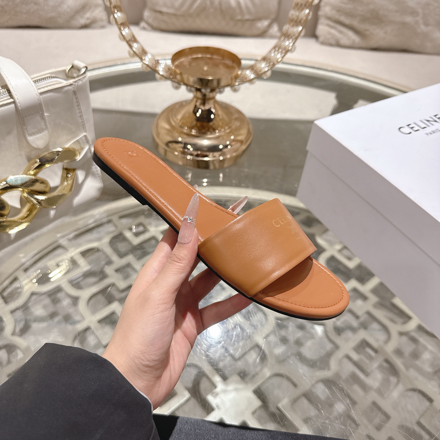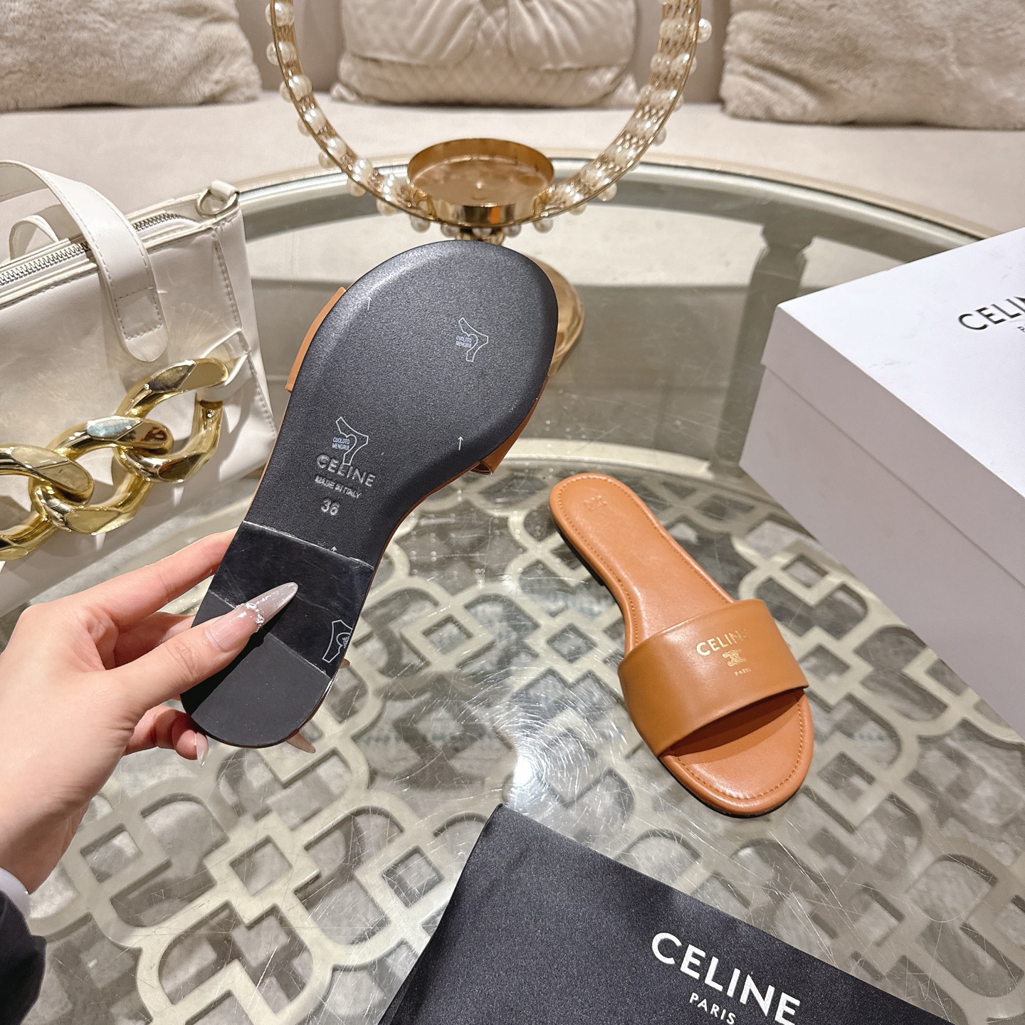 这款鞋子是AAAAA 1:1 质量 (非常棒). 使用了和原版一模一样的材料. 商标部分也保持了和思琳/Celine一样. 图片拍摄是实物鞋子拍摄, 您所收到的实物保证和我们图片一模一样.