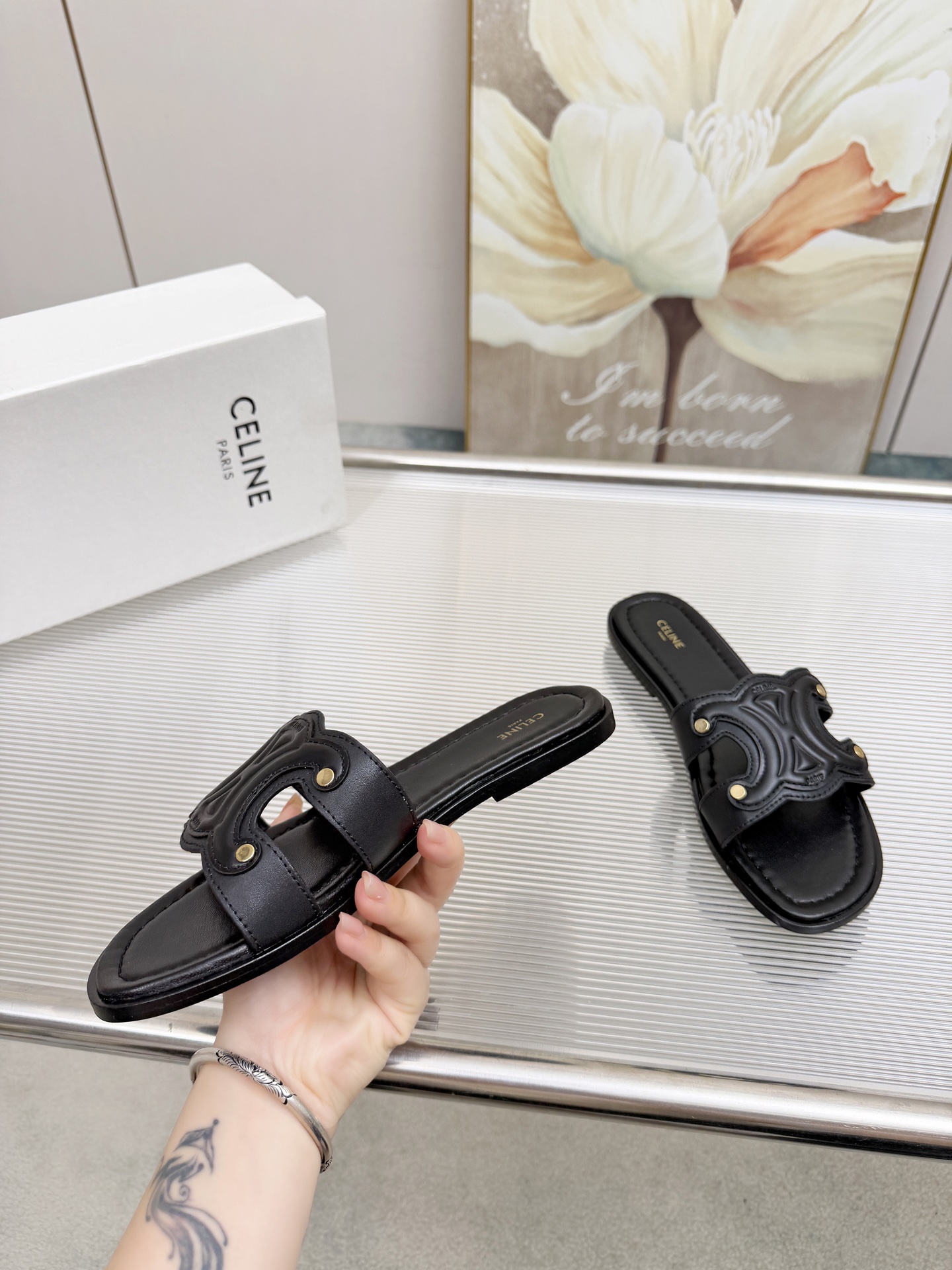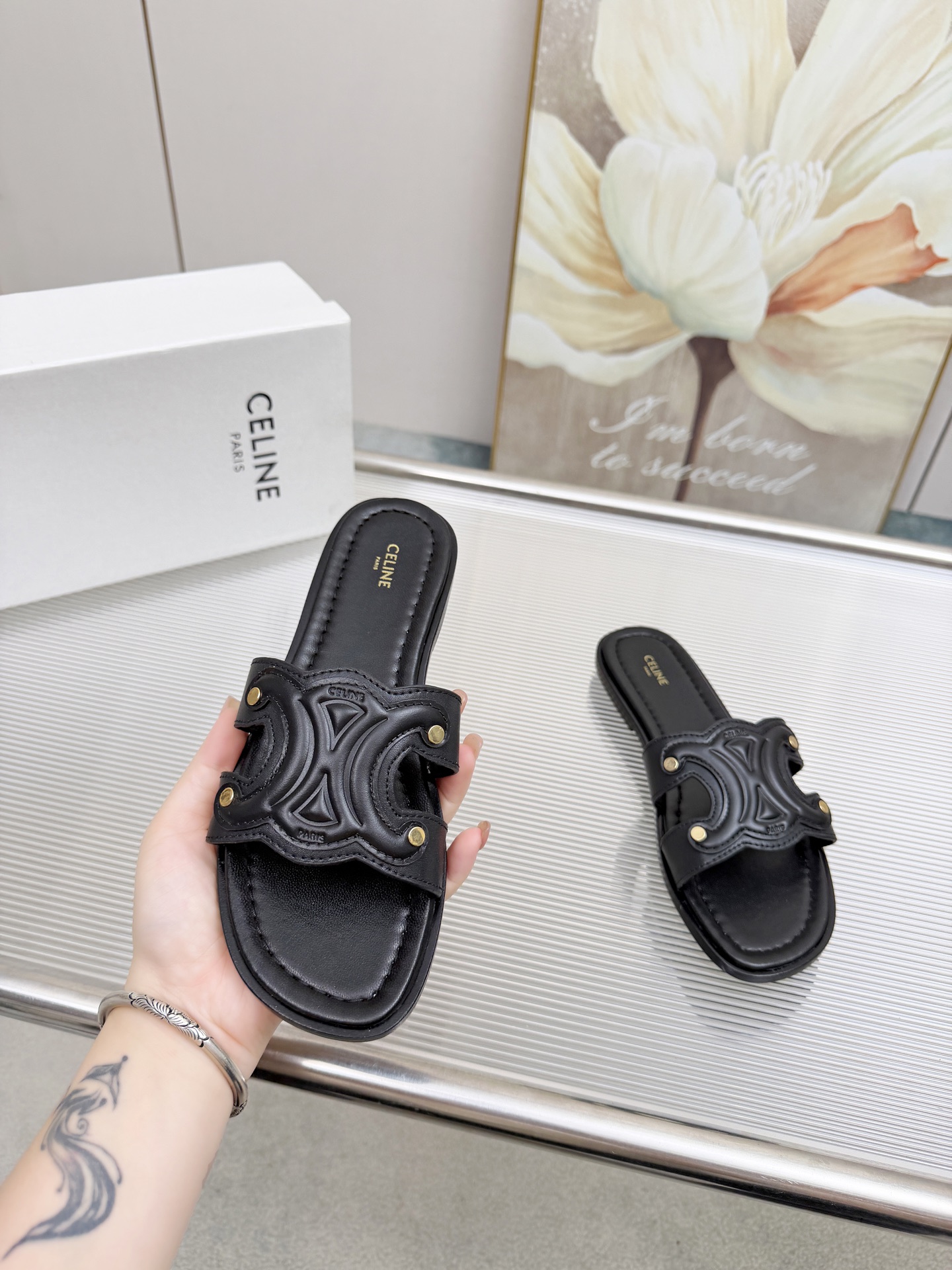 这款鞋子是AAAAA 1:1 质量 (非常棒). 使用了和原版一模一样的材料. 商标部分也保持了和思琳/Celine一样. 图片拍摄是实物鞋子拍摄, 您所收到的实物保证和我们图片一模一样.