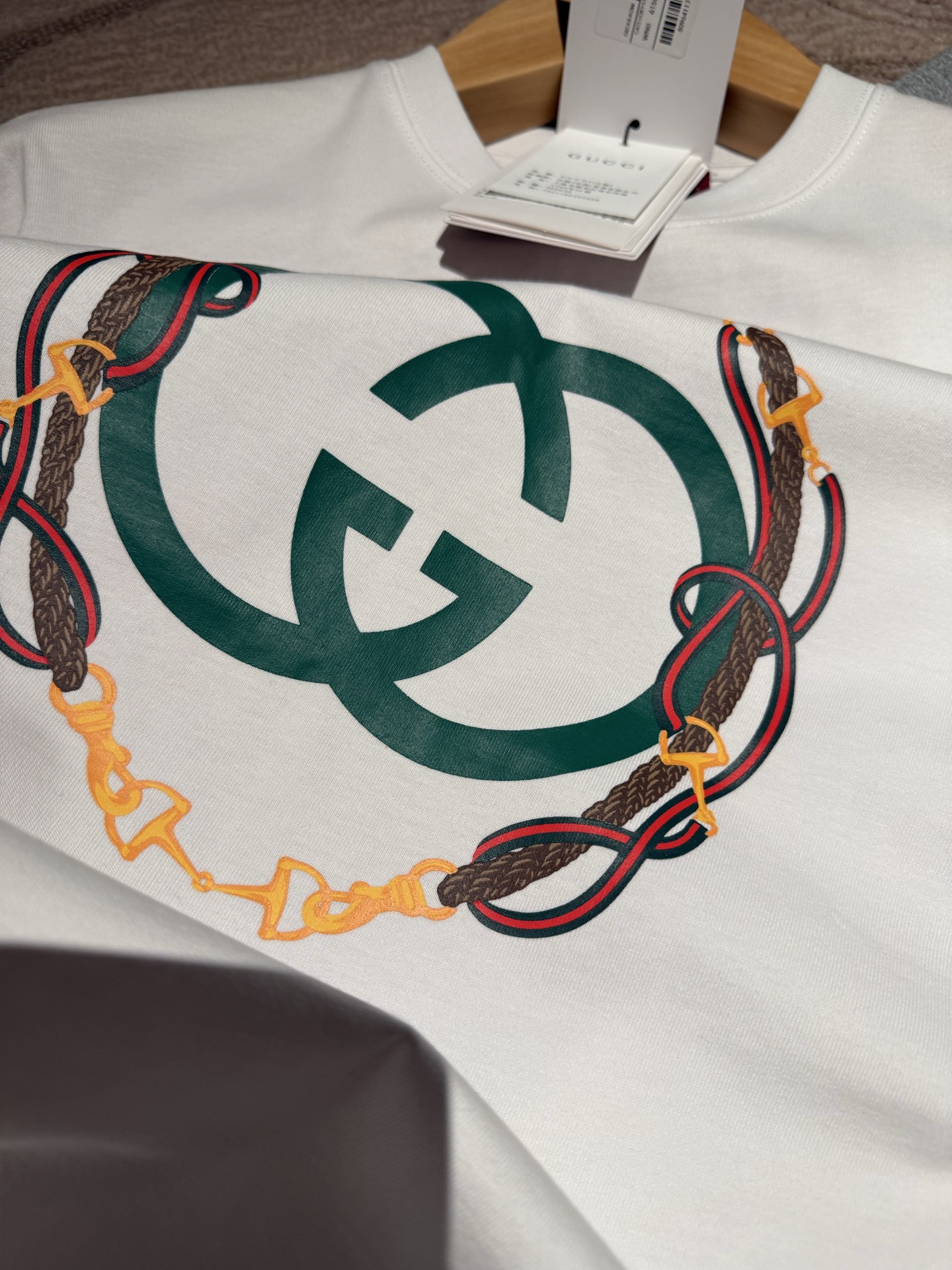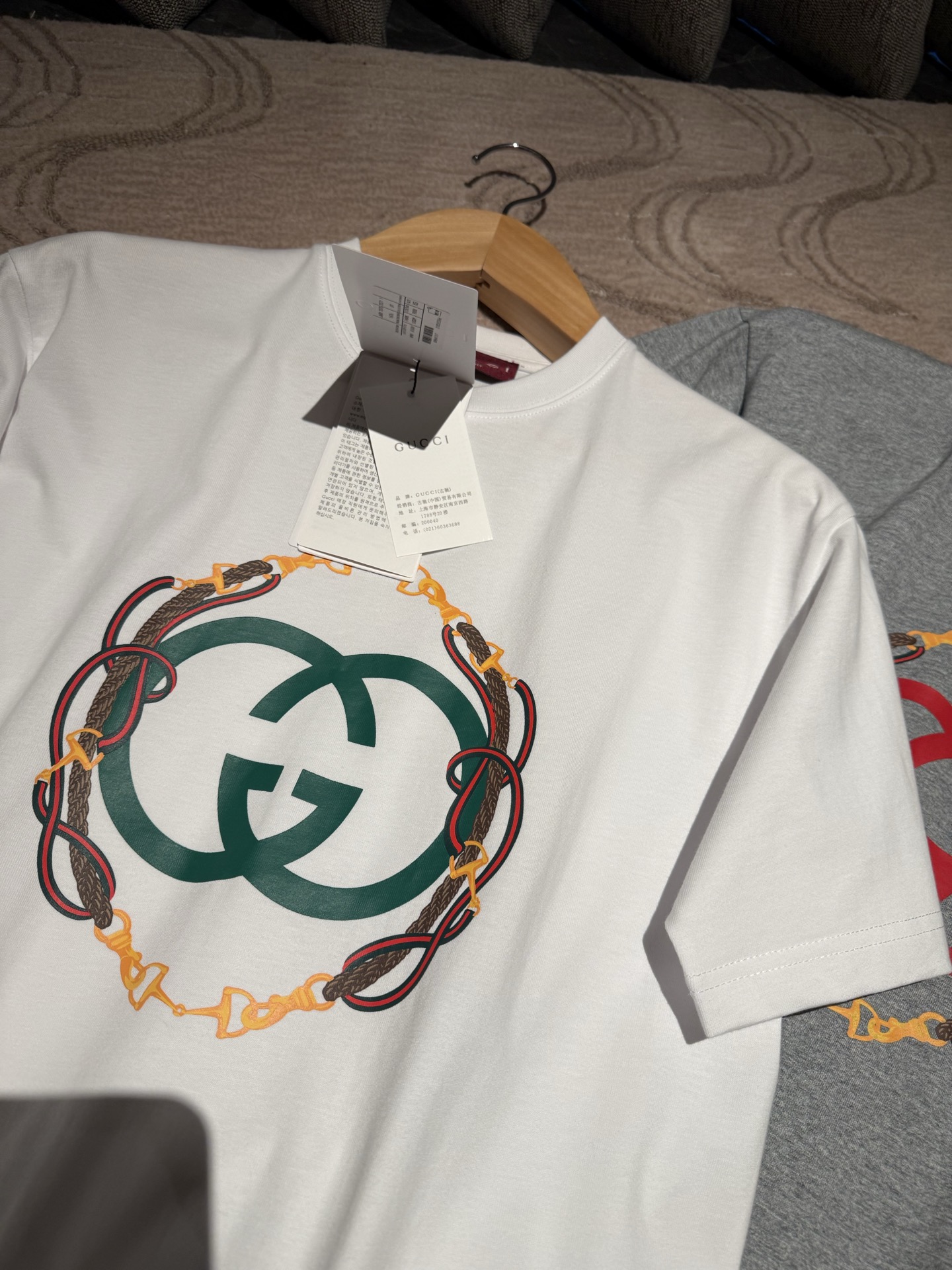 这款衣服是AAAAA 1:1 质量 (非常棒). 使用了和原版一模一样的材料. 商标部分也保持了和古奇/Gucci一样. 图片拍摄是实物衣服拍摄, 您所收到的实物保证和我们图片一模一样.
