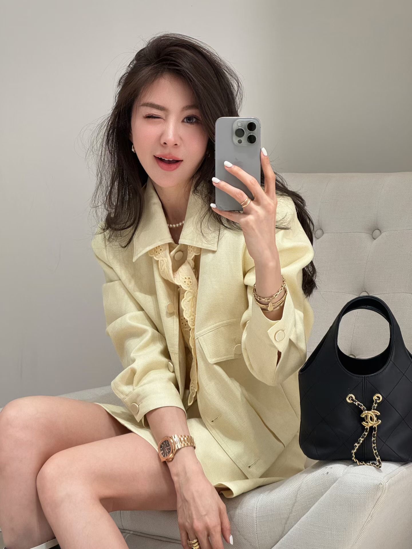 这款衣服是AAAAA 1:1 质量 (非常棒). 使用了和原版一模一样的材料. 商标部分也保持了和香奈儿/Chanel一样. 图片拍摄是实物衣服拍摄, 您所收到的实物保证和我们图片一模一样.