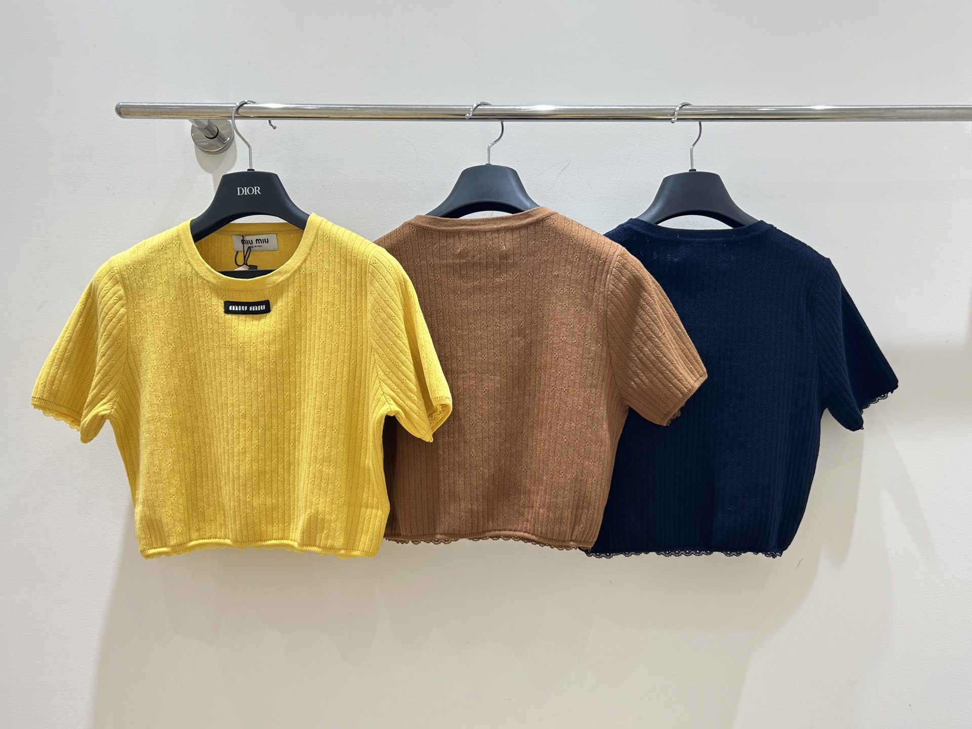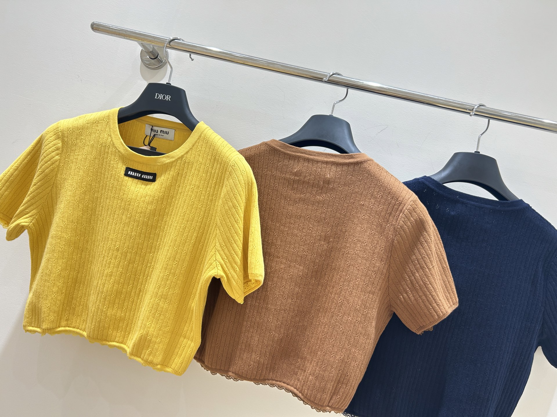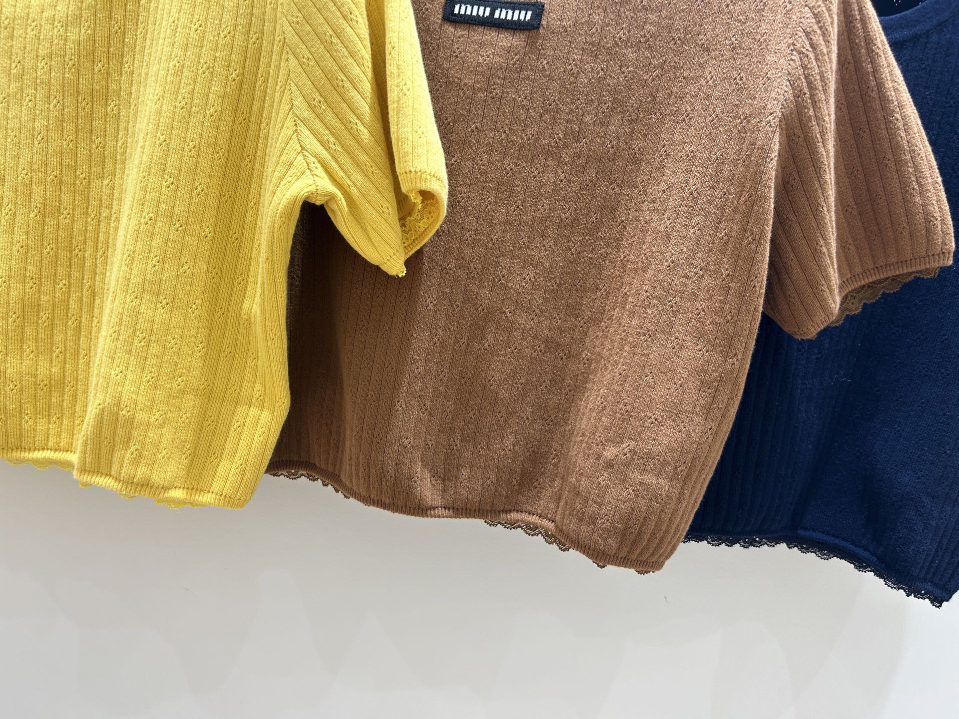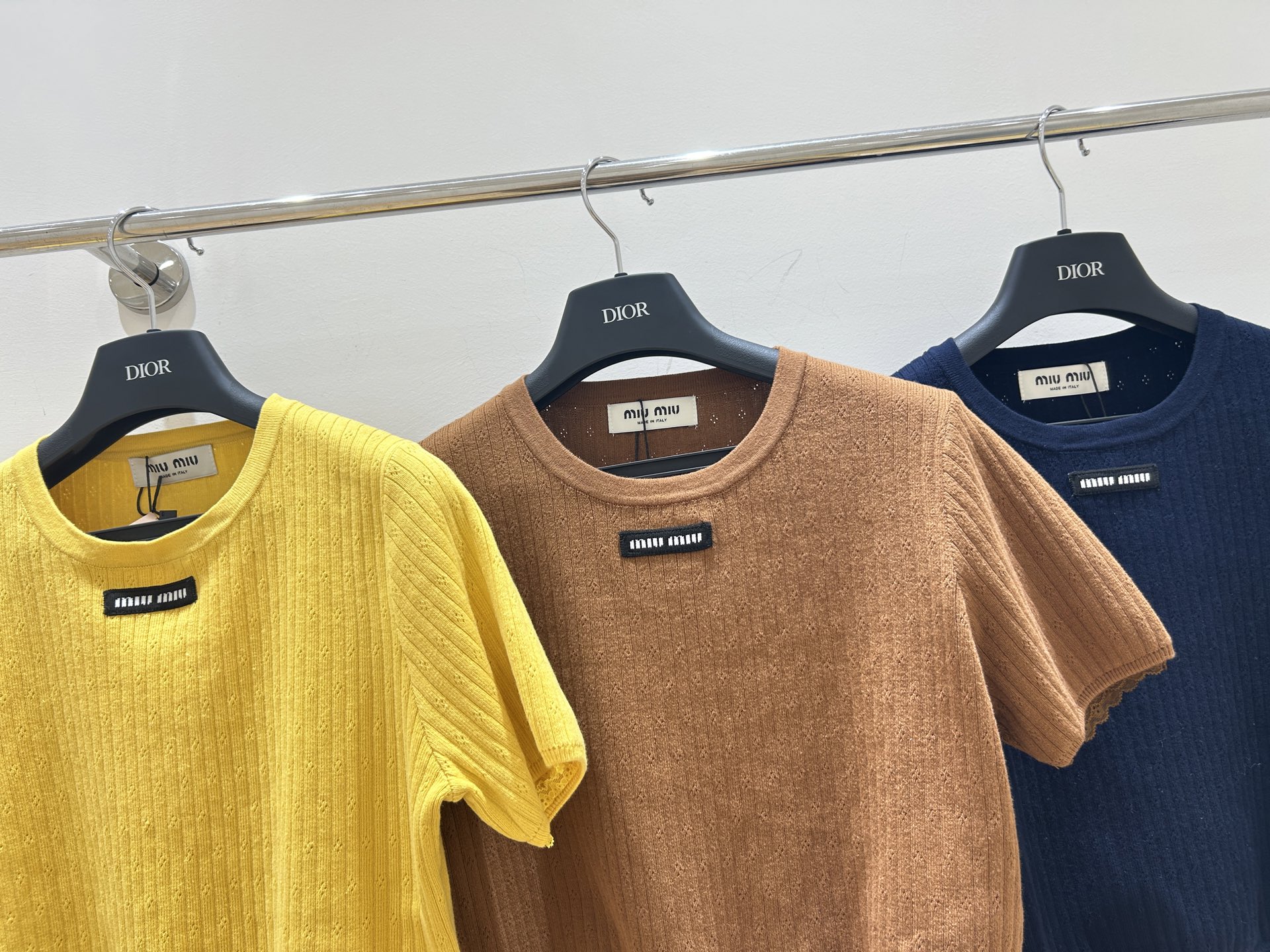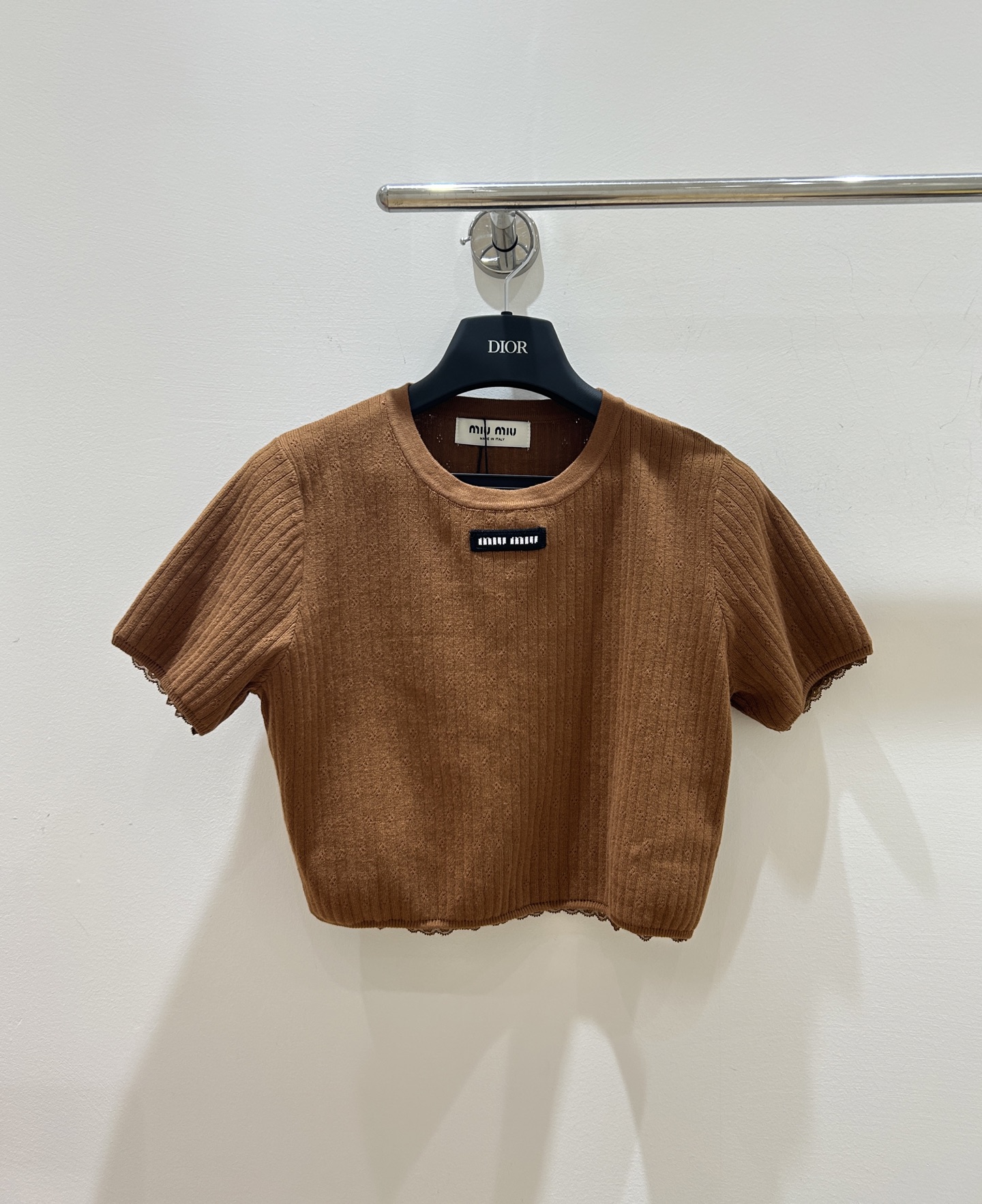 这款衣服是AAAAA 1:1 质量 (非常棒). 使用了和原版一模一样的材料. 商标部分也保持了和缪缪/Miu Miu一样. 图片拍摄是实物衣服拍摄, 您所收到的实物保证和我们图片一模一样.