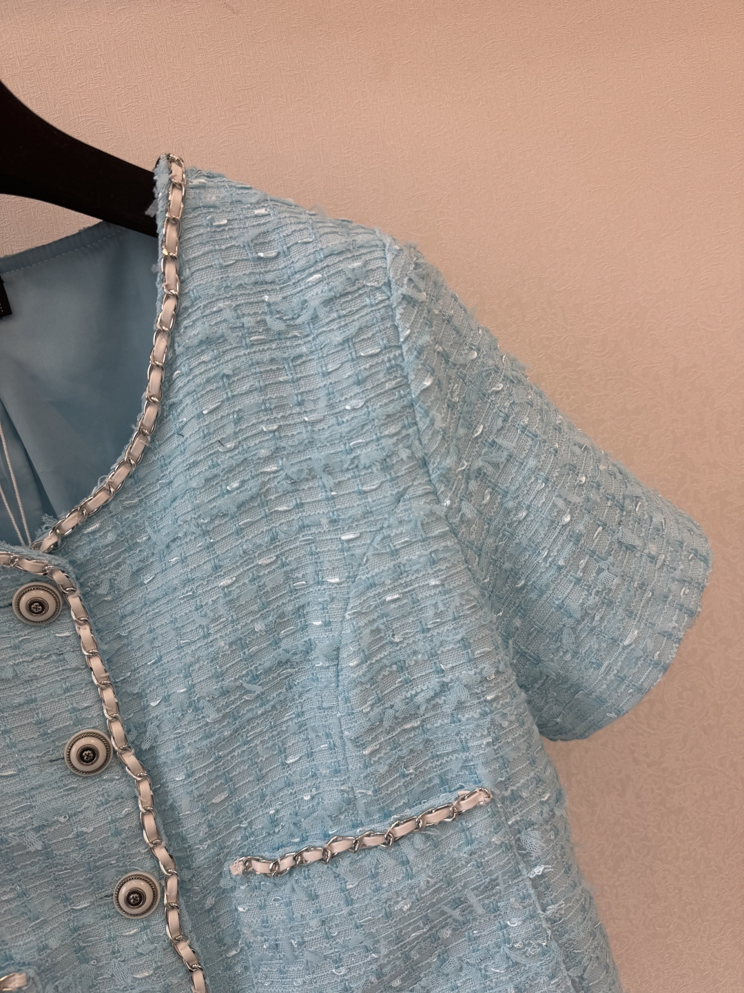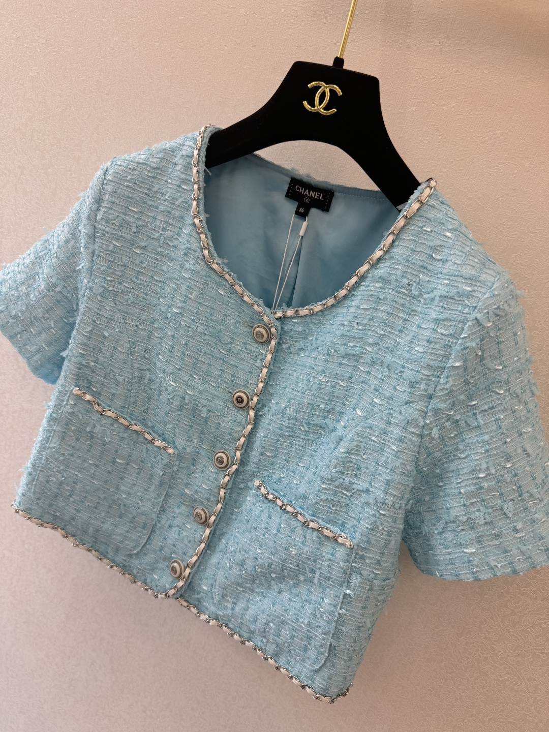 这款衣服是AAAAA 1:1 质量 (非常棒). 使用了和原版一模一样的材料. 商标部分也保持了和香奈儿/Chanel一样. 图片拍摄是实物衣服拍摄, 您所收到的实物保证和我们图片一模一样.