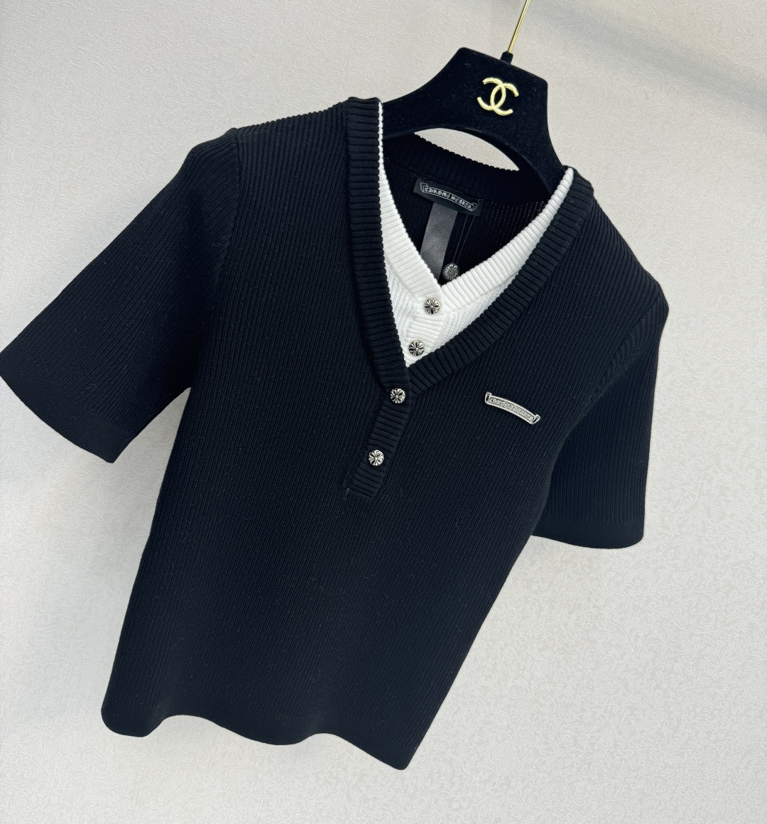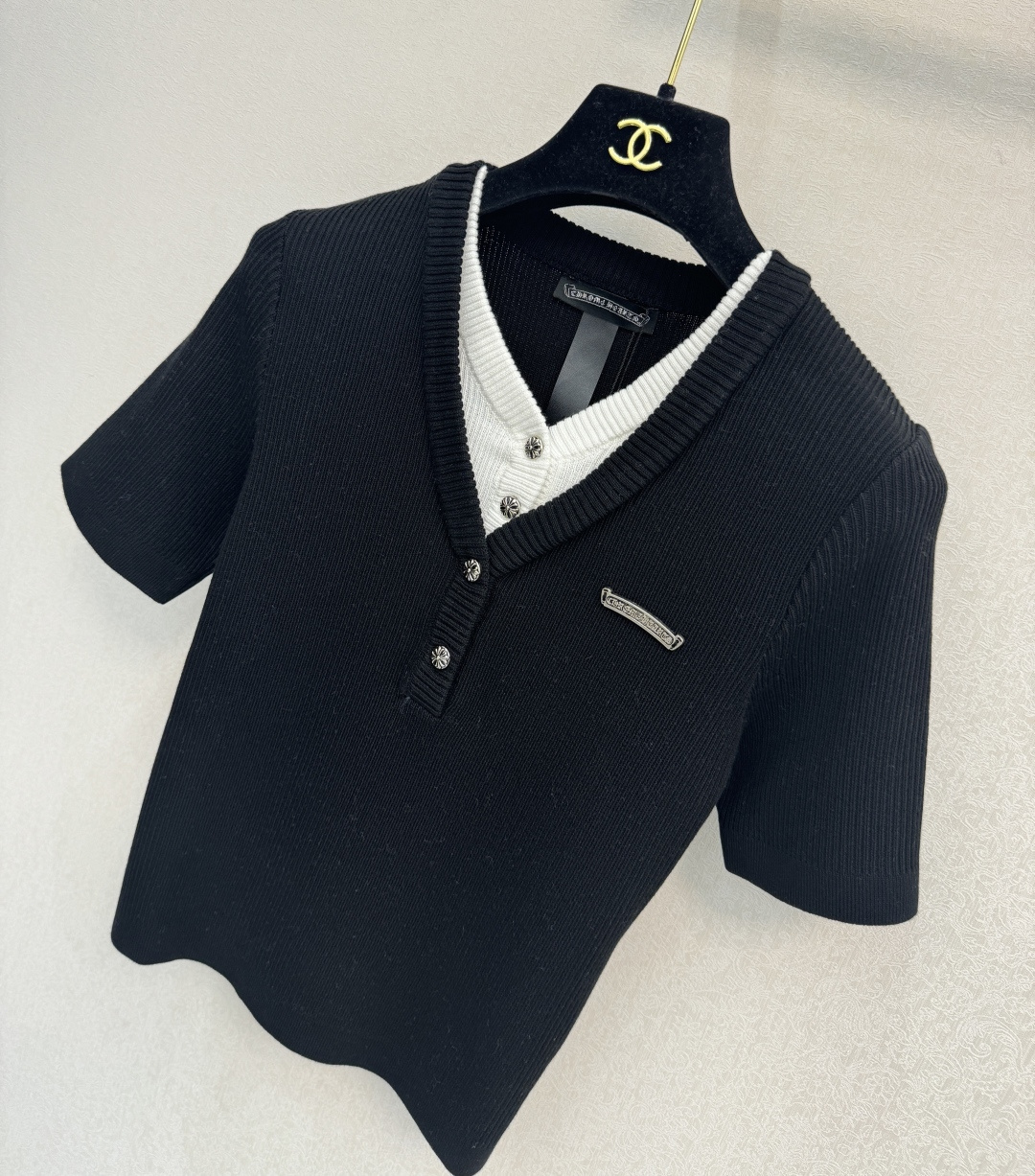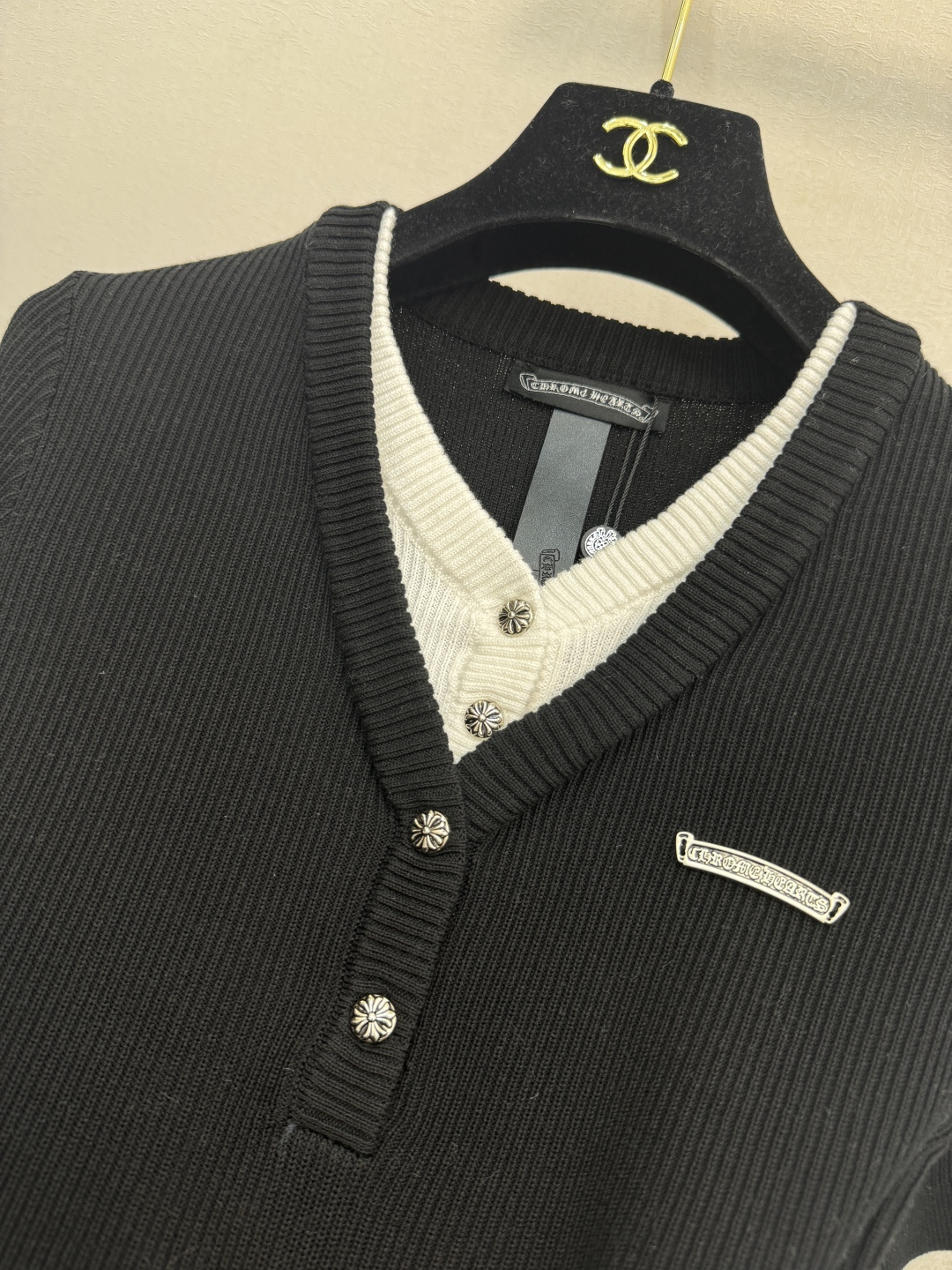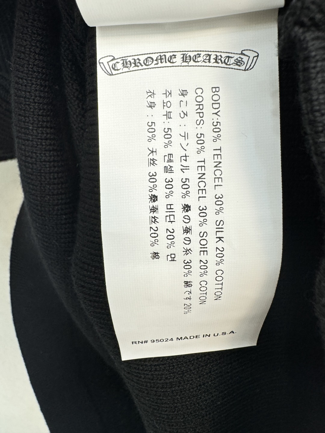 这款衣服是AAAAA 1:1 质量 (非常棒). 使用了和原版一模一样的材料. 商标部分也保持了和克罗心/Chrome Hearts一样. 图片拍摄是实物衣服拍摄, 您所收到的实物保证和我们图片一模一样.