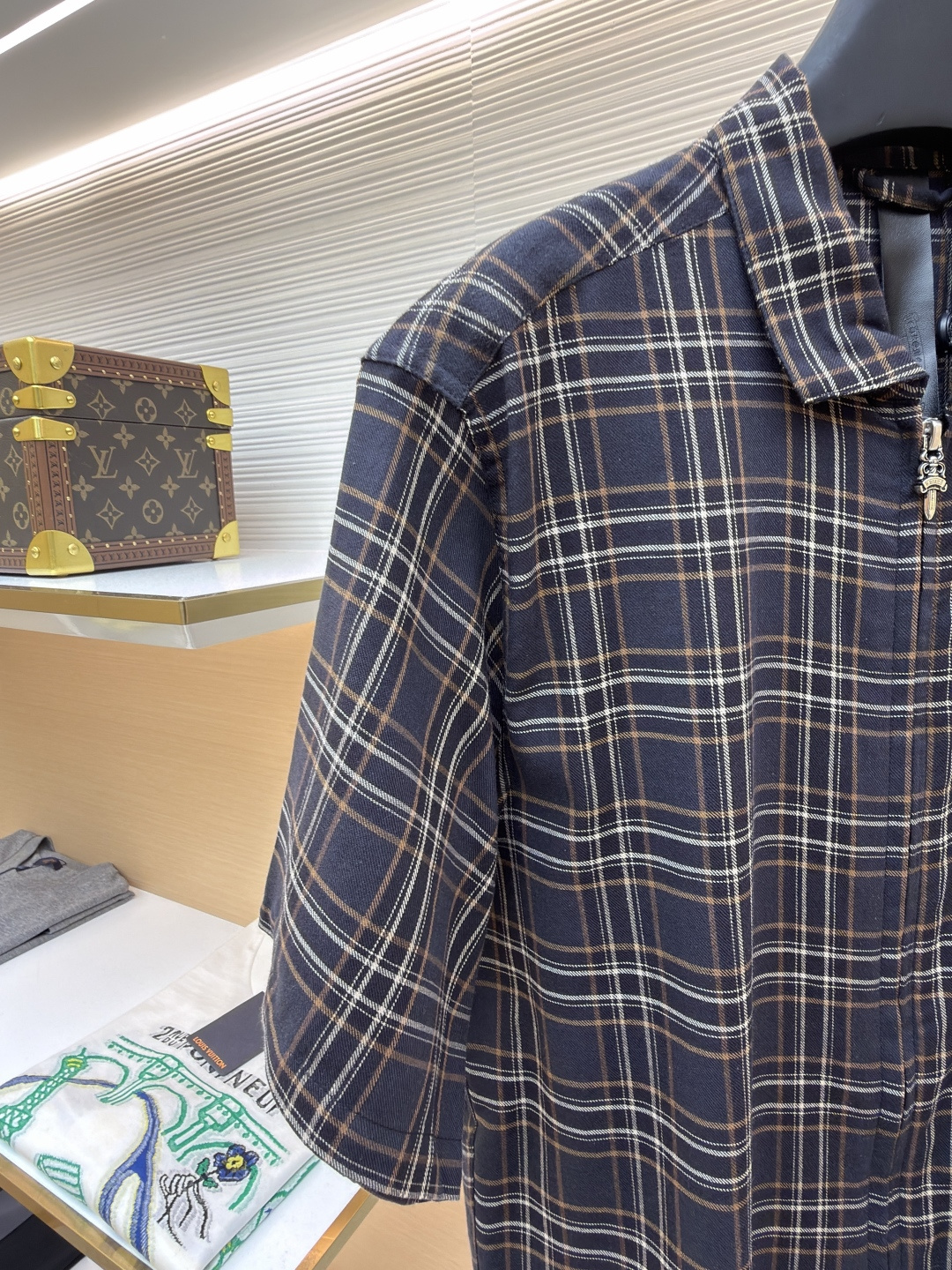 这款衣服是AAAAA 1:1 质量 (非常棒). 使用了和原版一模一样的材料. 商标部分也保持了和克罗心/Chrome Hearts一样. 图片拍摄是实物衣服拍摄, 您所收到的实物保证和我们图片一模一样.