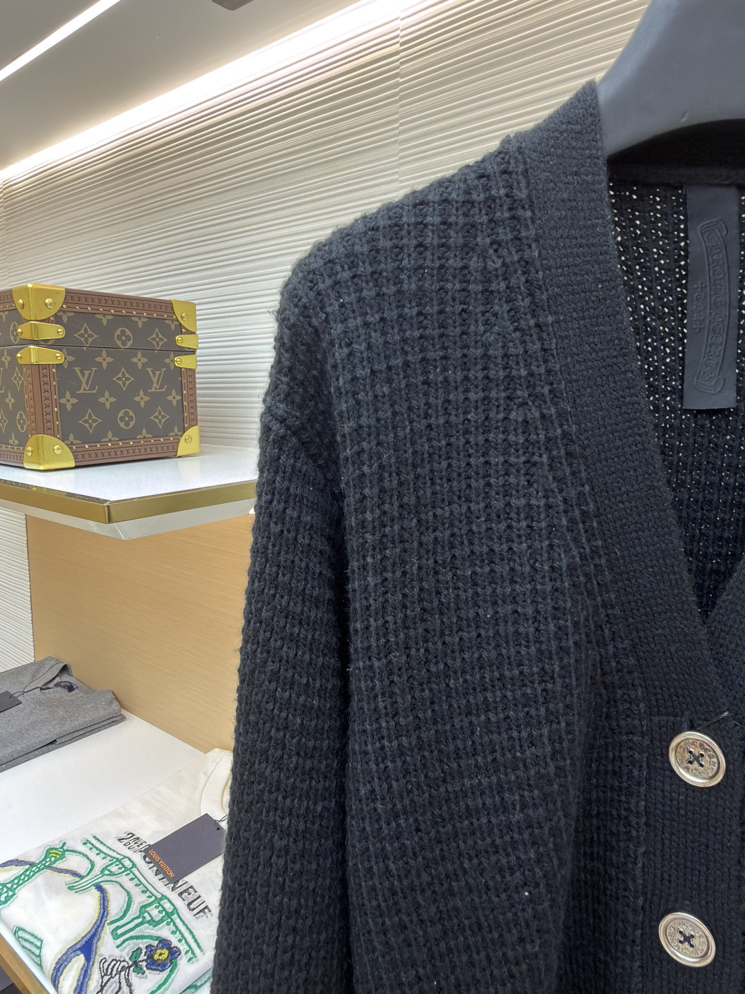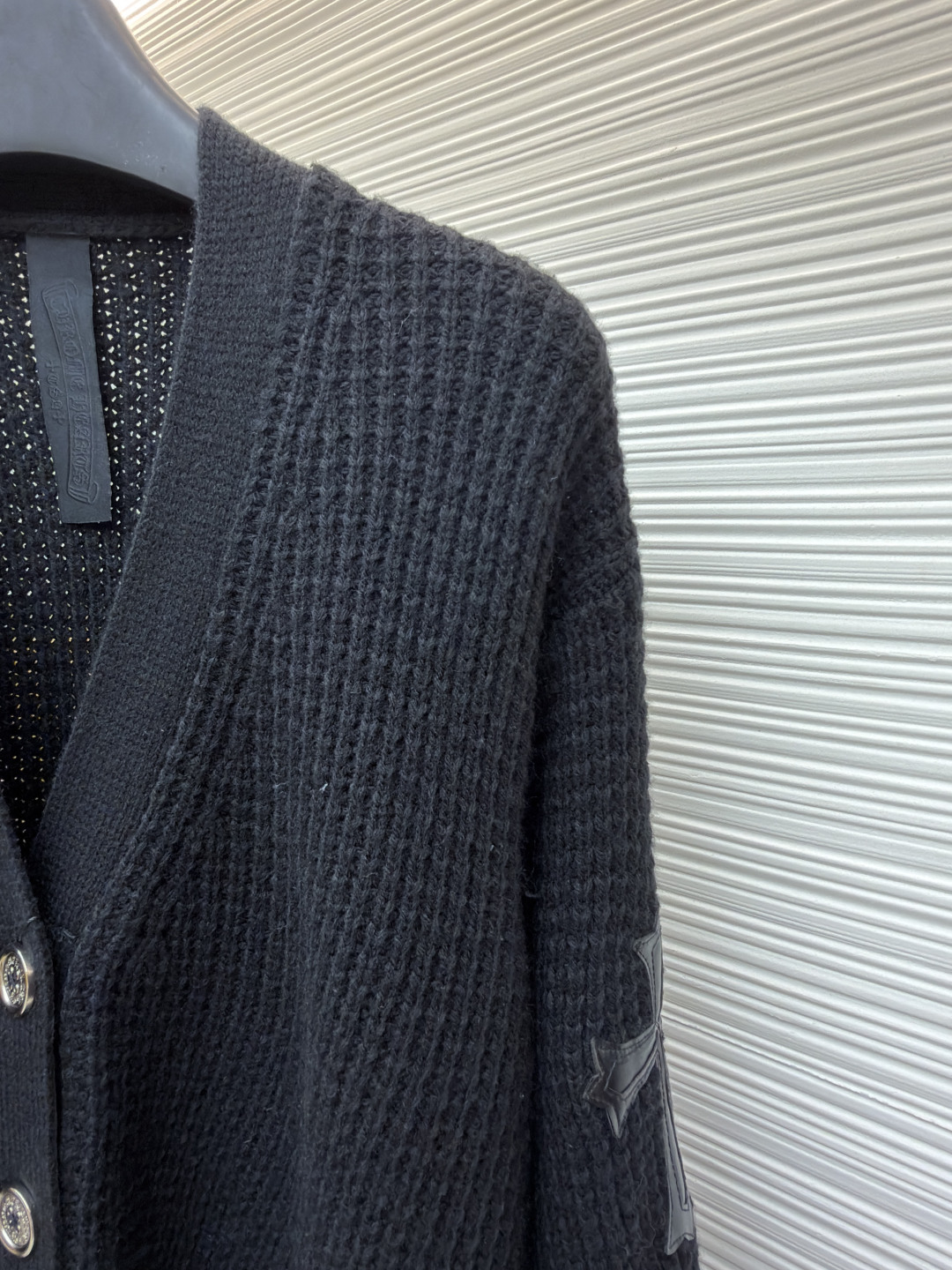 这款衣服是AAAAA 1:1 质量 (非常棒). 使用了和原版一模一样的材料. 商标部分也保持了和克罗心/Chrome Hearts一样. 图片拍摄是实物衣服拍摄, 您所收到的实物保证和我们图片一模一样.
