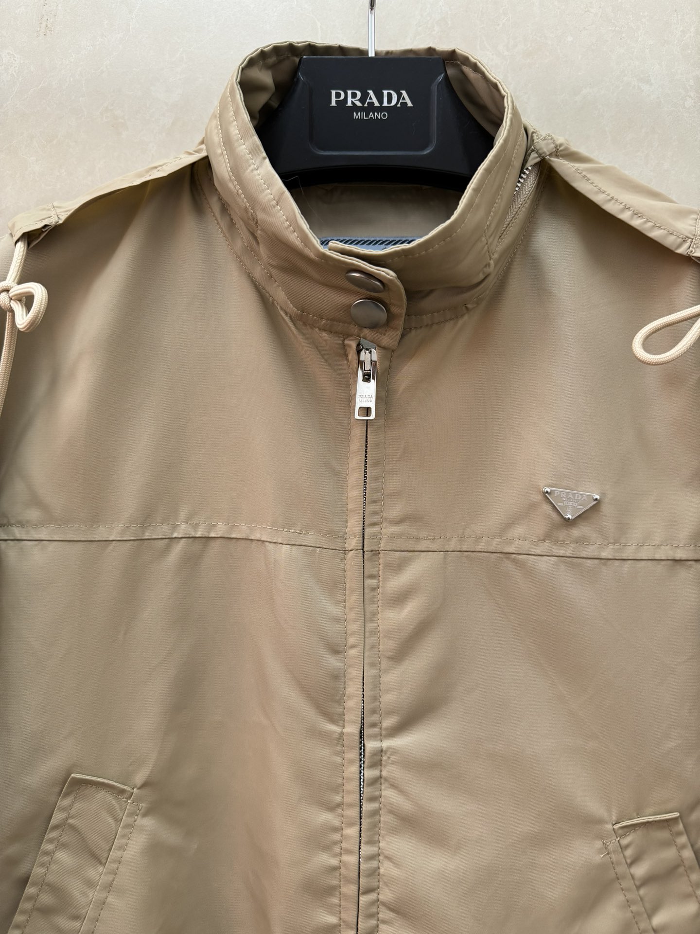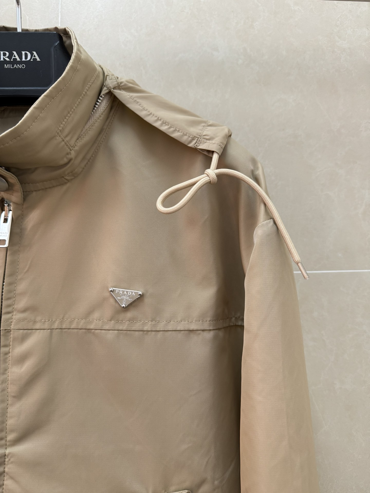 这款衣服是AAAAA 1:1 质量 (非常棒). 使用了和原版一模一样的材料. 商标部分也保持了和普拉达/Prada一样. 图片拍摄是实物衣服拍摄, 您所收到的实物保证和我们图片一模一样.