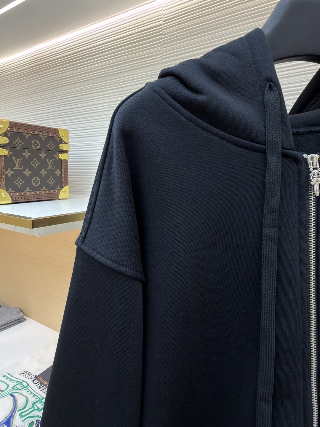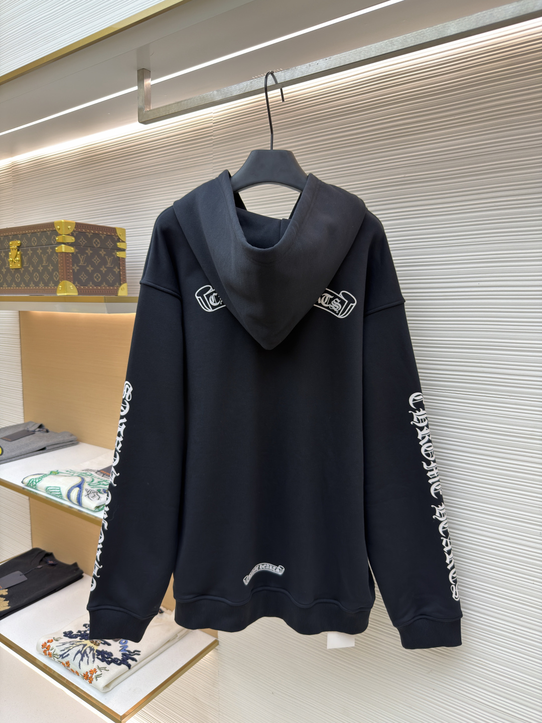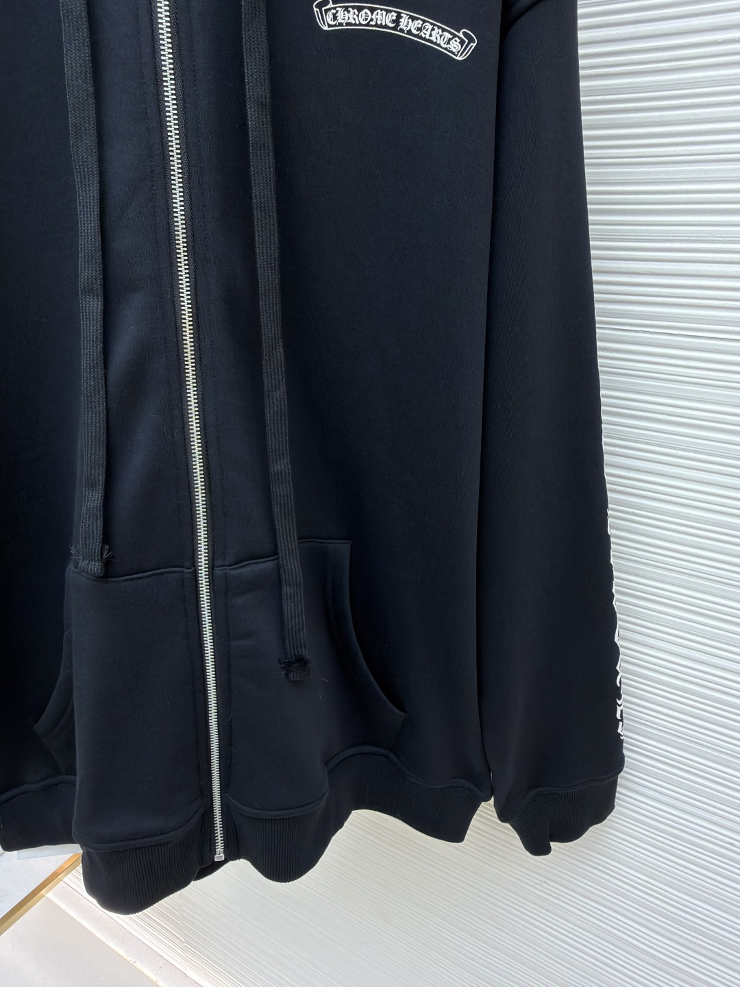 这款衣服是AAAAA 1:1 质量 (非常棒). 使用了和原版一模一样的材料. 商标部分也保持了和克罗心/Chrome Hearts一样. 图片拍摄是实物衣服拍摄, 您所收到的实物保证和我们图片一模一样.